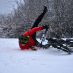 Kvůli co nejlepším záběrům jsem na foťák nasadil své nejširší sklo, abych se co nejvíce přiblížil k závodníkům. Sníh je pro kolo velmi nestabilní povrch. Jednomu závodníkovi to uklouzlo. Bohužel jsem v zápalu focení nestačil dost rychle zareagovat a biker se zastavil až o mě. Nakonec to odnesl můj nos a v bílém sněhu po mně zbyla na sjezdovce krvavá stopa.