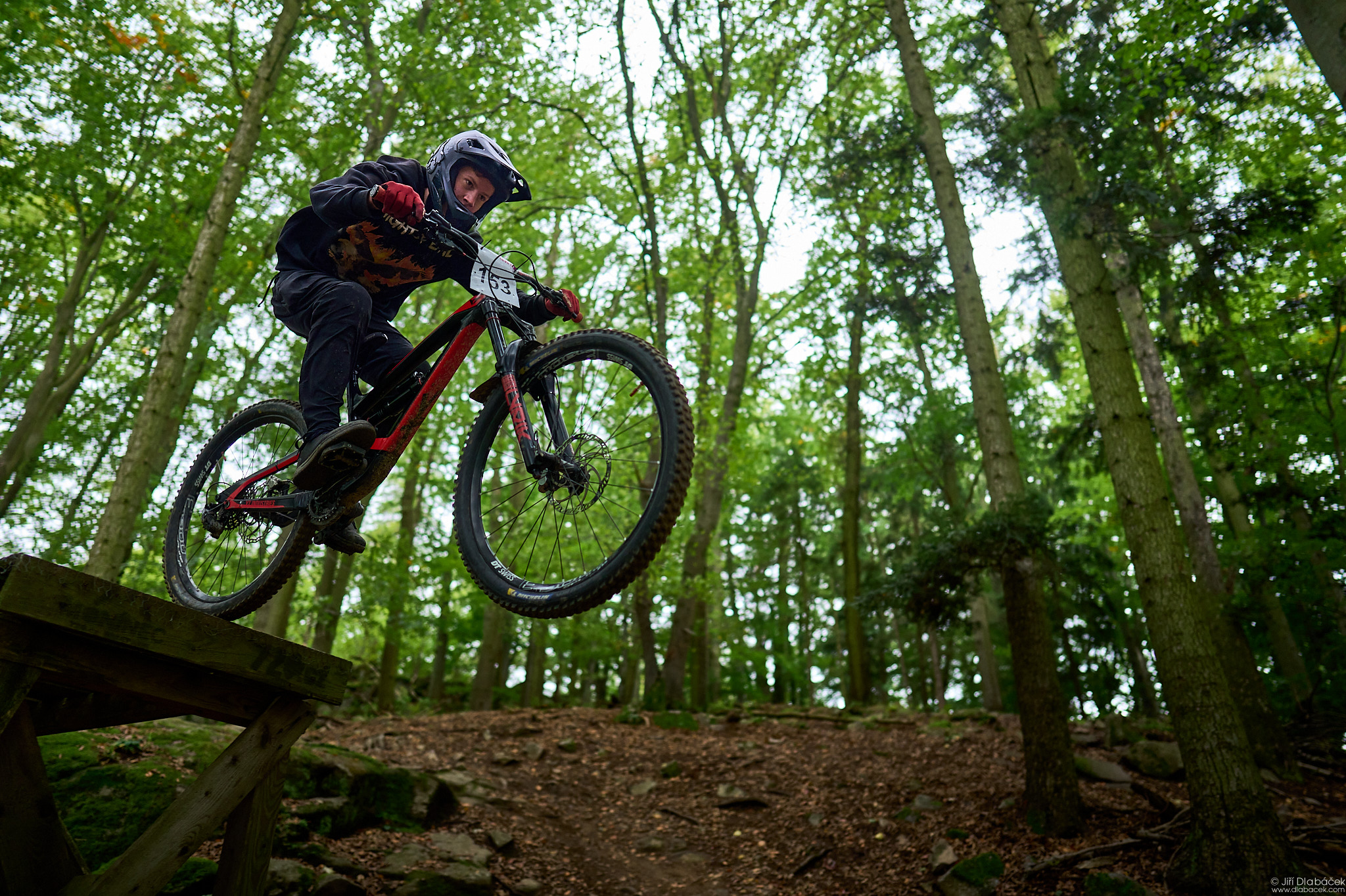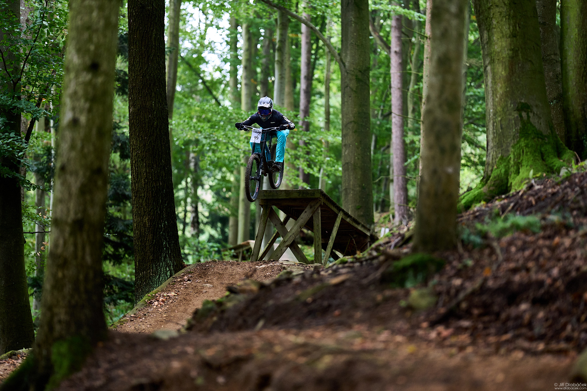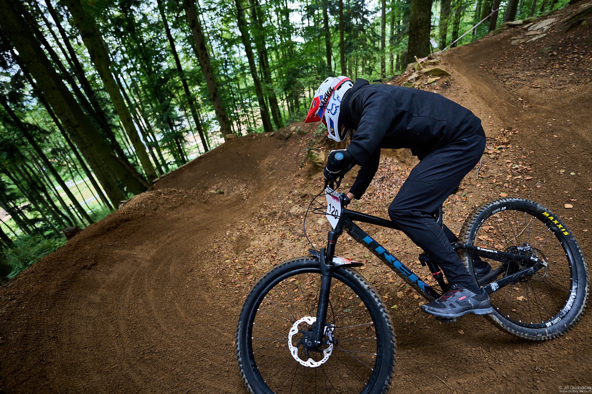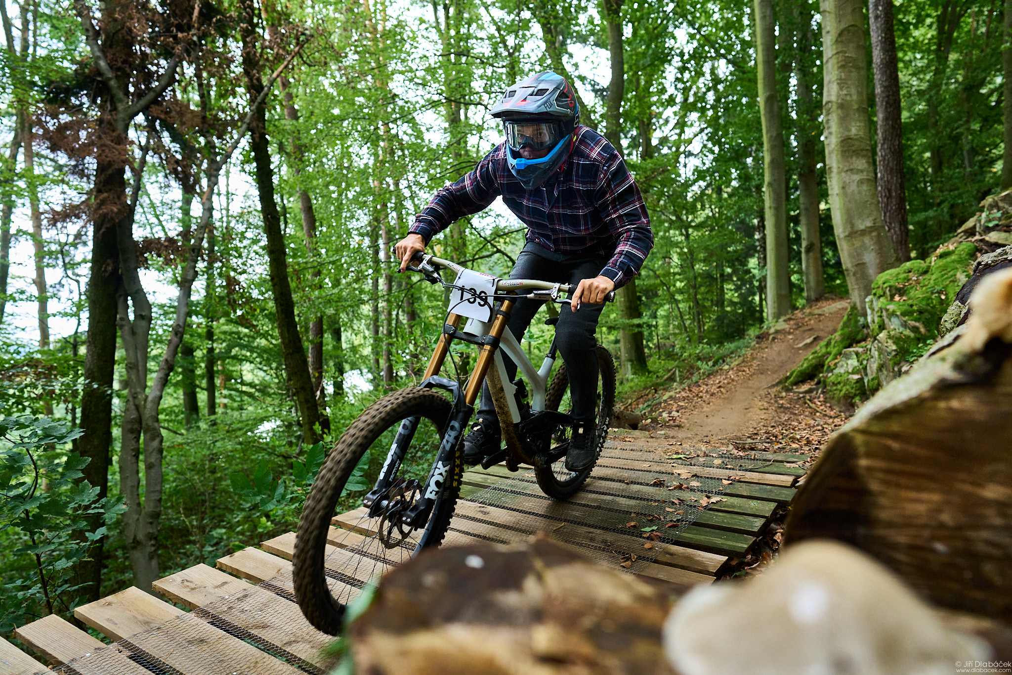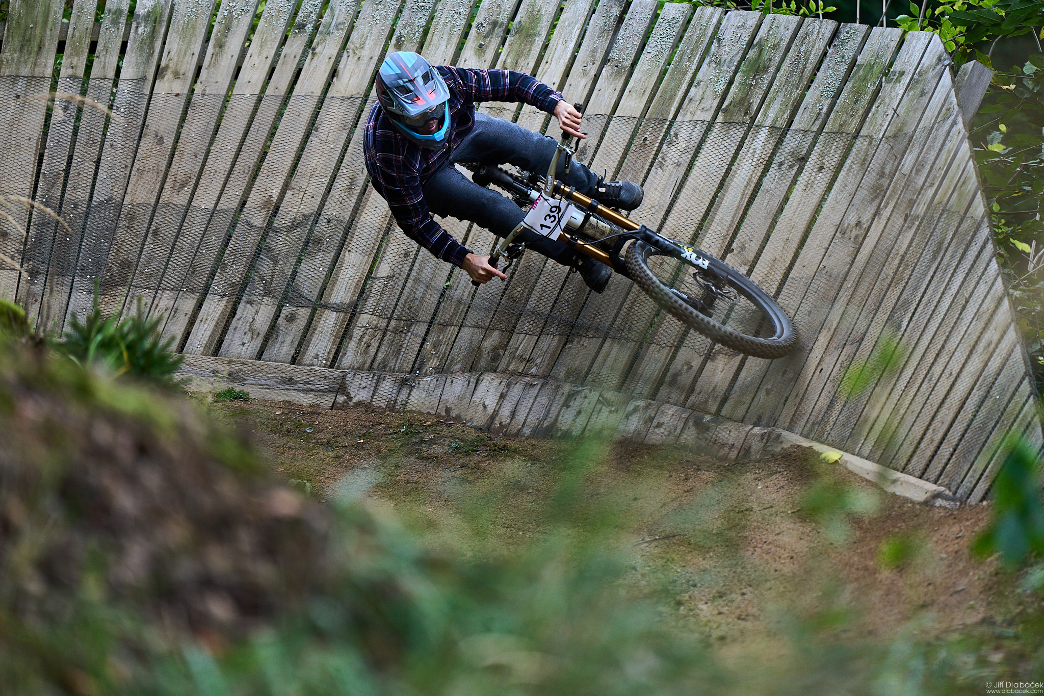Trať vedla, stejně jako v předchozích ročnících, hustým lesem, přes lavice, klopenky, několik dropů a wallride ve spodní části. Až do horní pasáže jsem bohužel nestačil vystoupat, takže jsem opět na vlastní oči neviděl, jak to vypadá na startu.
