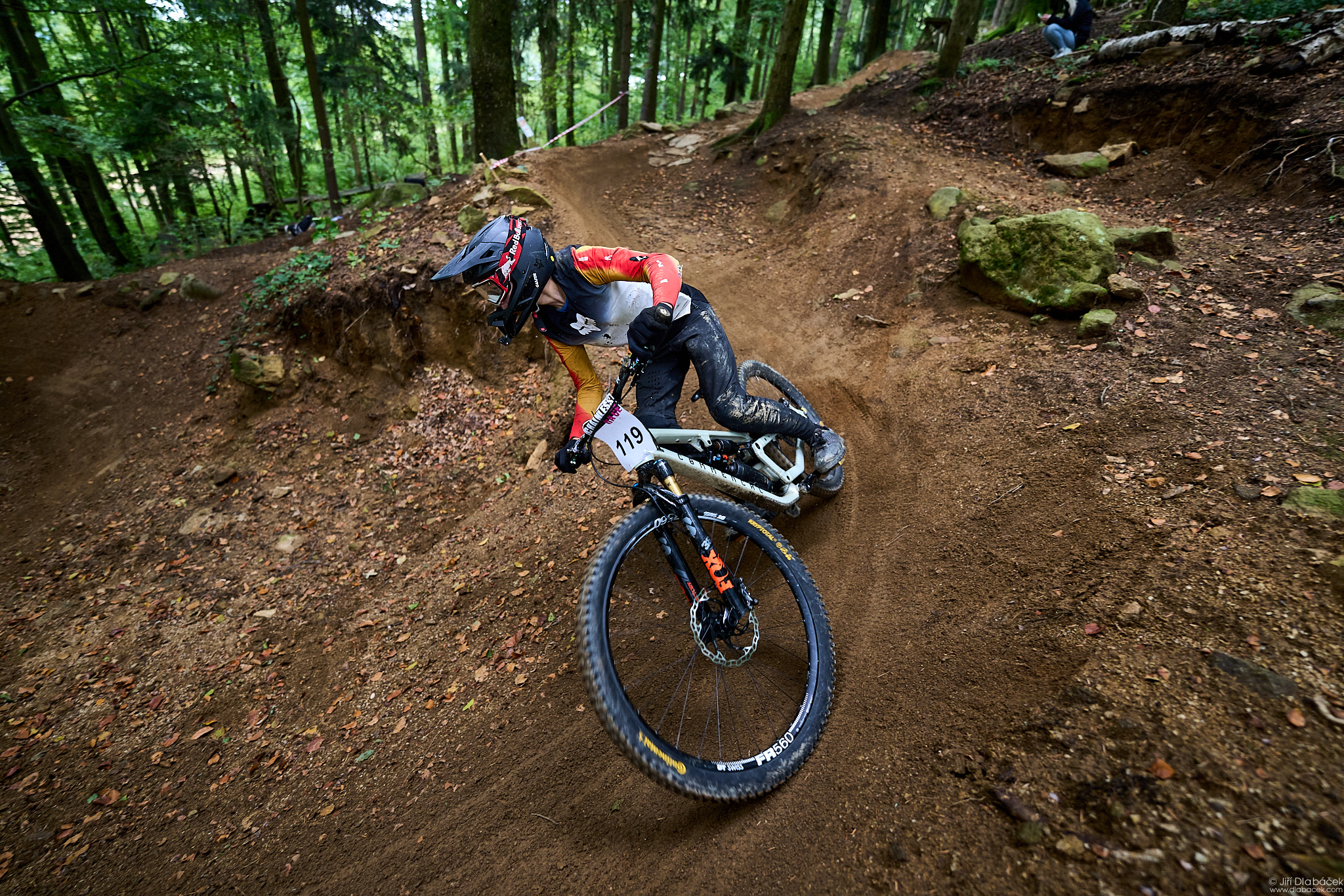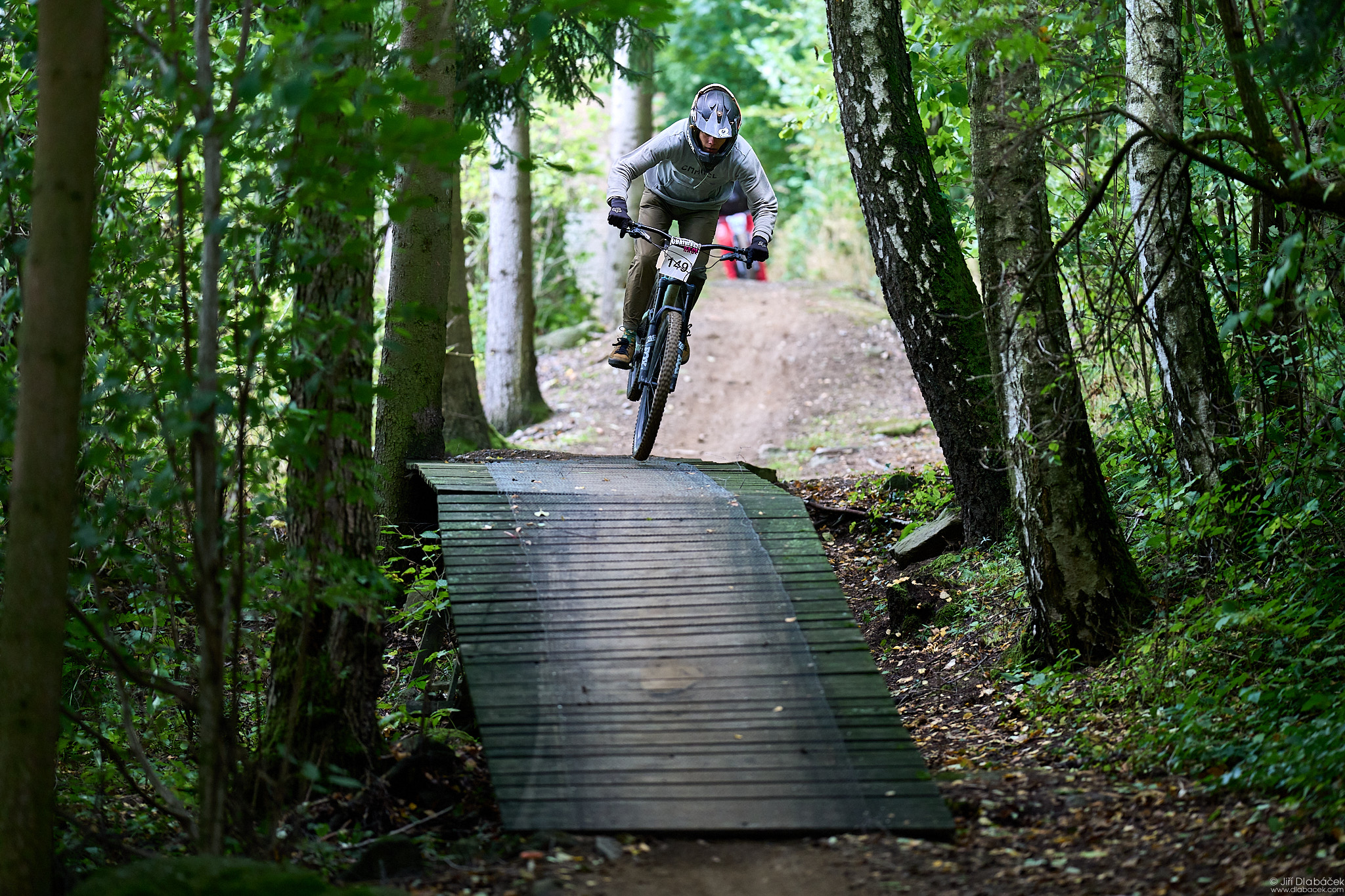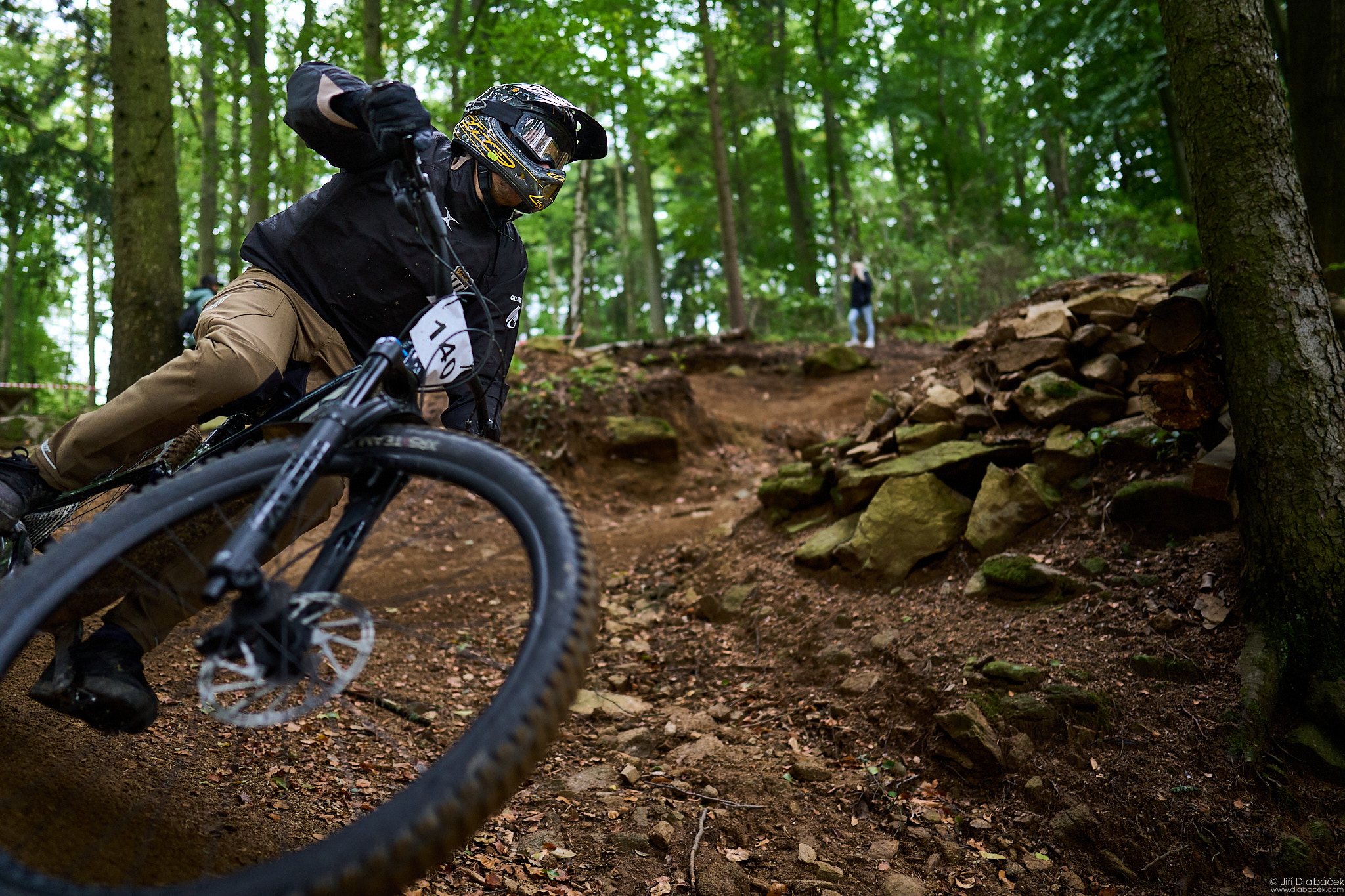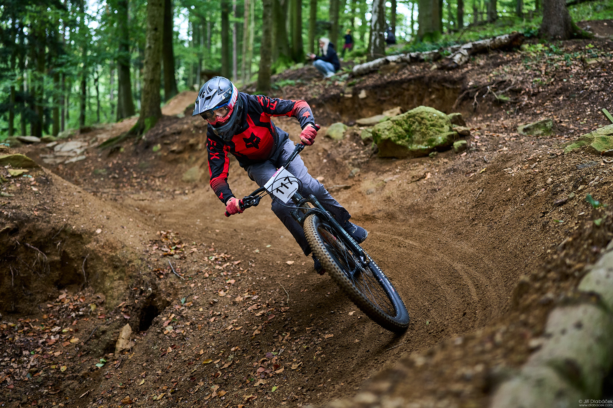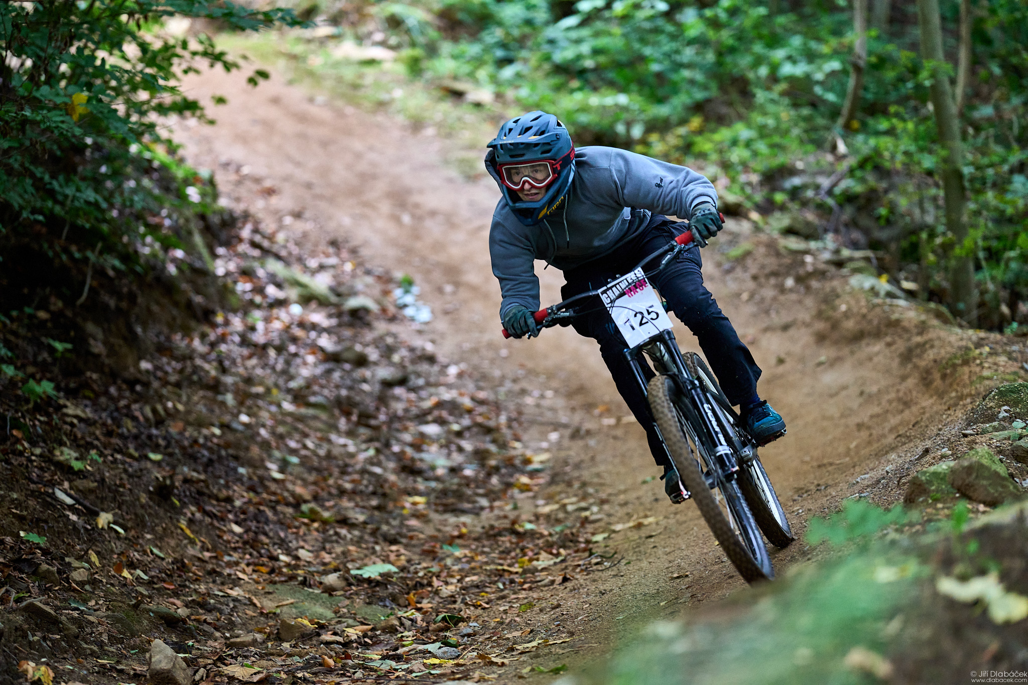 Trať vedla, stejně jako v předchozích ročnících, hustým lesem, přes lavice, klopenky, několik dropů a wallride ve spodní části. Až do horní pasáže jsem bohužel nestačil vystoupat, takže jsem opět na vlastní oči neviděl, jak to vypadá na startu.