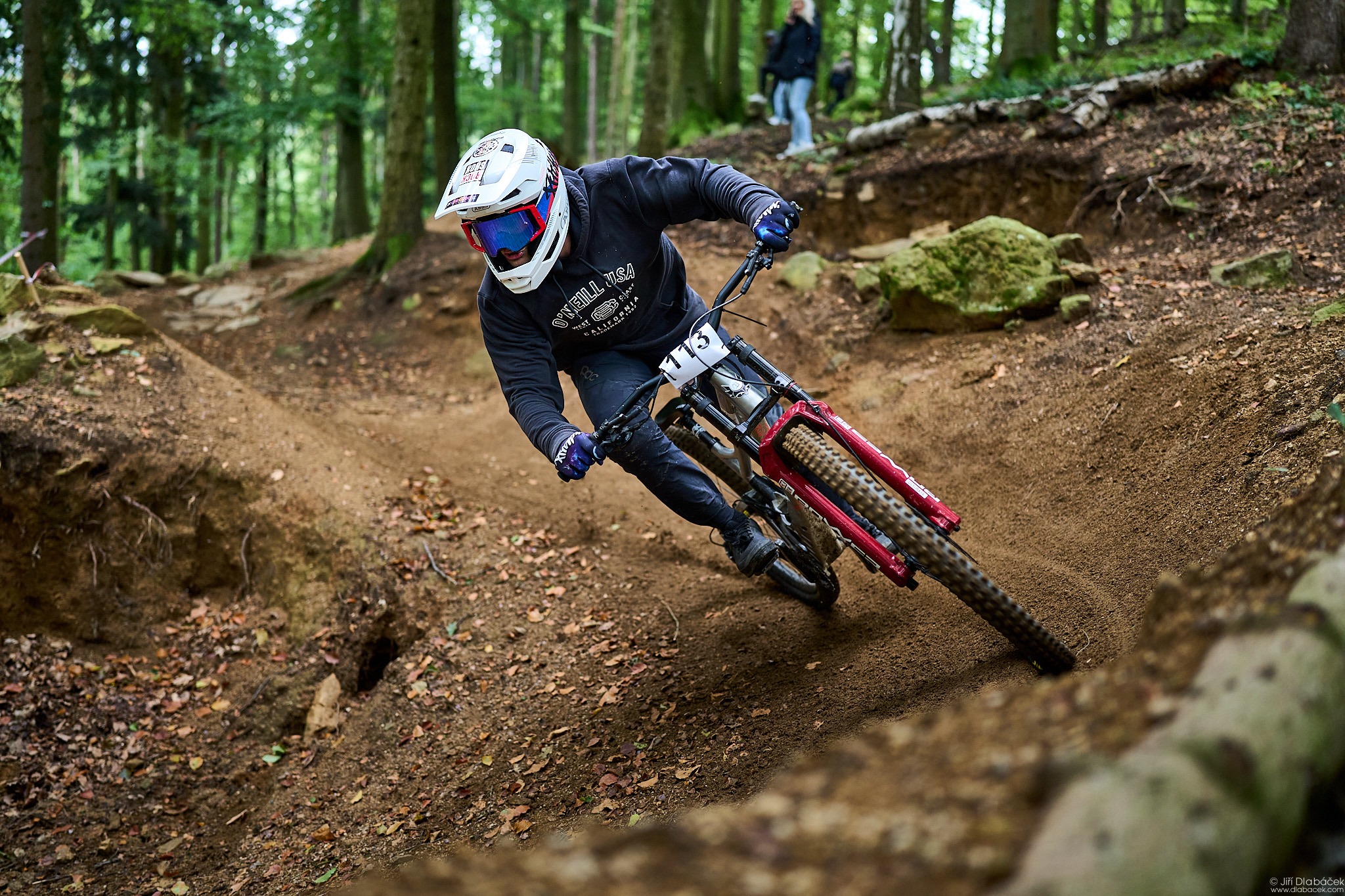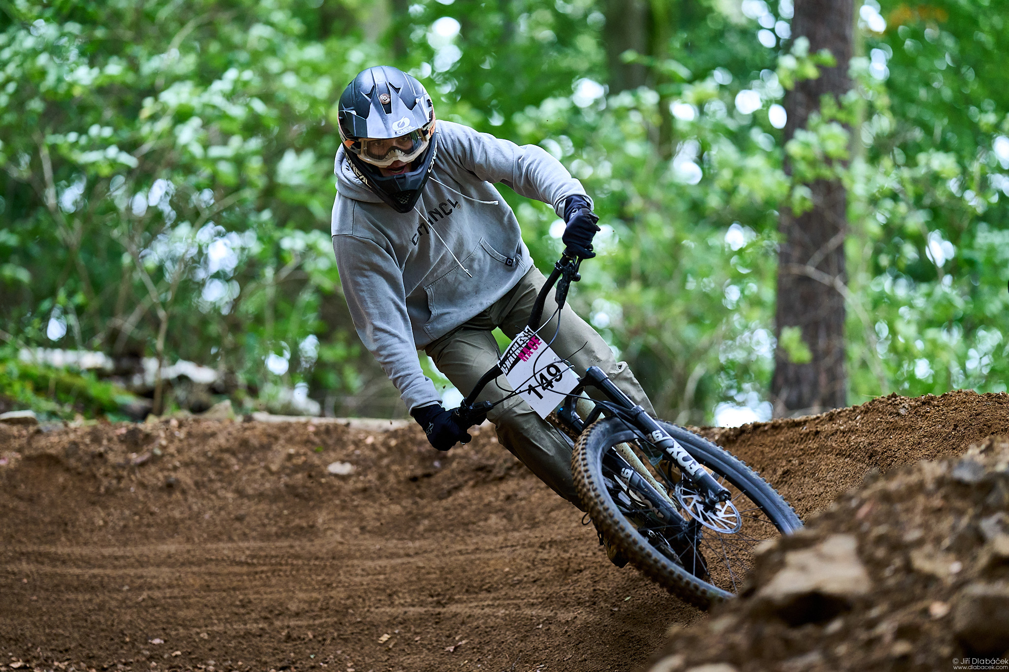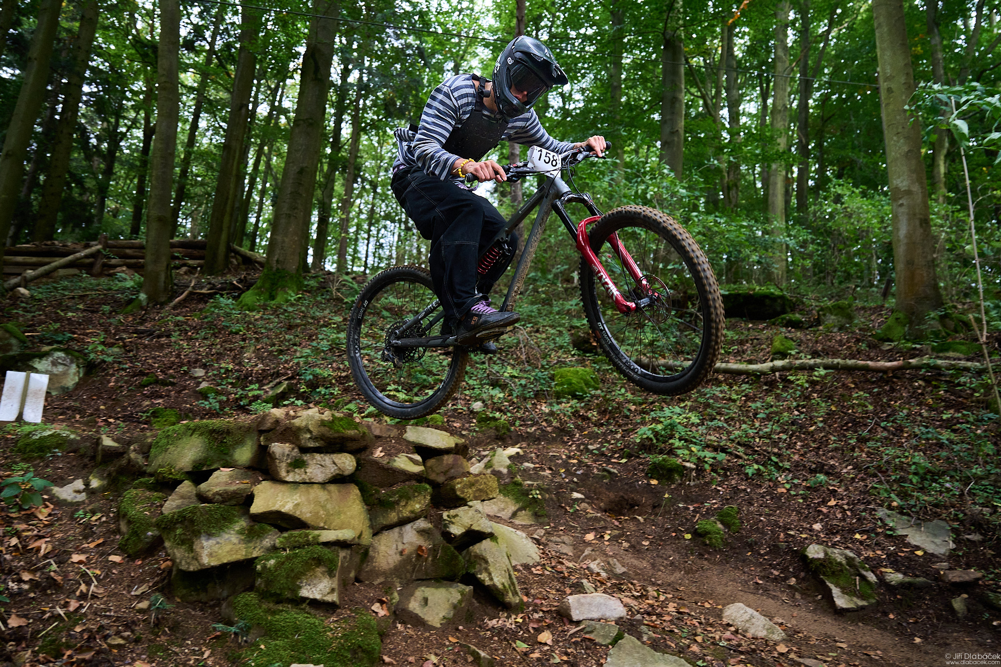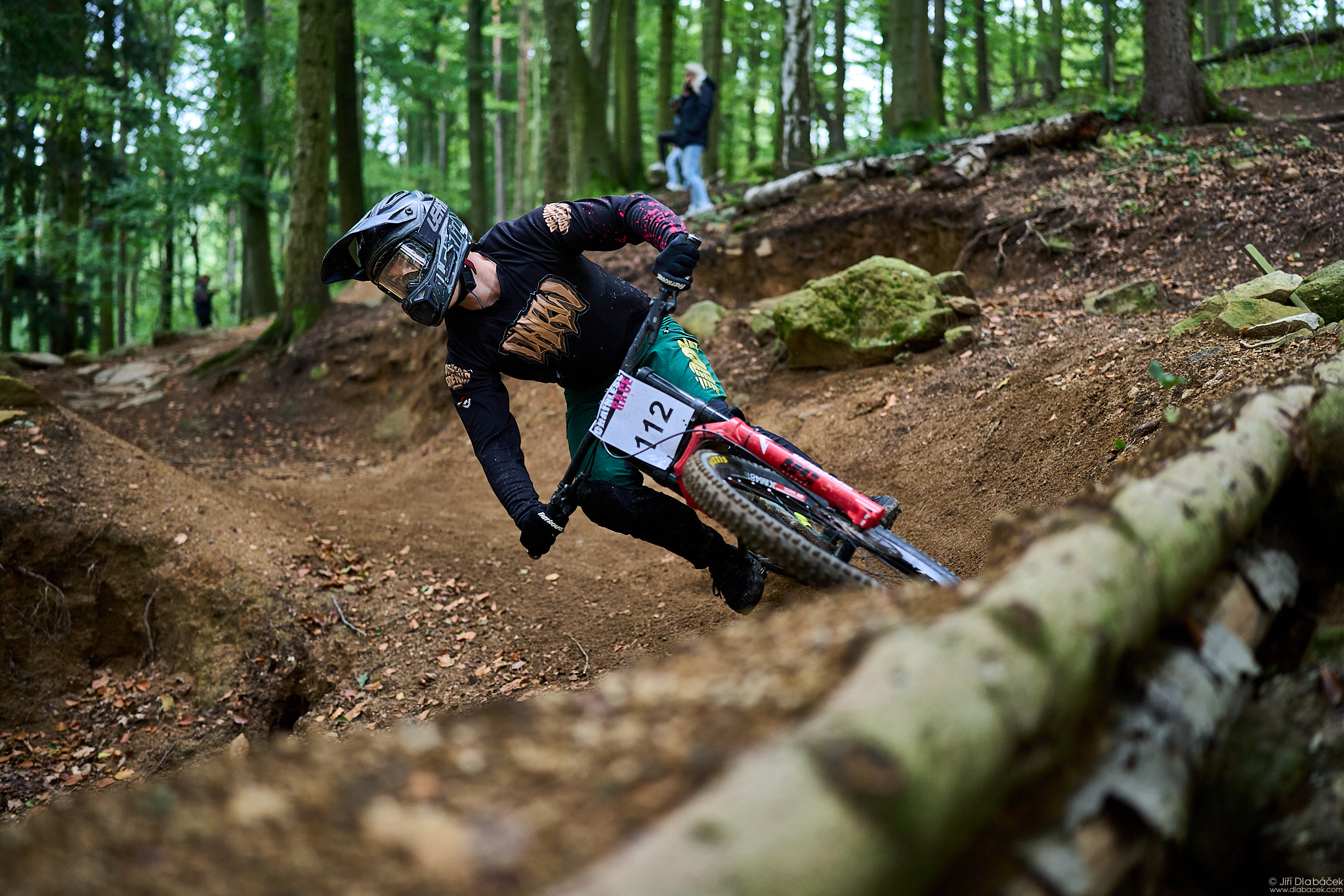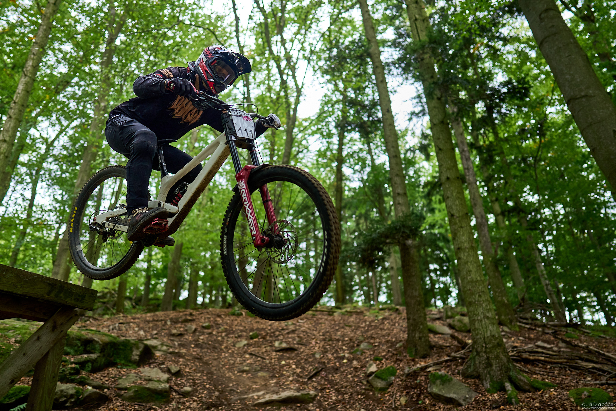 Trať vedla, stejně jako v předchozích ročnících, hustým lesem, přes lavice, klopenky, několik dropů a wallride ve spodní části. Až do horní pasáže jsem bohužel nestačil vystoupat, takže jsem opět na vlastní oči neviděl, jak to vypadá na startu.