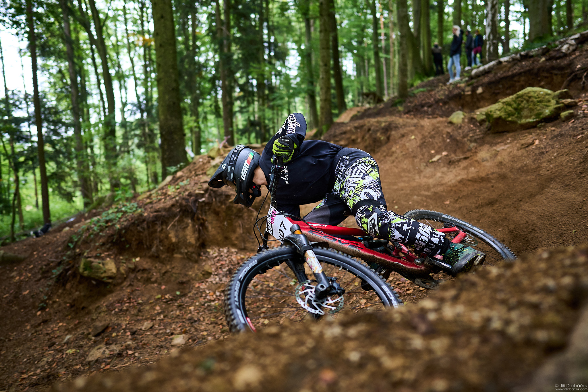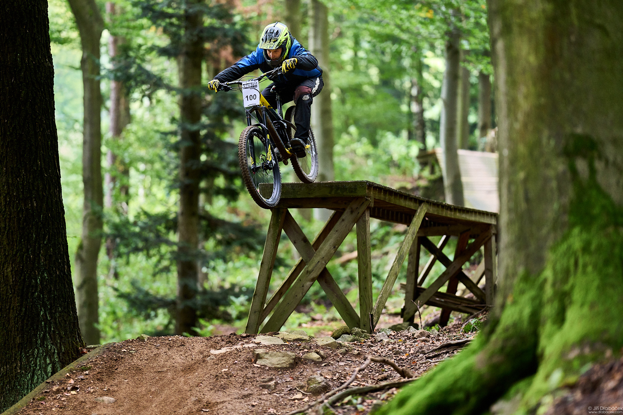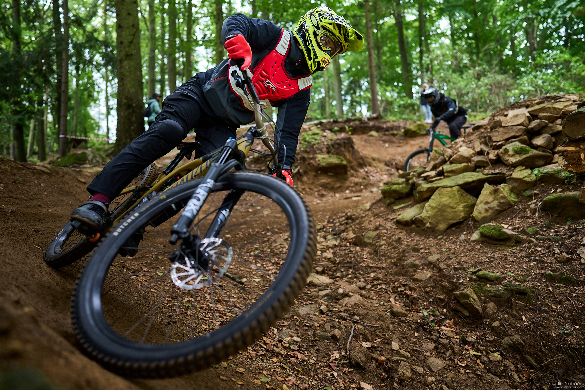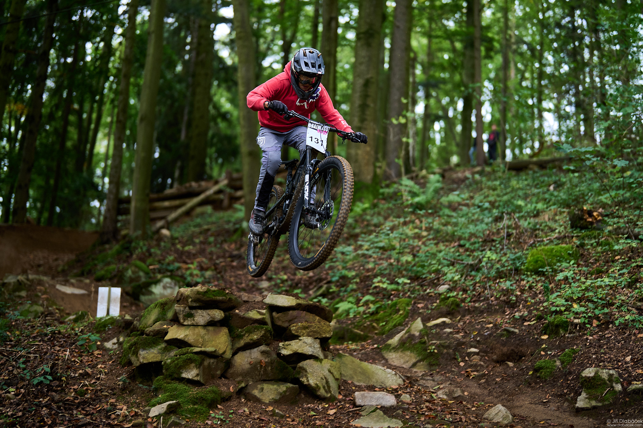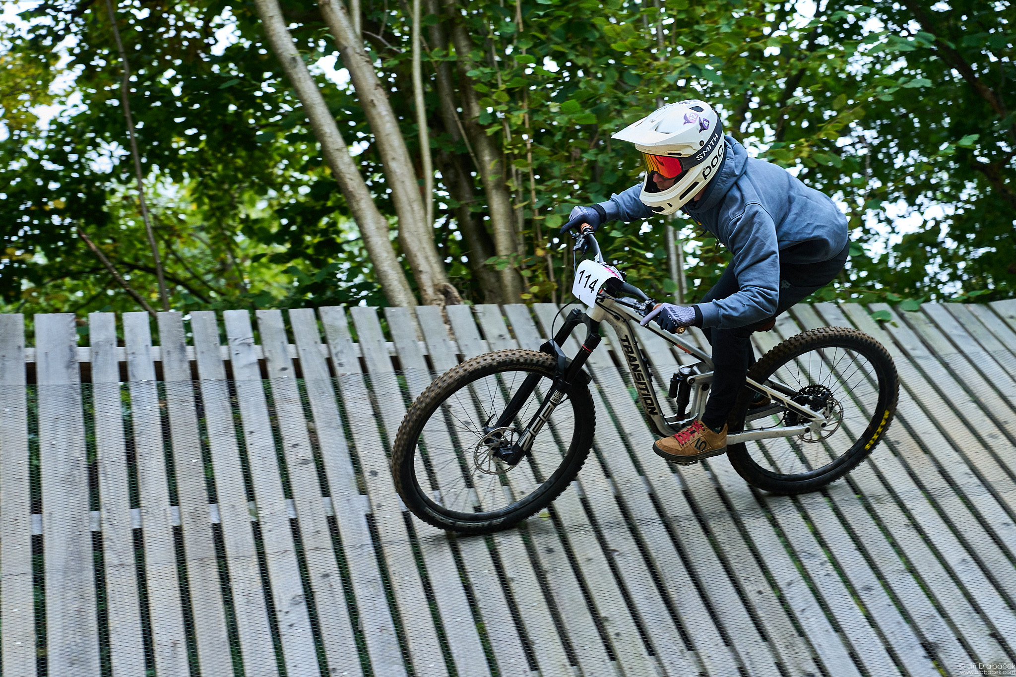 Trať vedla, stejně jako v předchozích ročnících, hustým lesem, přes lavice, klopenky, několik dropů a wallride ve spodní části. Až do horní pasáže jsem bohužel nestačil vystoupat, takže jsem opět na vlastní oči neviděl, jak to vypadá na startu.