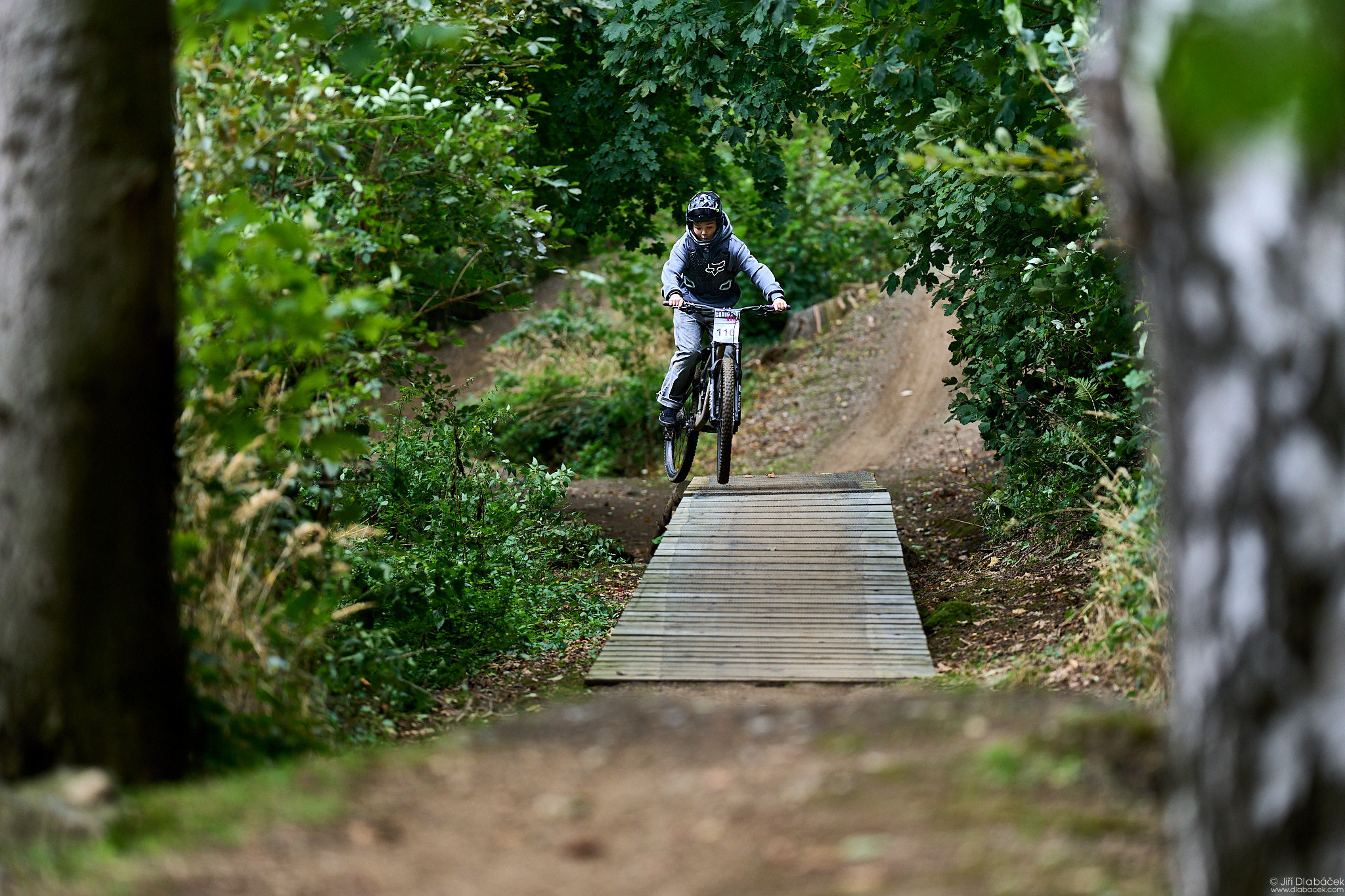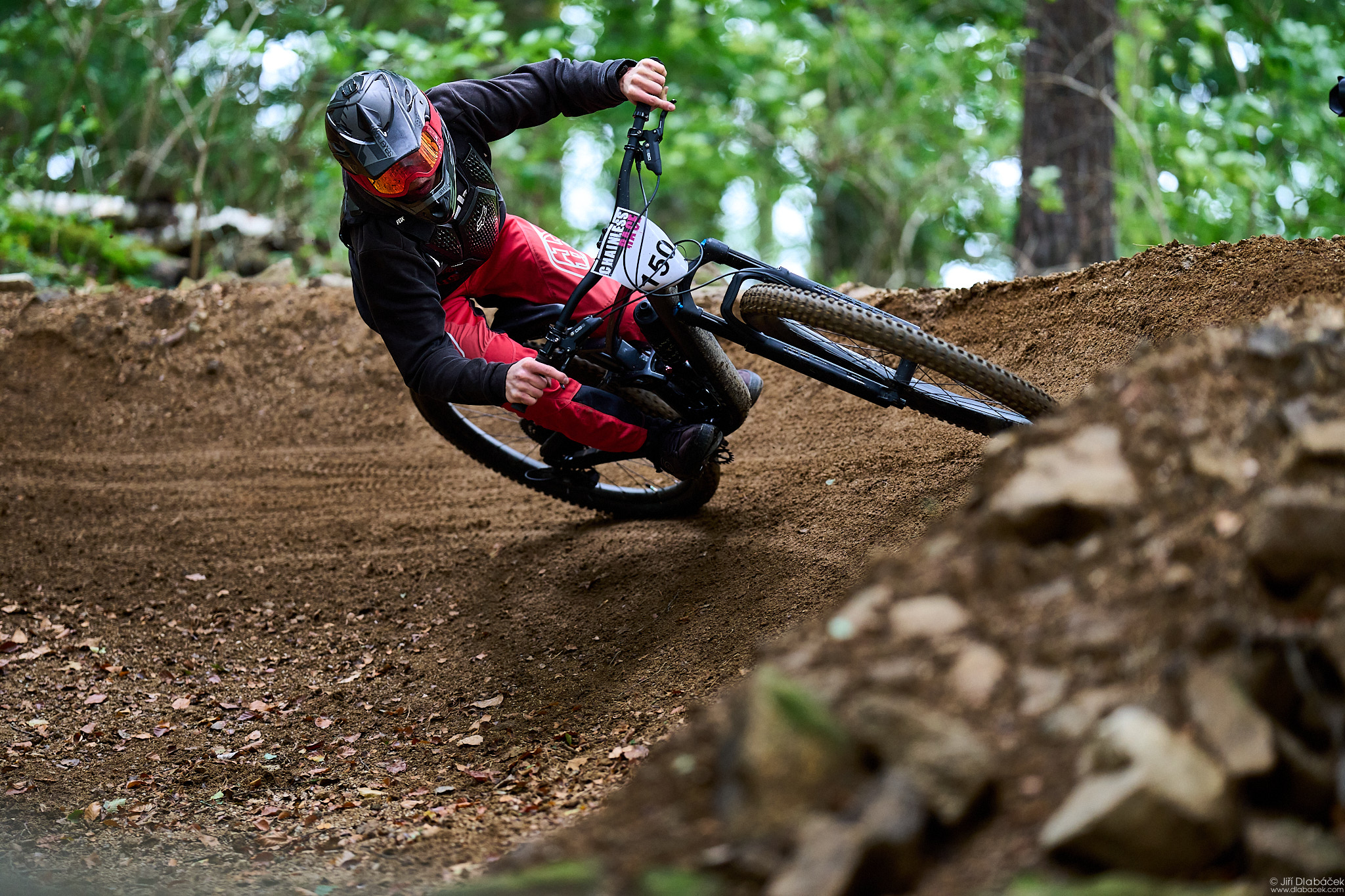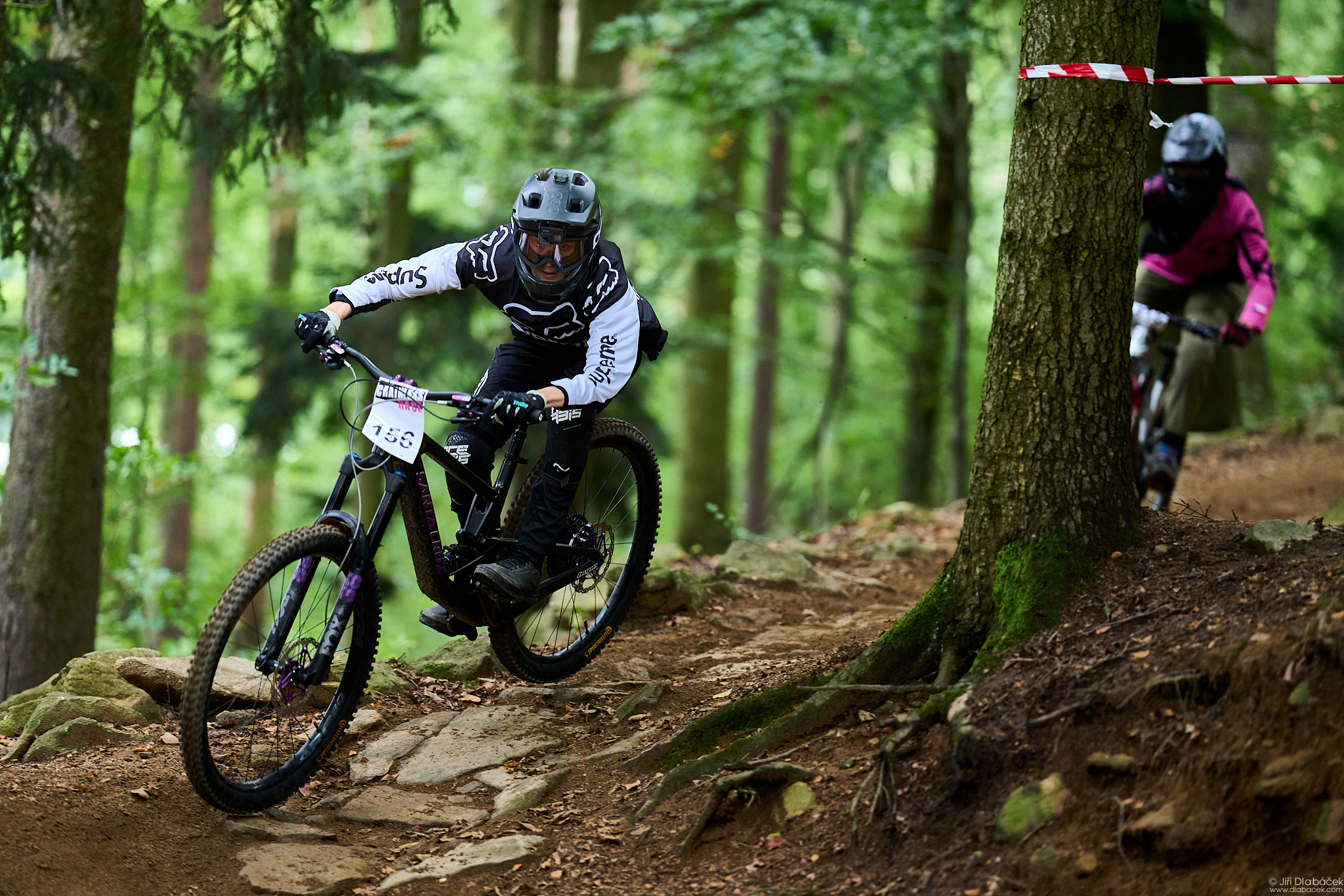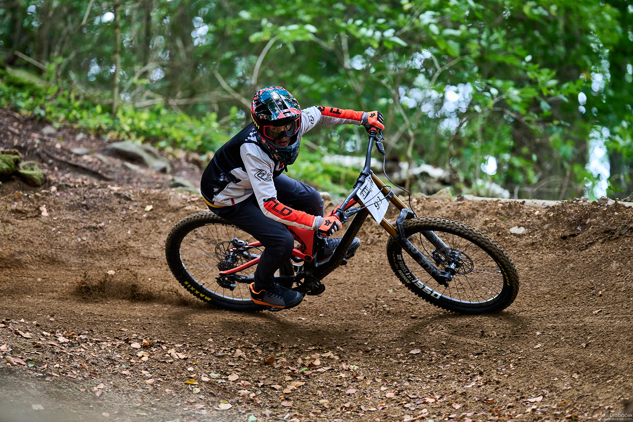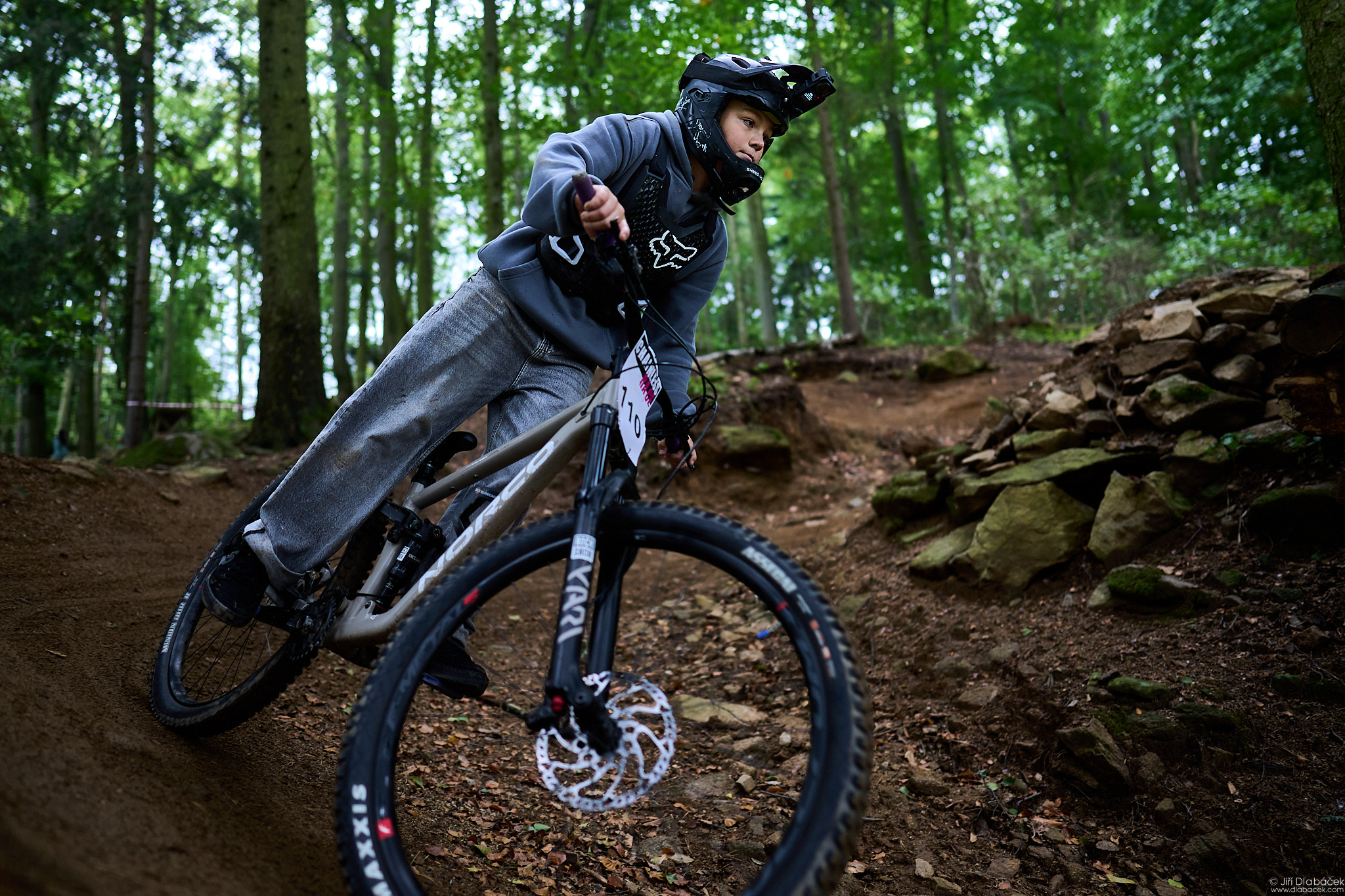 Trať vedla, stejně jako v předchozích ročnících, hustým lesem, přes lavice, klopenky, několik dropů a wallride ve spodní části. Až do horní pasáže jsem bohužel nestačil vystoupat, takže jsem opět na vlastní oči neviděl, jak to vypadá na startu.