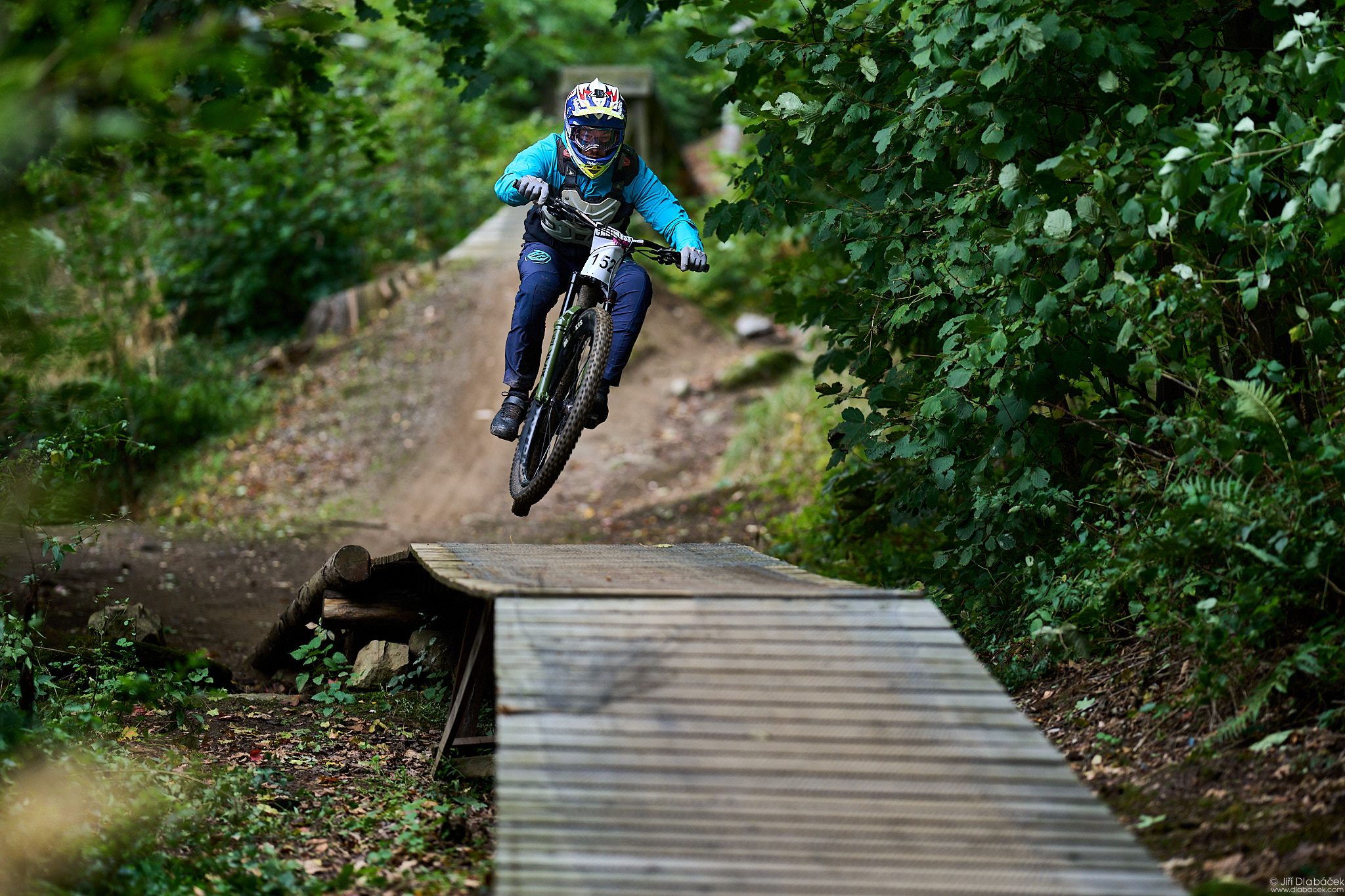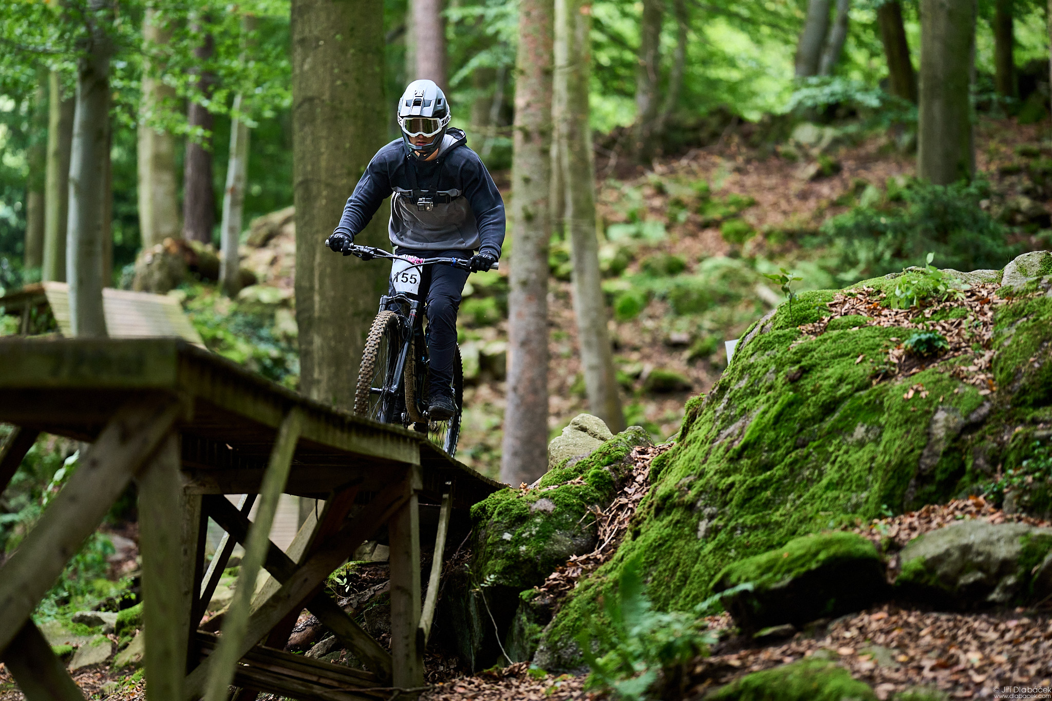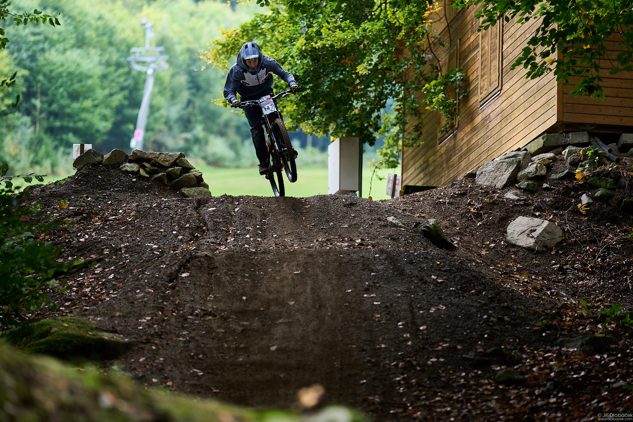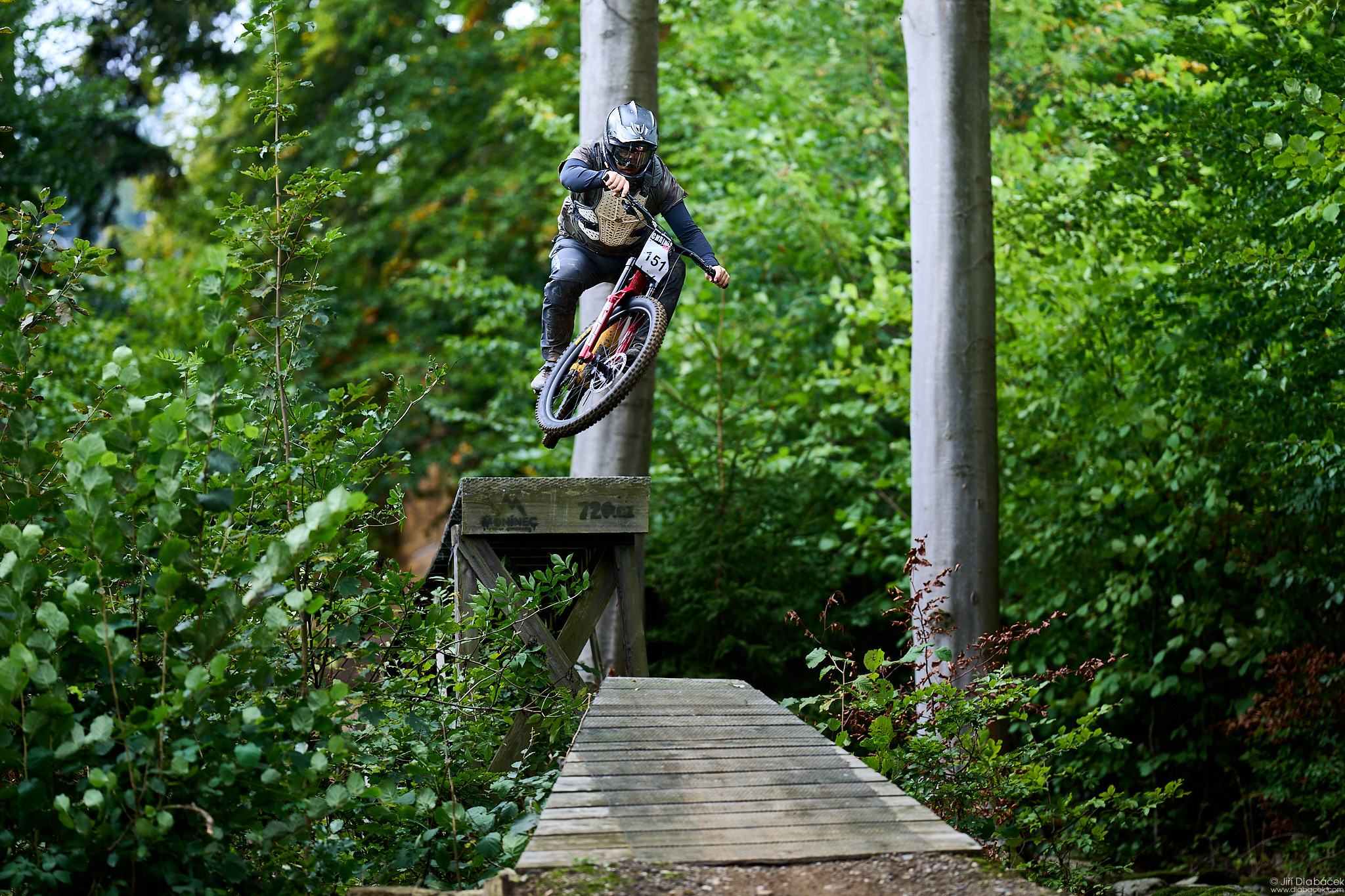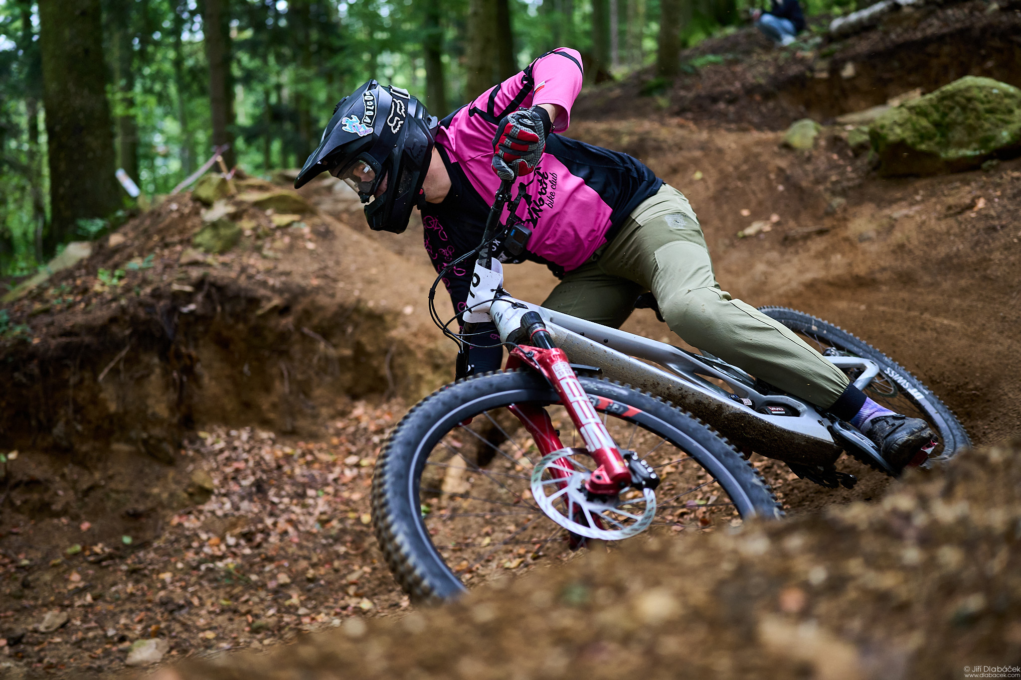 Trať vedla, stejně jako v předchozích ročnících, hustým lesem, přes lavice, klopenky, několik dropů a wallride ve spodní části. Až do horní pasáže jsem bohužel nestačil vystoupat, takže jsem opět na vlastní oči neviděl, jak to vypadá na startu.