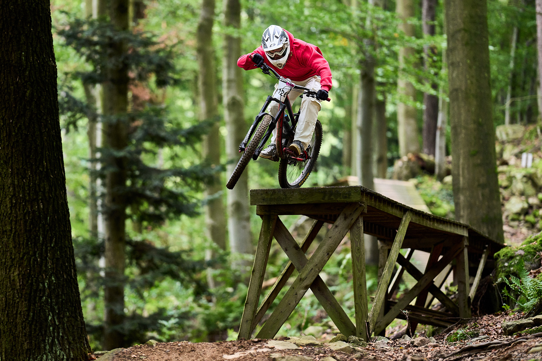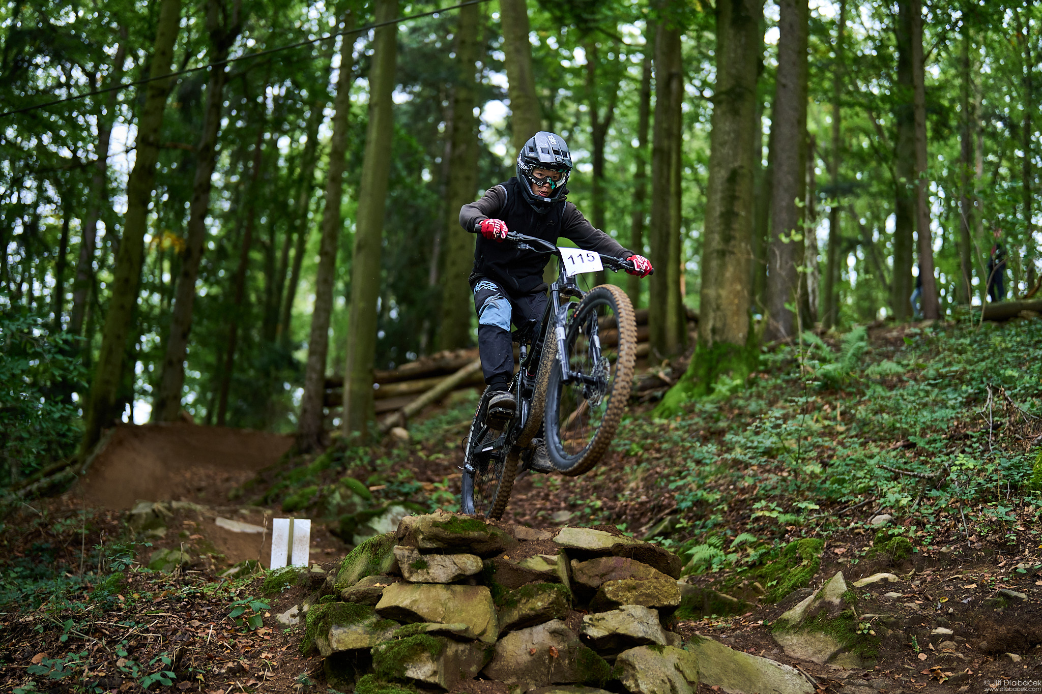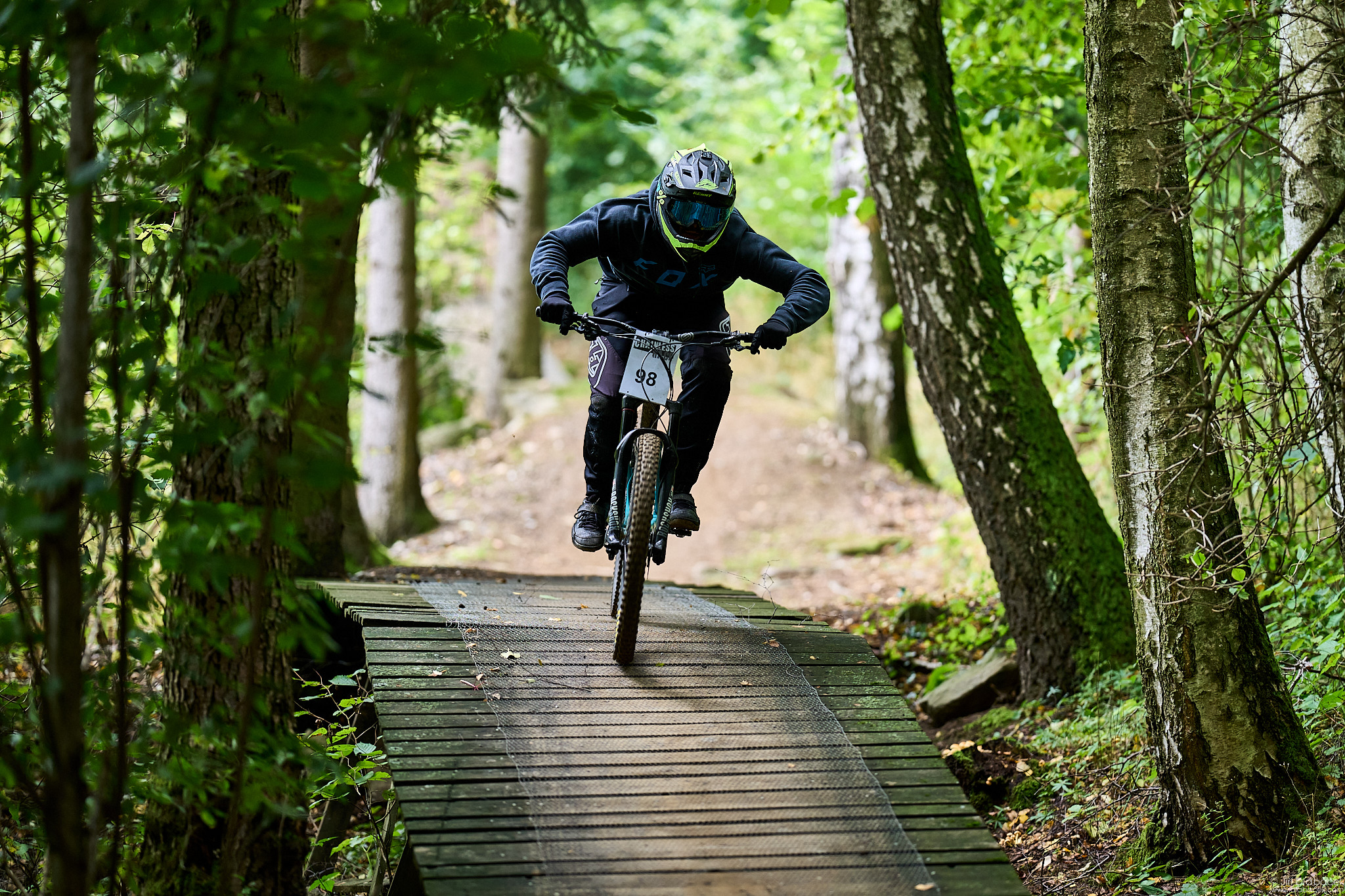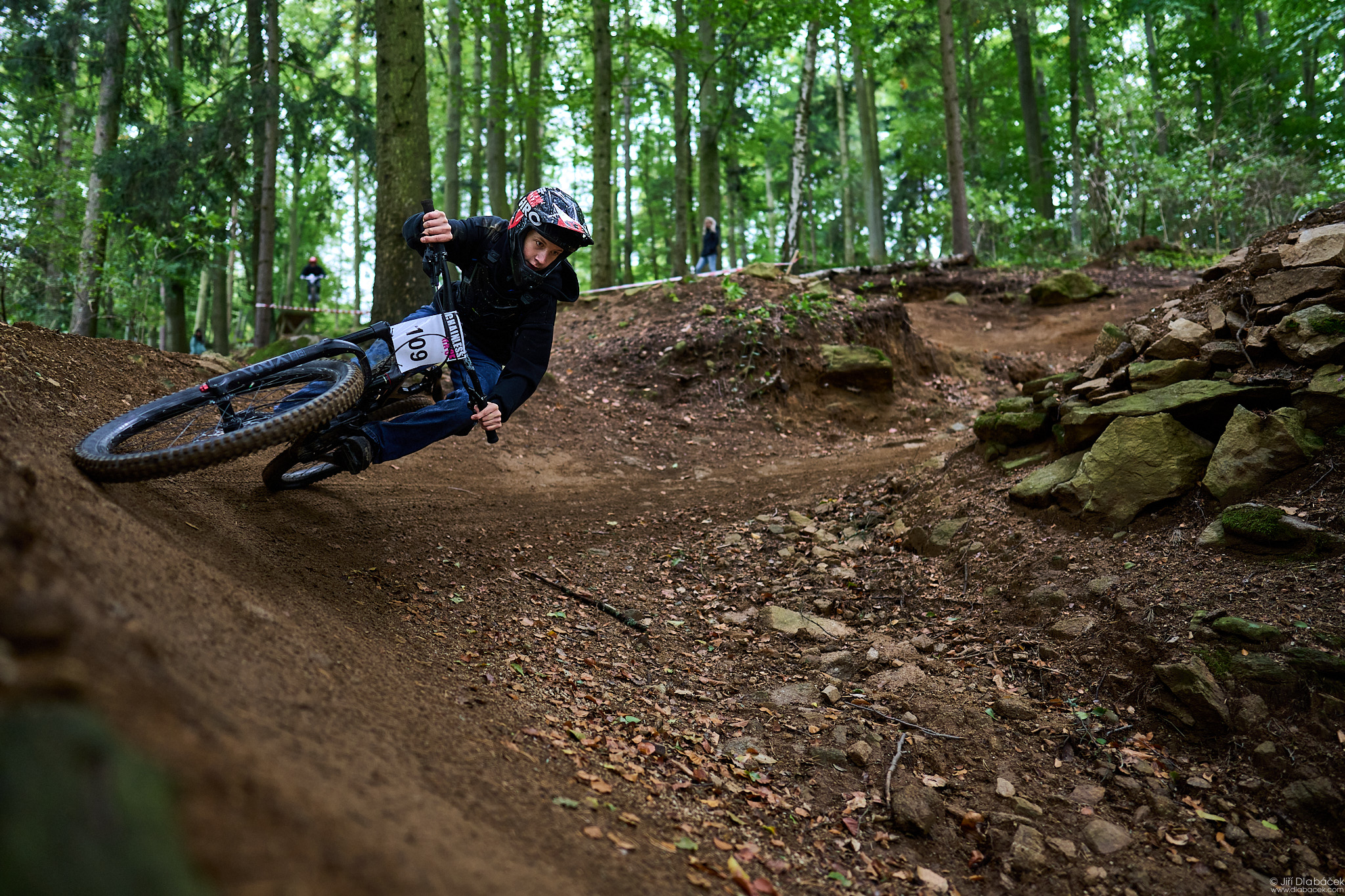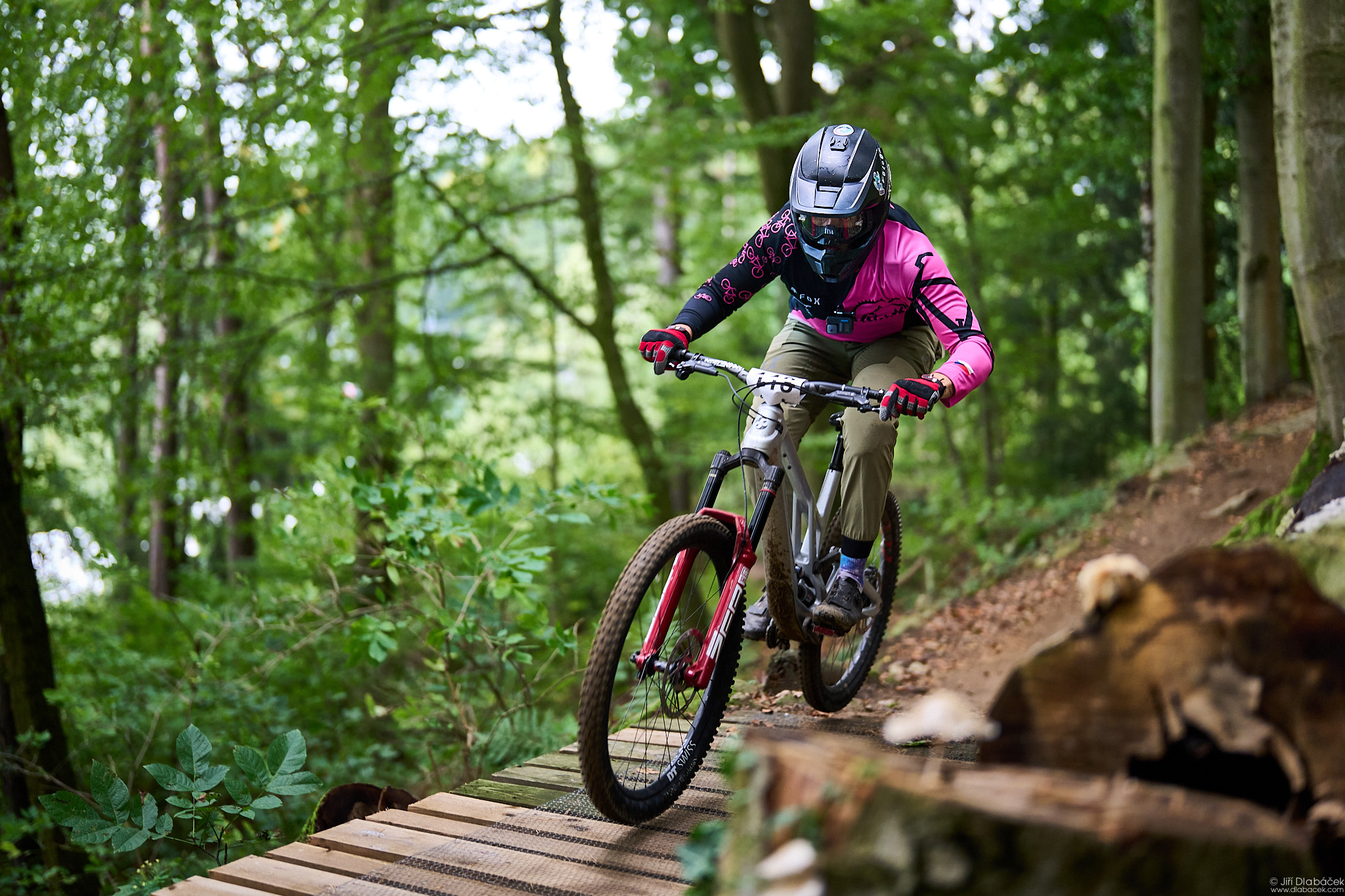 Trať vedla, stejně jako v předchozích ročnících, hustým lesem, přes lavice, klopenky, několik dropů a wallride ve spodní části. Až do horní pasáže jsem bohužel nestačil vystoupat, takže jsem opět na vlastní oči neviděl, jak to vypadá na startu.