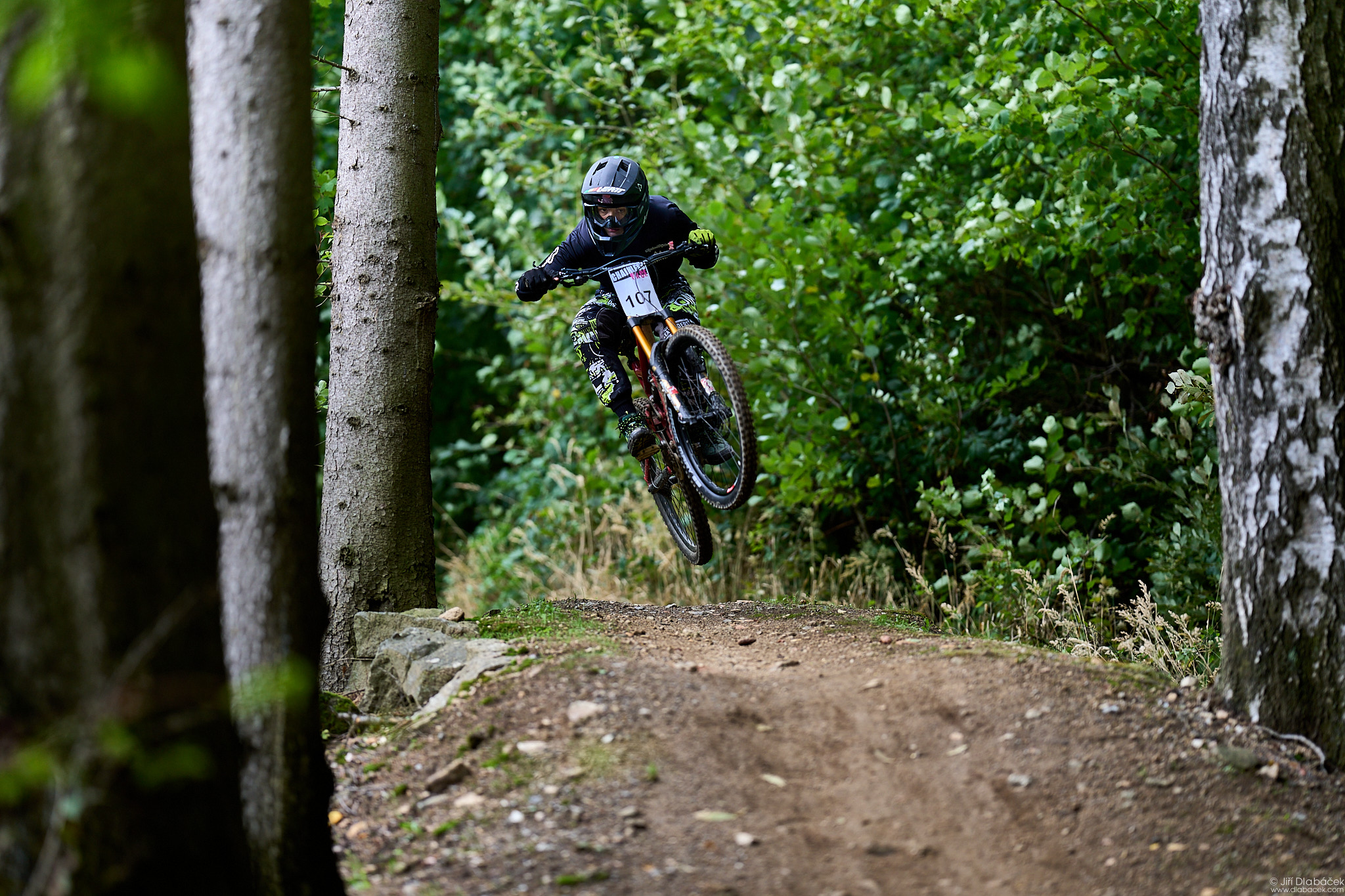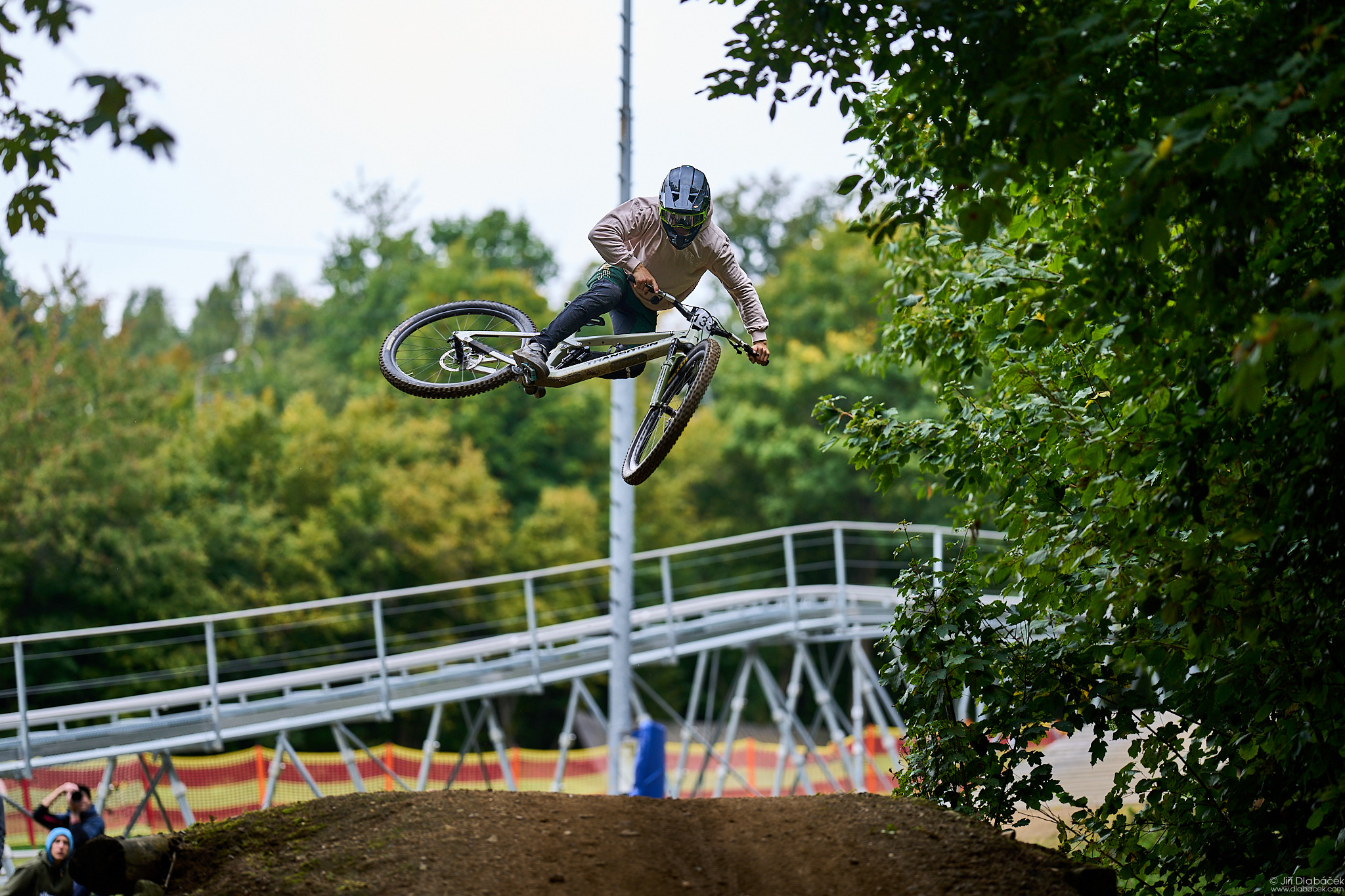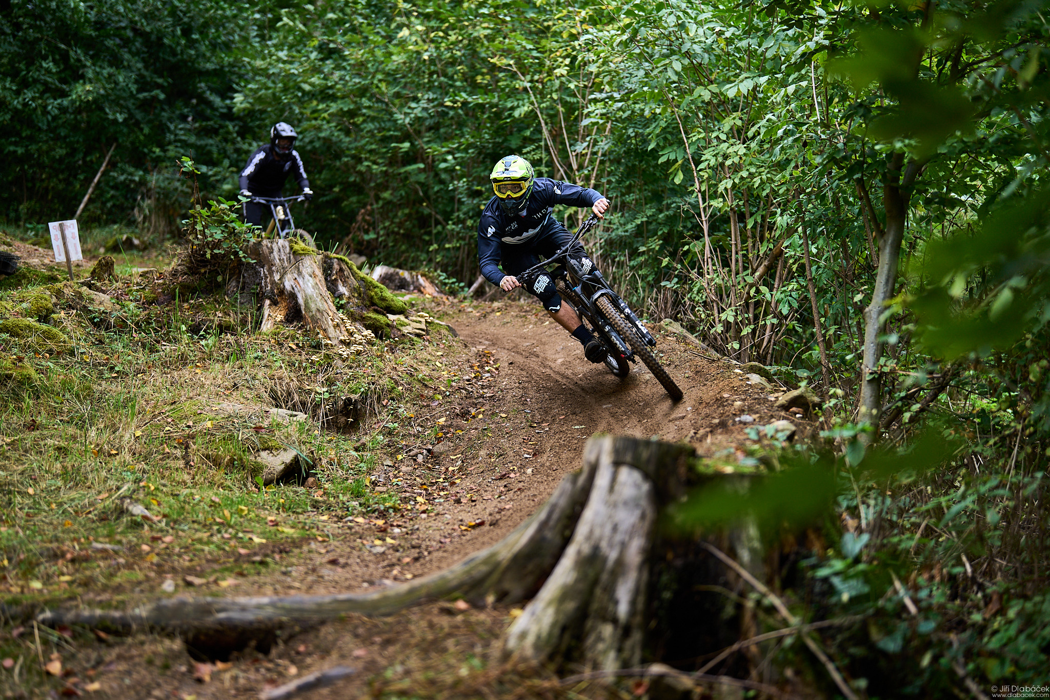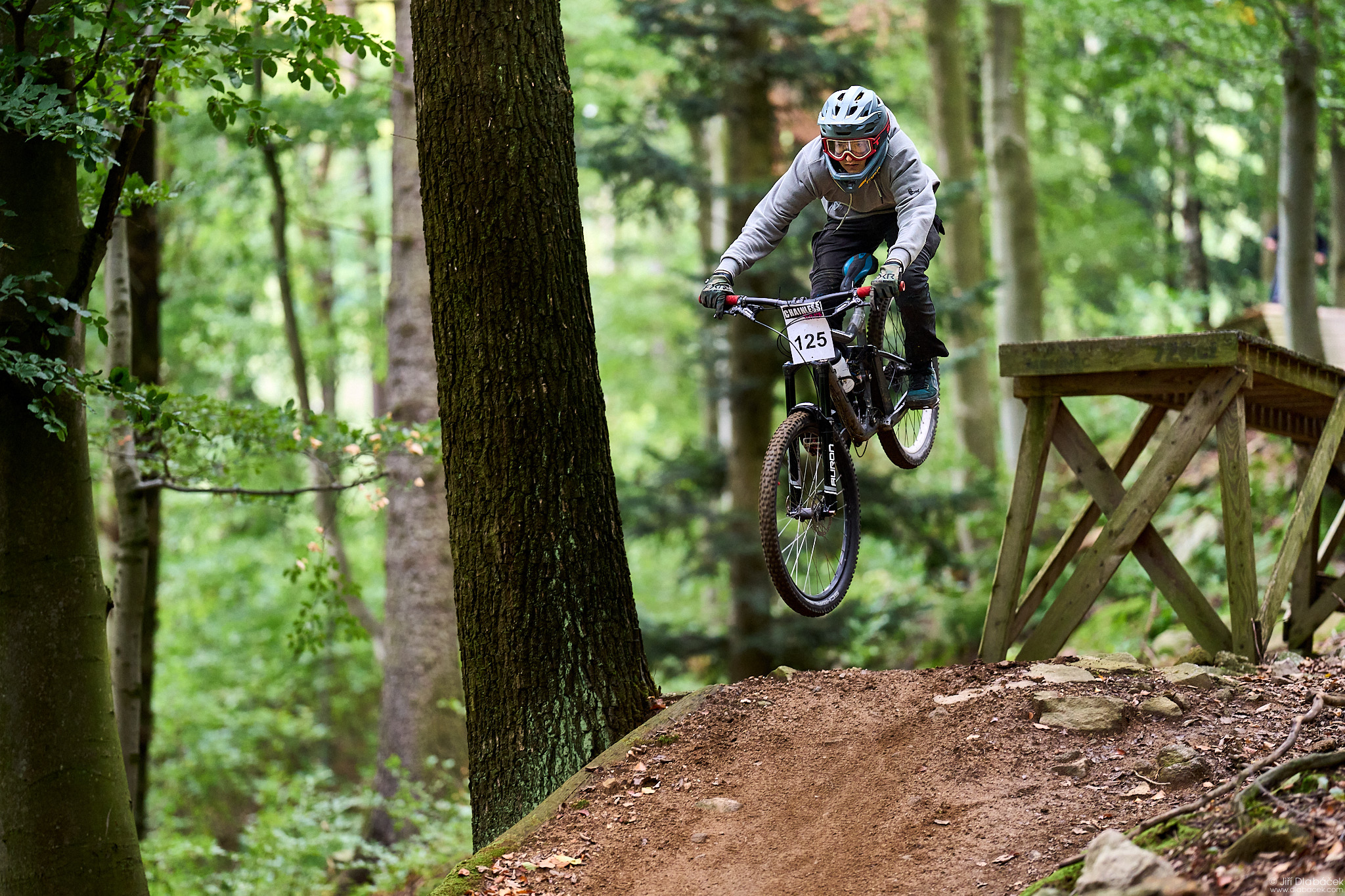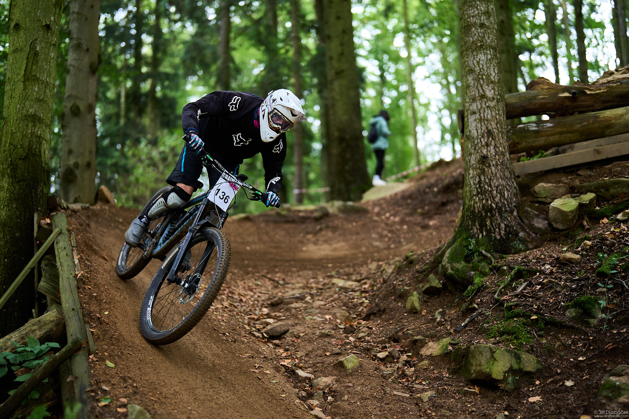 Trať vedla, stejně jako v předchozích ročnících, hustým lesem, přes lavice, klopenky, několik dropů a wallride ve spodní části. Až do horní pasáže jsem bohužel nestačil vystoupat, takže jsem opět na vlastní oči neviděl, jak to vypadá na startu.