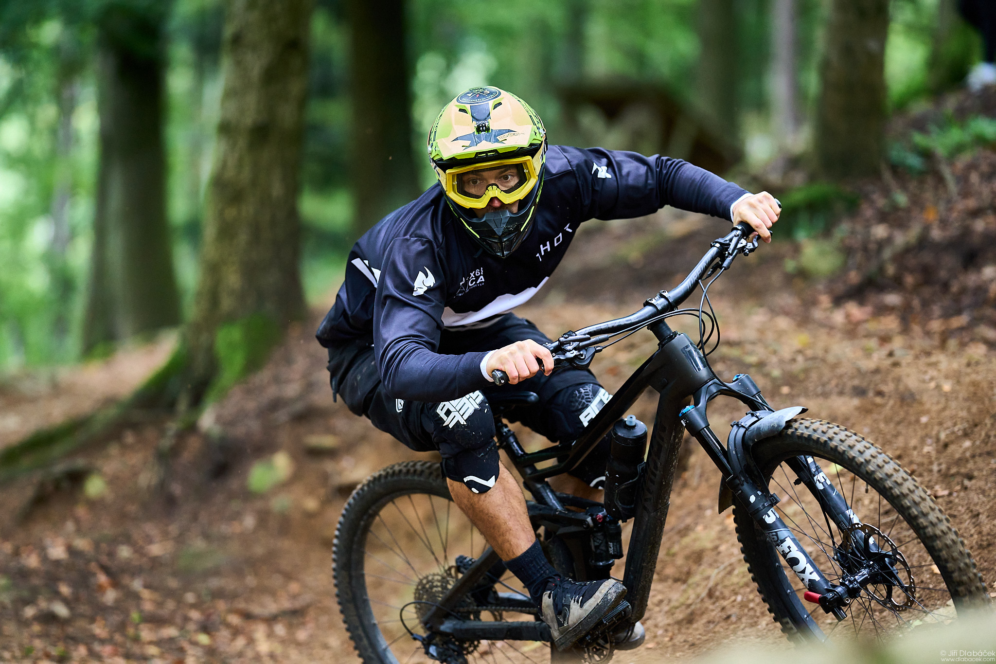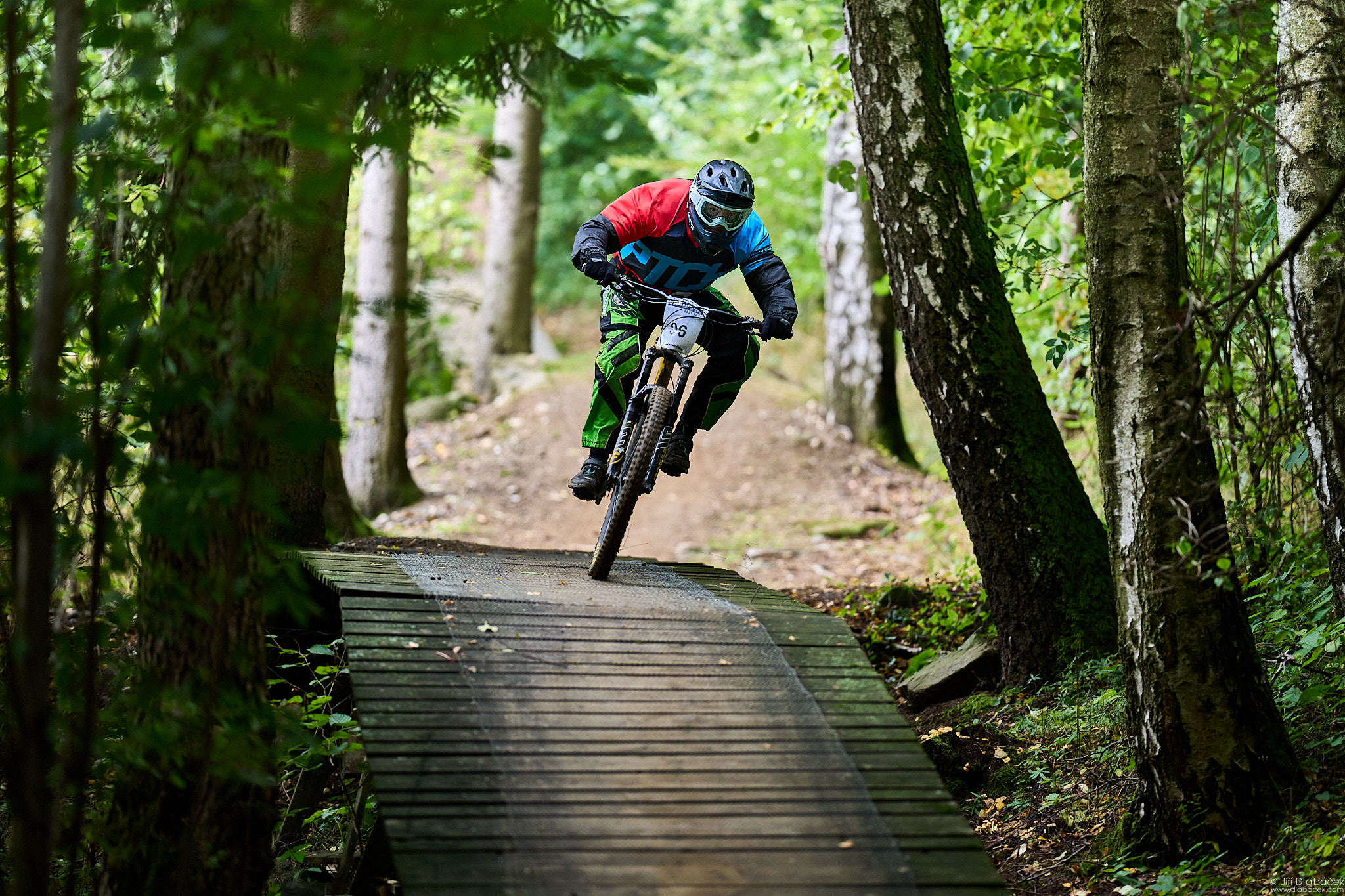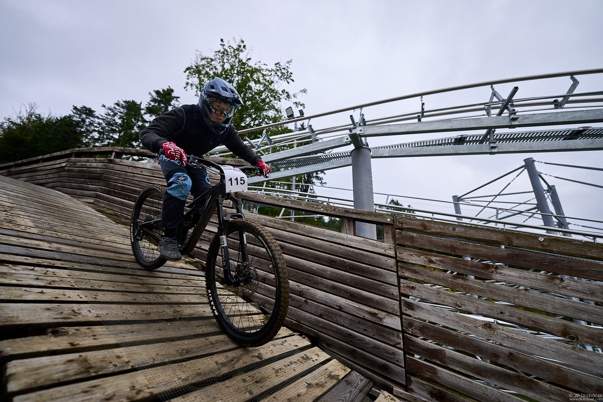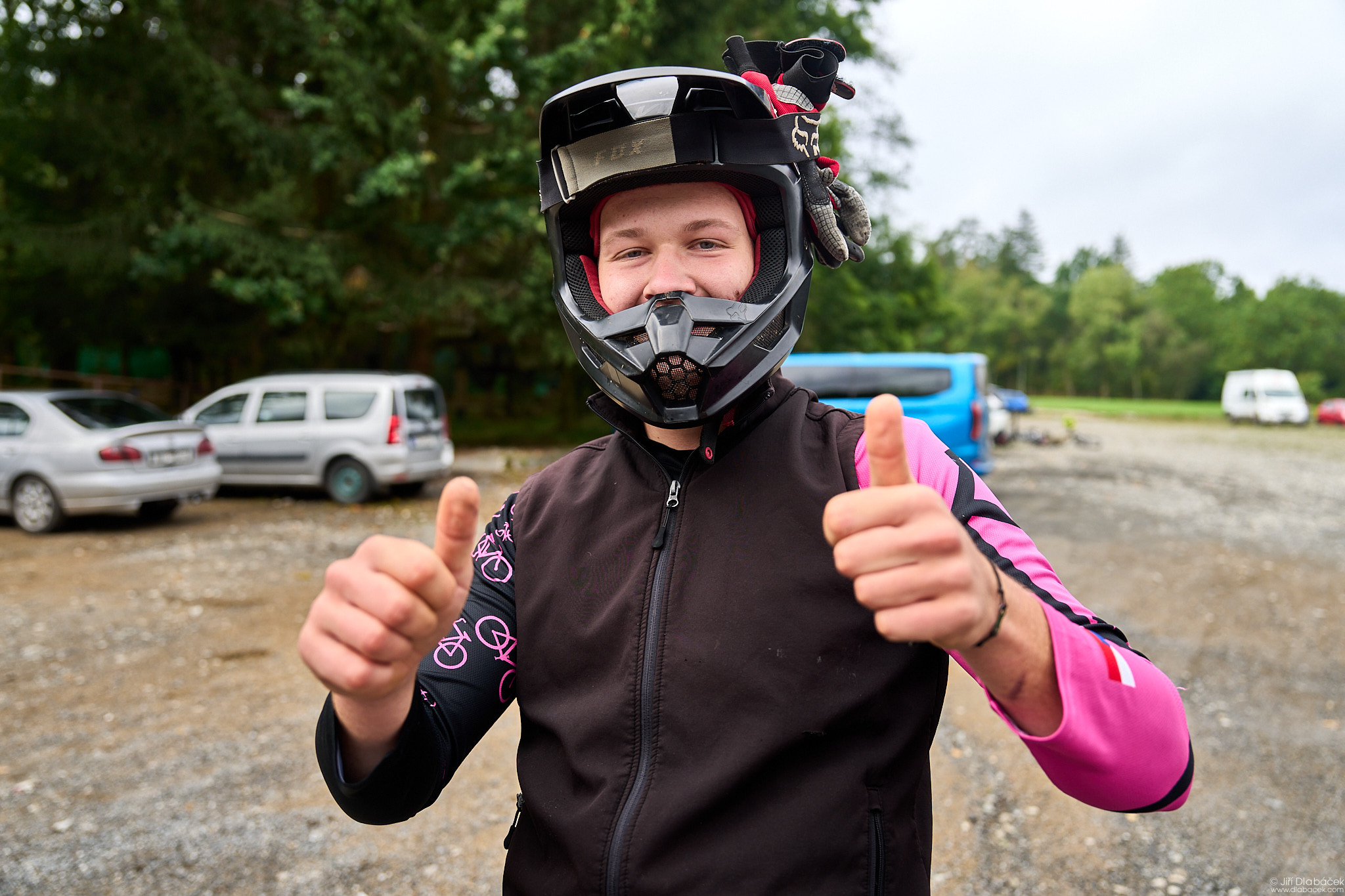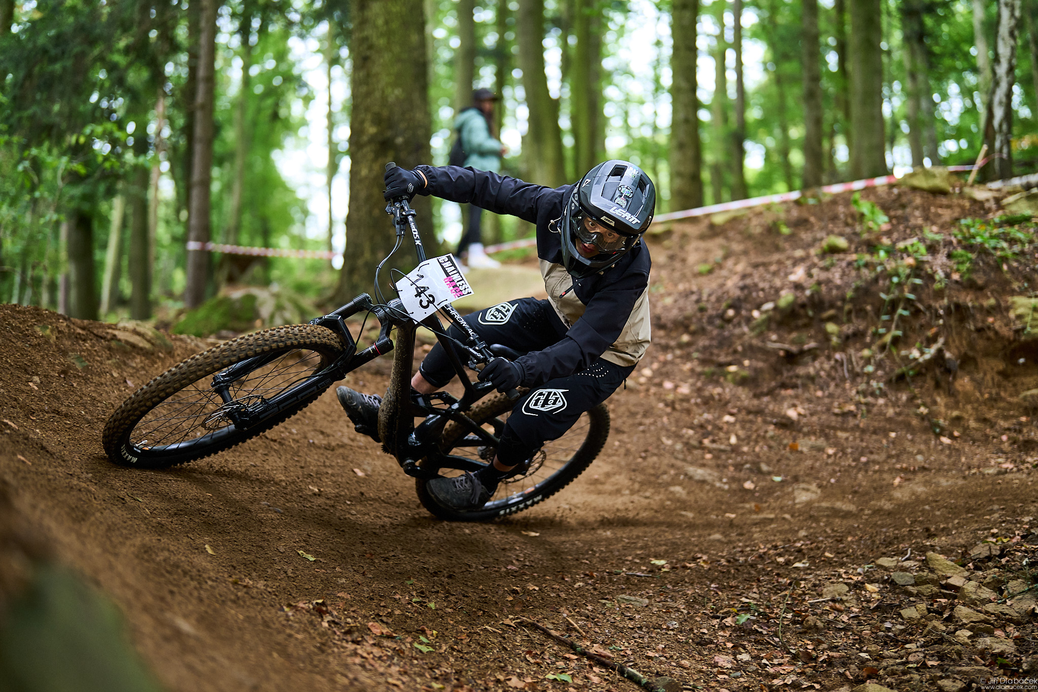 Trať vedla, stejně jako v předchozích ročnících, hustým lesem, přes lavice, klopenky, několik dropů a wallride ve spodní části. Až do horní pasáže jsem bohužel nestačil vystoupat, takže jsem opět na vlastní oči neviděl, jak to vypadá na startu.