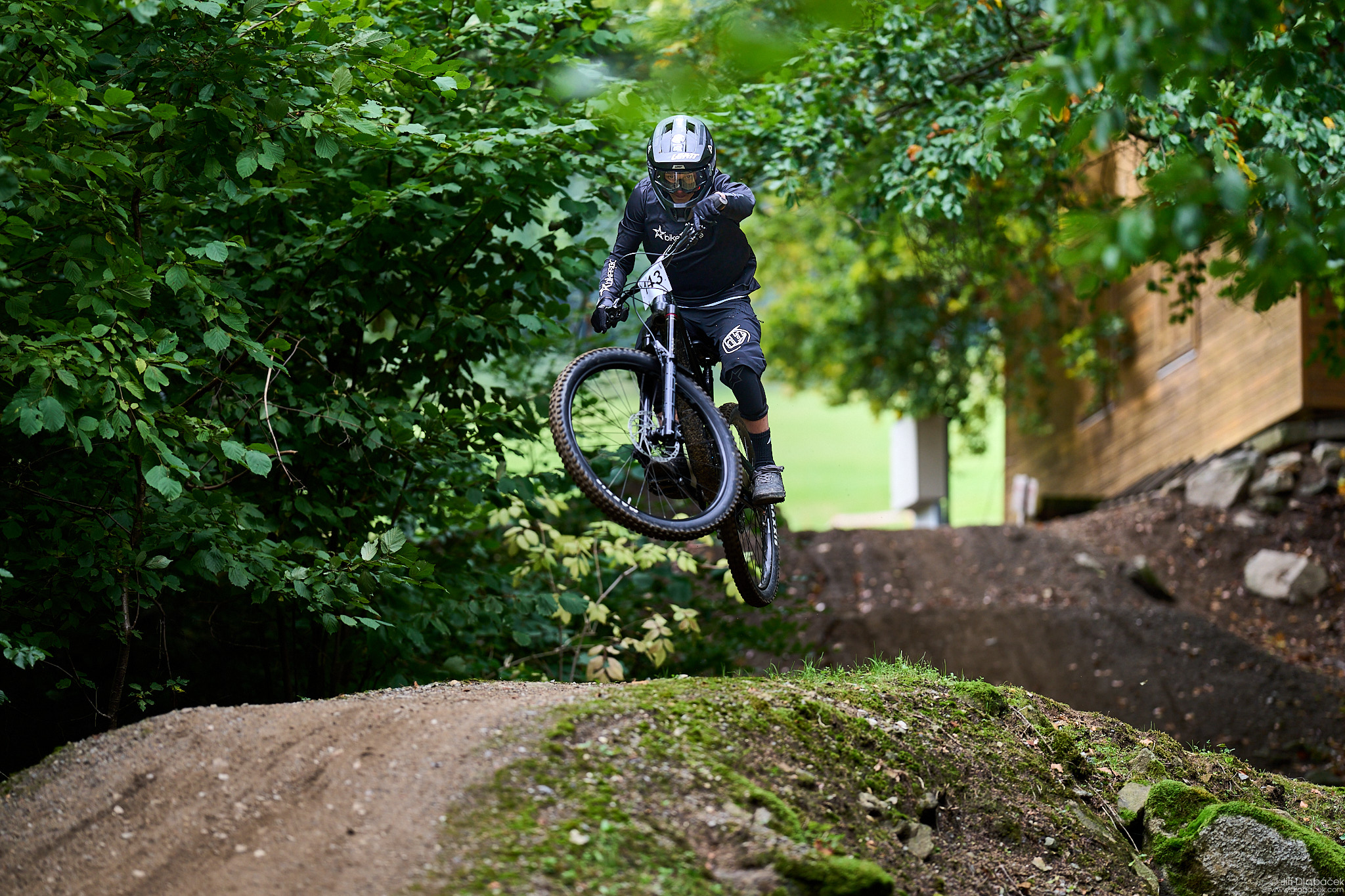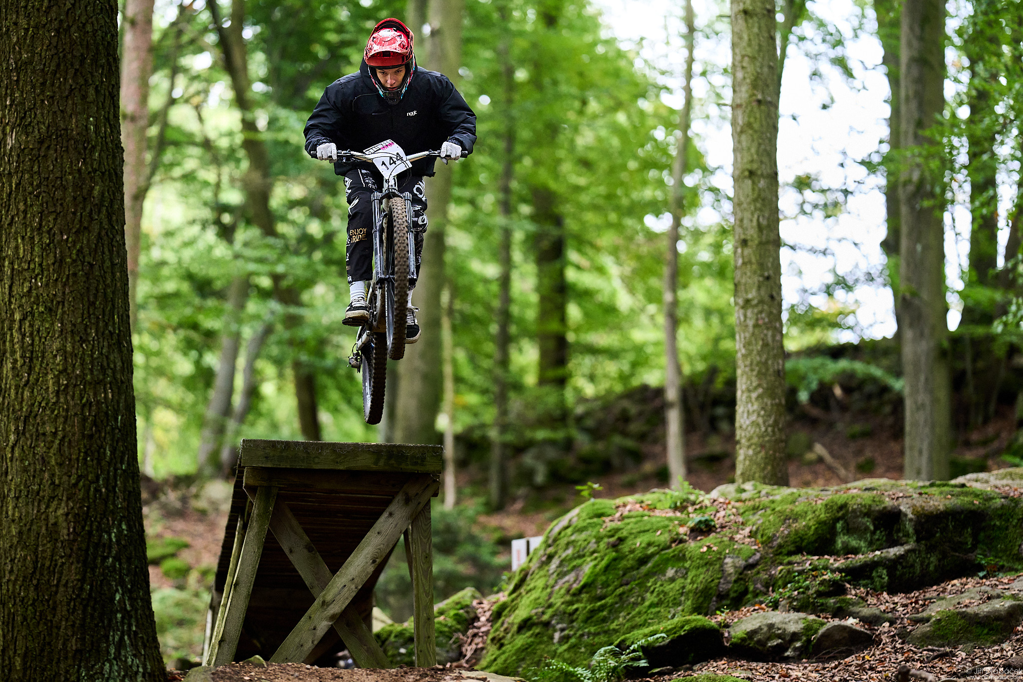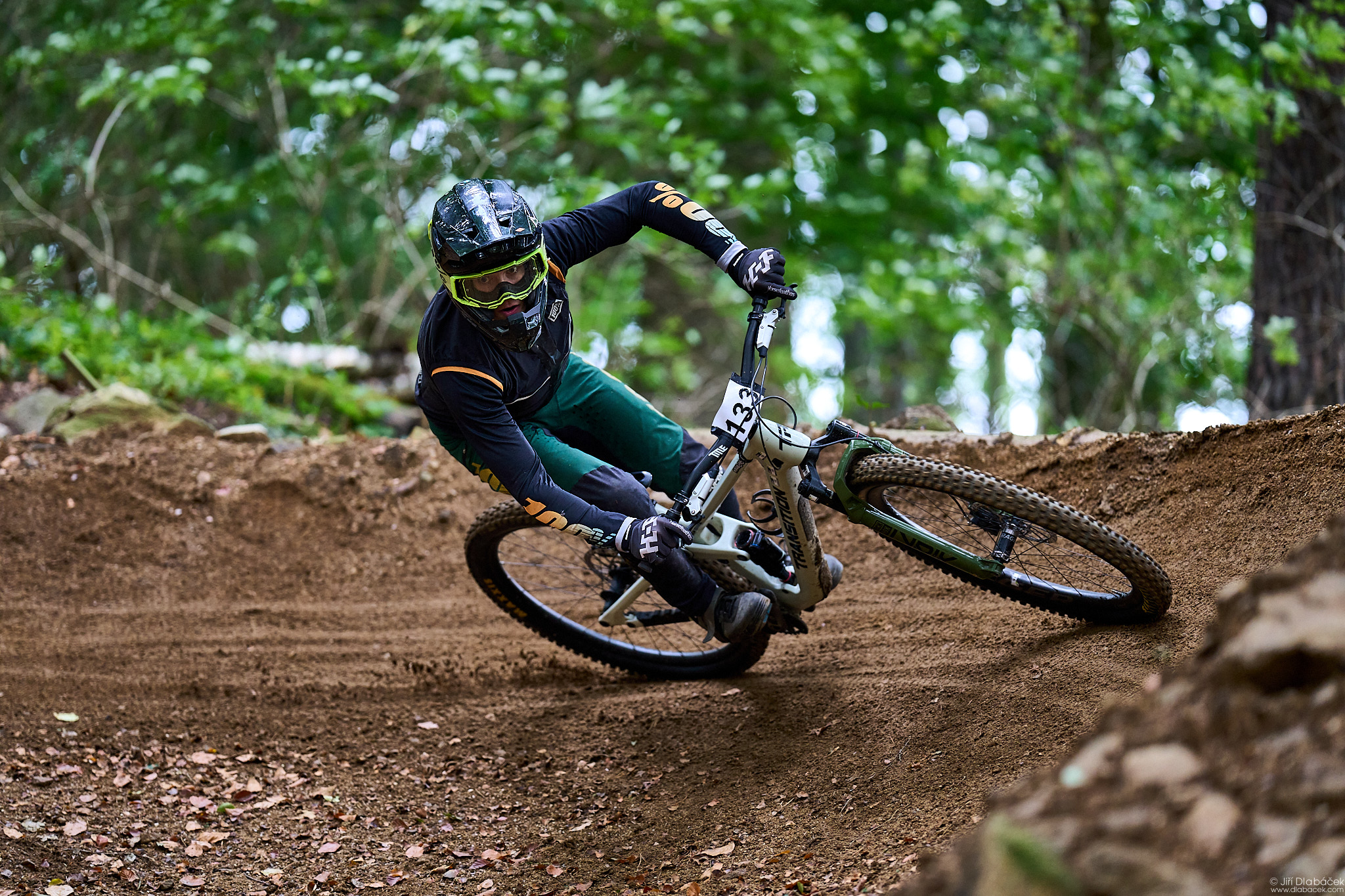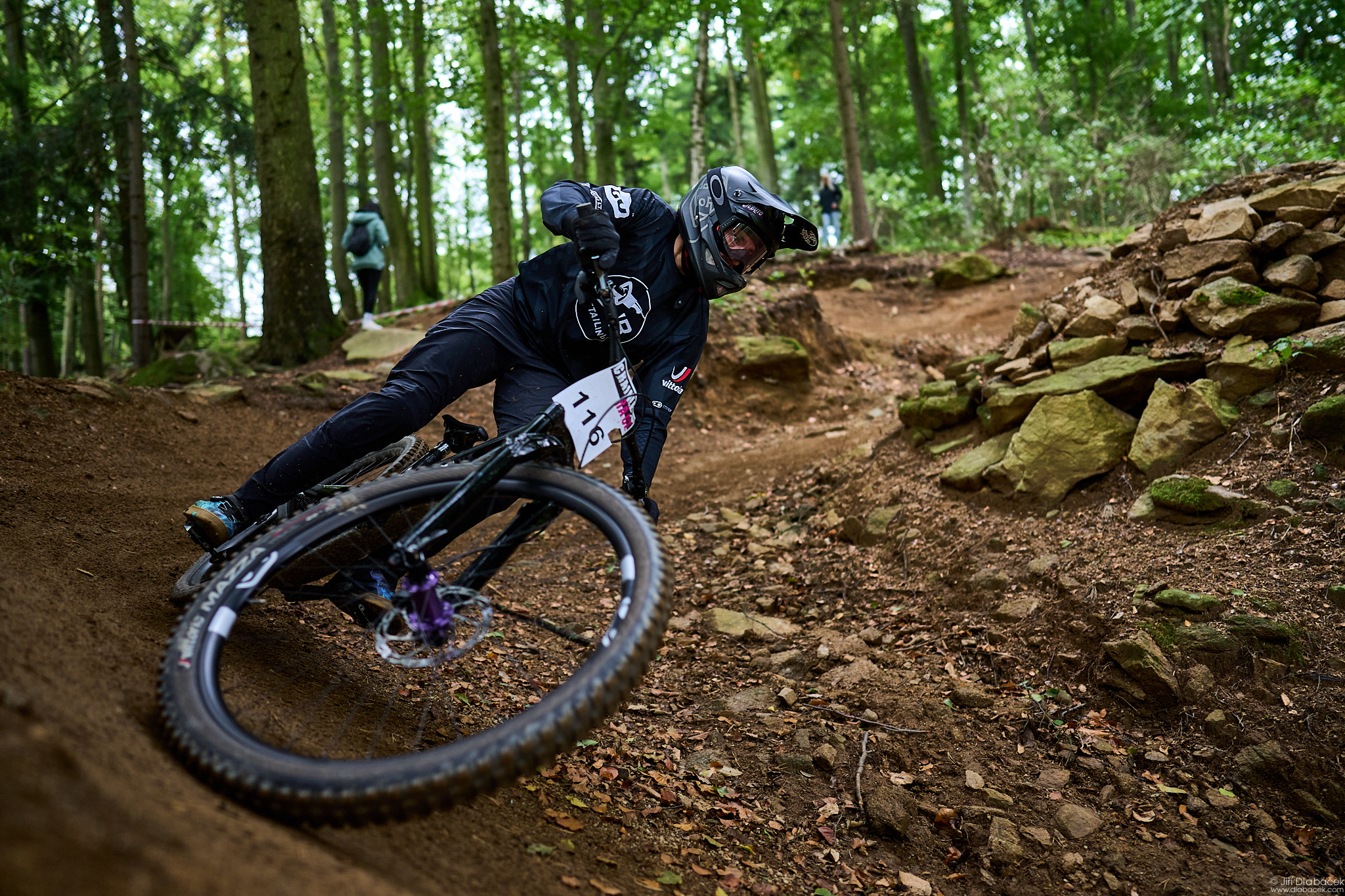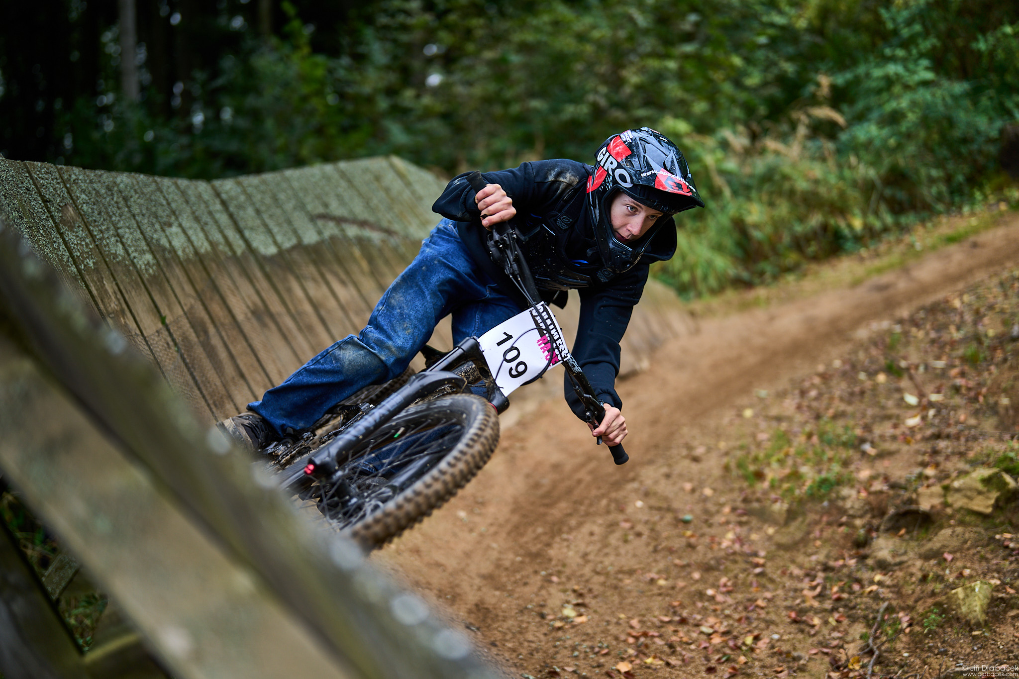 Trať vedla, stejně jako v předchozích ročnících, hustým lesem, přes lavice, klopenky, několik dropů a wallride ve spodní části. Až do horní pasáže jsem bohužel nestačil vystoupat, takže jsem opět na vlastní oči neviděl, jak to vypadá na startu.