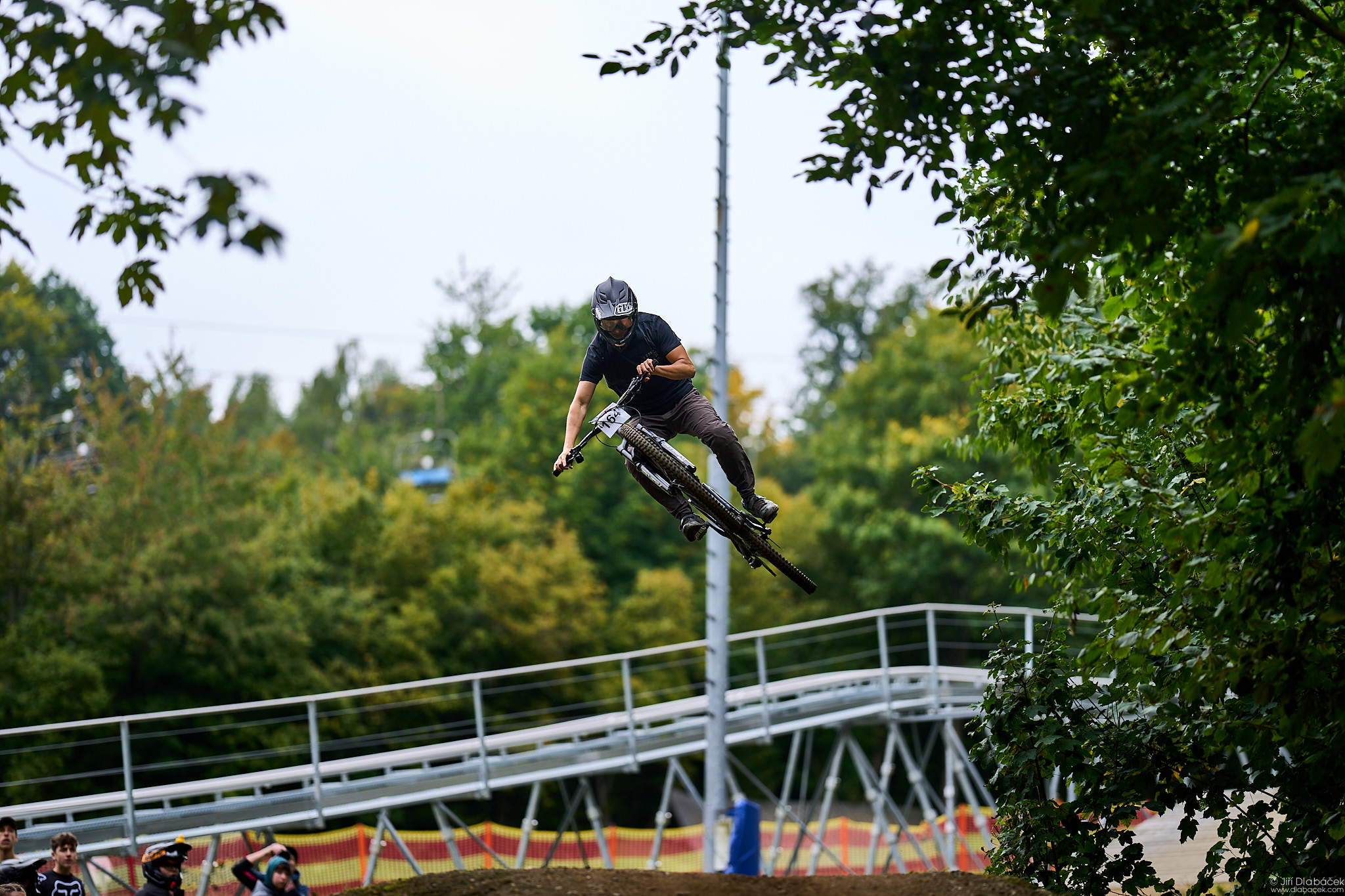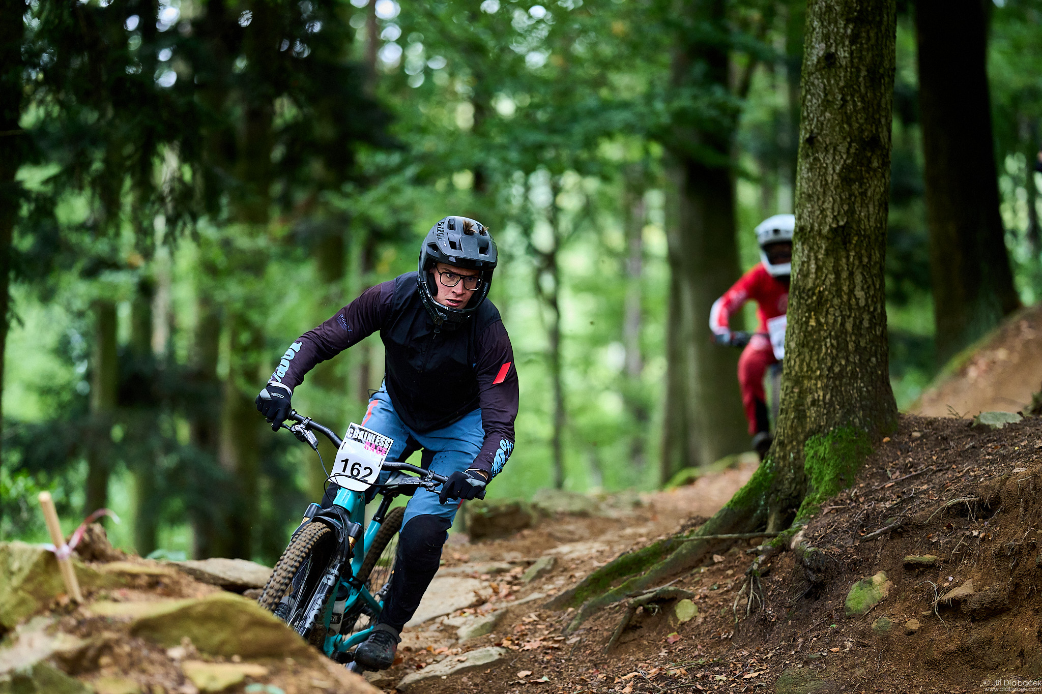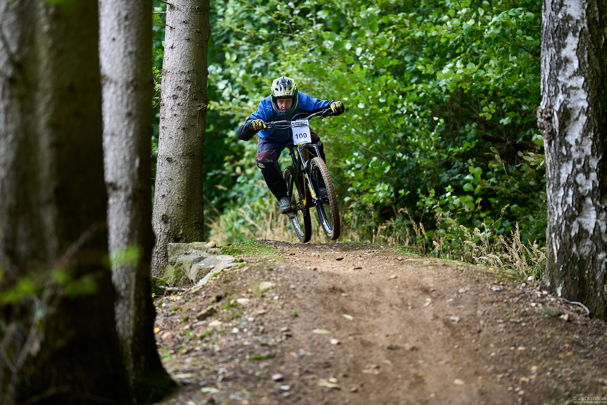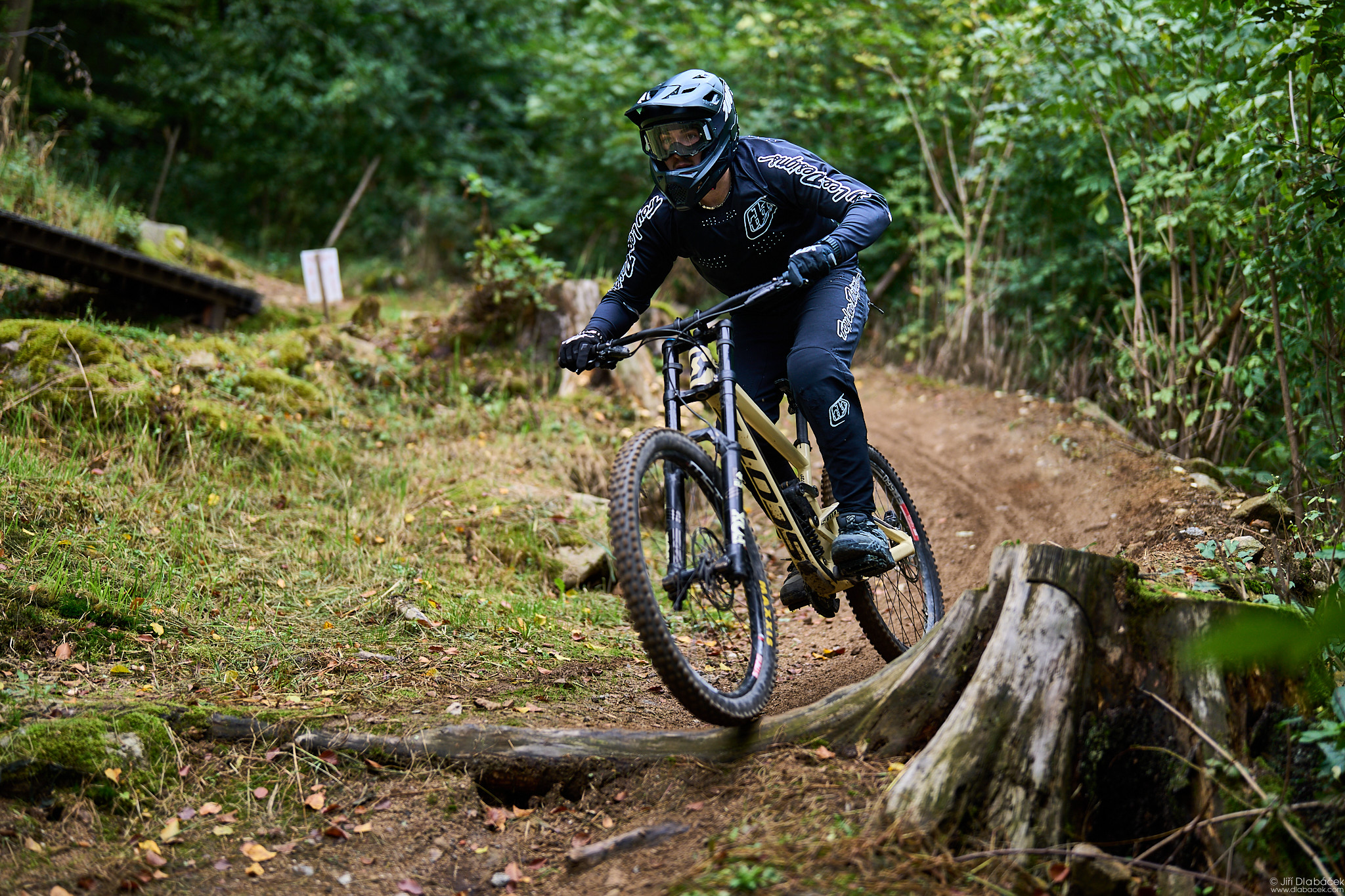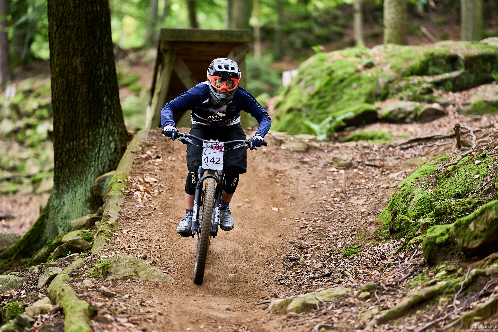 Trať vedla, stejně jako v předchozích ročnících, hustým lesem, přes lavice, klopenky, několik dropů a wallride ve spodní části. Až do horní pasáže jsem bohužel nestačil vystoupat, takže jsem opět na vlastní oči neviděl, jak to vypadá na startu.