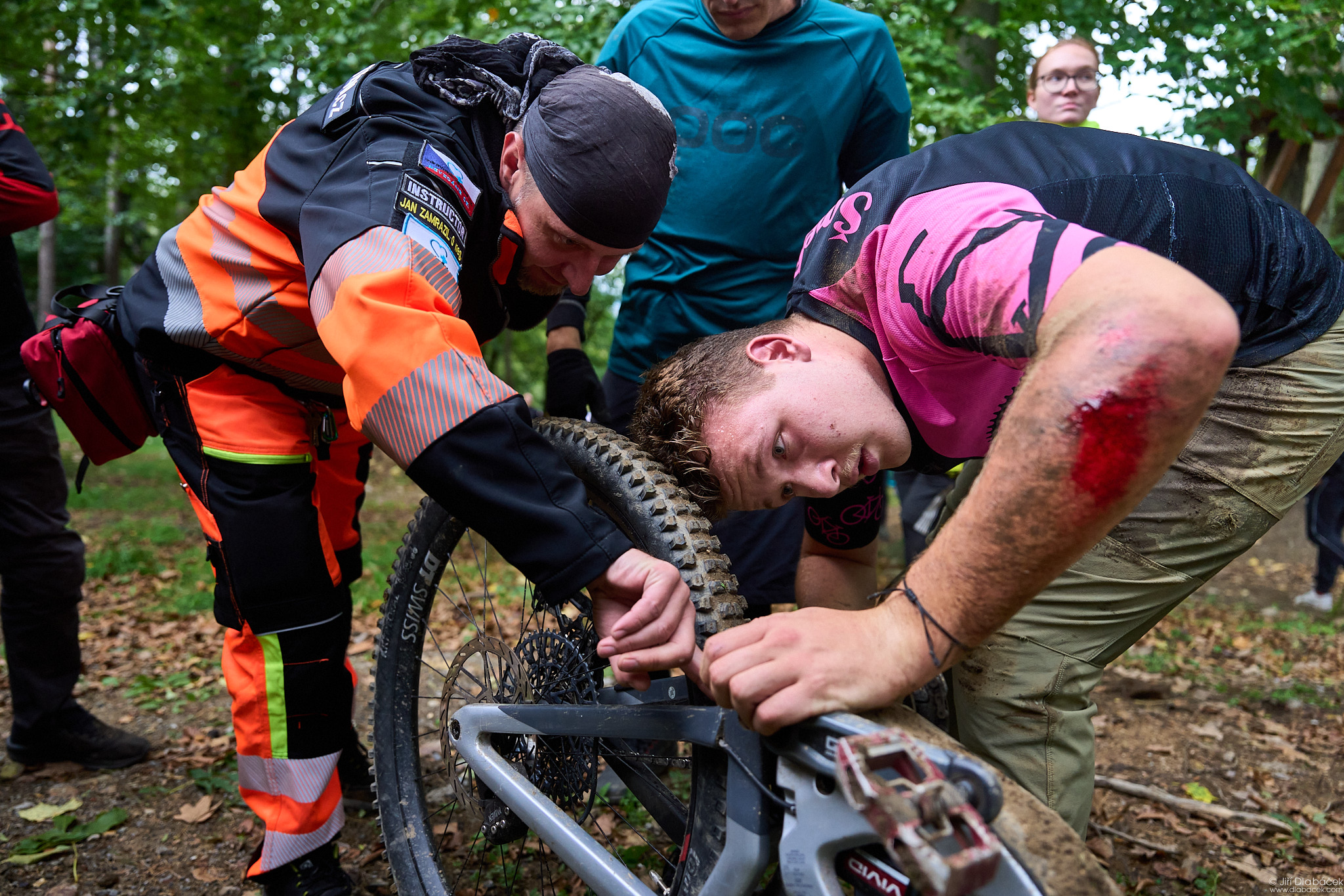 Letos panovaly ve srovnání s předchozími ročníky téměř ideální podmínky (tím myslím na poměry podzimní české Sibiře). Přesto se smůla některým závodníkům nevyhnula. Vím o jedné dodávce, která se na parkovišti samovolně rozjela a skončila mezi smrčky. Nechybělo ani jedno vyhozené rameno a byl jsem také u jednoho zásahu záchranářů.