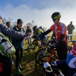Je odstartováno. Nevím, jestli kvůli zimě, nebo kvůli čekání, ale všichni hned od začátku sprintují a minimálně celé kolo jedou ve skupině. Kazit to začne až Tomáš Bakus. Fotím ho jako prvního a čekám na místě na posledního závodníka. Než stačí dojet ten poslední, už je tady znova Tomáš.