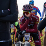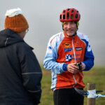 Závody tentokrát začínají dřív, než bylo obvyklé. Před jedenáctou hodinou se na kopci u cedule start scházejí všechny ženy a kadeti. Krátká domluva, na kolik kol bude závod. Ženy to mají na tři, kadeti na čtyři. Na závodění je to možná tak akorát, ale na focení hrozně málo. Než se stačím rozkoukat, je konec. Stíhám tak akorát výběh po schodech.
