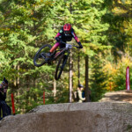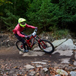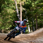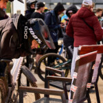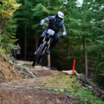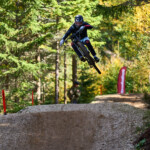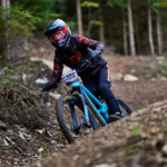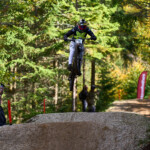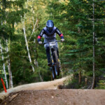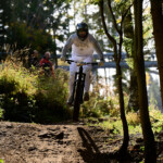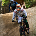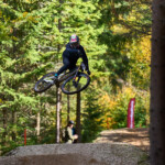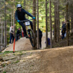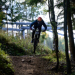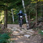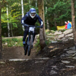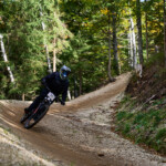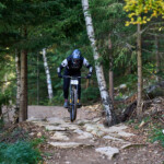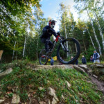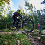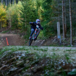 Pěšky jsem neměl šanci projí celou trať až ke startu. Nechal jsem si tedy doporučit nejzajímavější místa, na kterých se mám zastavit. Asi nejvíc se všichni shodovali na spotu u velkých lavic. Závodníci tady létali neskutečnou rychlostí za hlasitého povzbuzování fanoušků. Nechtěl jsem zůstat celý závod na jednom místě, tak jsem se vydal ještě kus dál až na začátek, nebo spíš konec prudké lesní pasáže plné kořenů a kamenů. Od závodníků vím, že tahle část byla hodně náročná a vysilující. Na první pohled a ani na fotkách to tak nevypadalo.