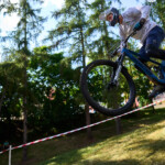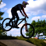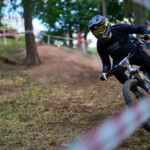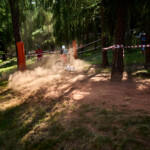 Během závodu jsem měnil stanoviště na focení, abych se vyhnul stovkám podobných fotek z jednoho místa. Na druhou jízdu jsem se proto přesunul do parku. I když to na první pohled nevypadalo složitě, právě tady se odehrálo nejvíc dramatických momentů. Dopad z jednoho dropu vedl do prašného podkladu a jemný prach se choval jako dokonalé kluziště. Ne každý jezdec tenhle povrch ustál.