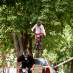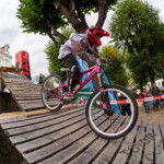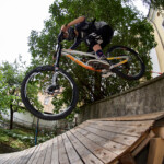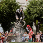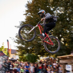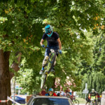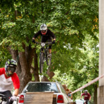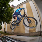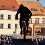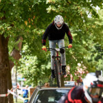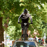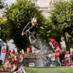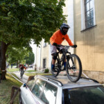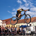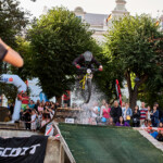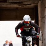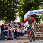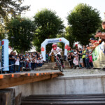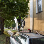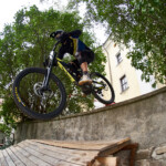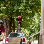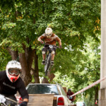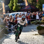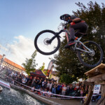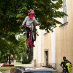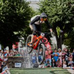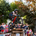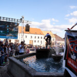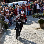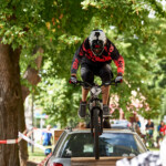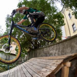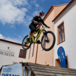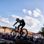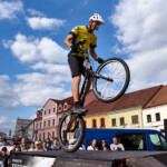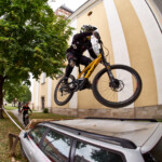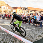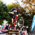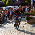 Parkoviště v Dačicích okolo náměstí byla vyhrazena pro závodníky a musím proto hledat místo v bočních ulicích. Vyrážím na náměstí, kde už je vše připraveno na závod. Začíná se klasicky obhlídkou trasy a potom následují tréninkové jízdy. Závod začíná v půl jedné a jede se na dvě kola. Start je u kostela Sv. Vavřince, následuje skok přes Audinu, malý drop ze zídky u kostela, potom klopenka do zahrady místní školy, odtud velký drop do dvora kulturáku, kde je další skok, potom rychlý průjezd s dropem na náměstí, kde na závodníky čeká již legendární skok přes kašnu. Potom už jenom rychlý průlet přes náměstí do myší díry a cíl.