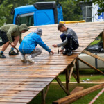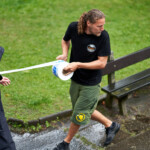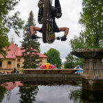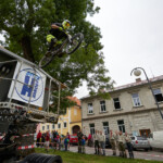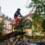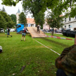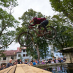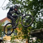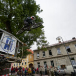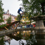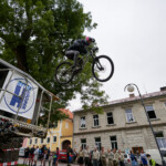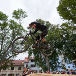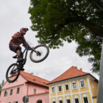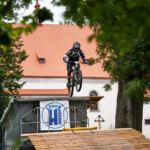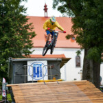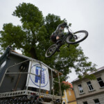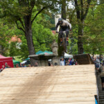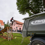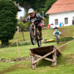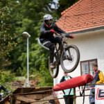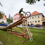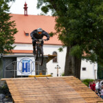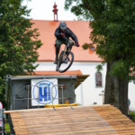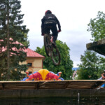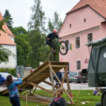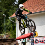 Letos je to s počasím zakletý. Zdá se, že pozná kdy je víkend a jedou se závody. DT Rakovník déšť, Bobovka Cup taky a na Downtown Horní Planá teď to samé. Sice jsem přijel za sucha, ale po chvíli začíná pršet. Dobu, než déšť ustane trávíme s Romanem na terase v místní hospodě. Kluci zatím pobíjejí pletivem kluzké překážky. V jednu hodinu konečně déšť ustává a může začít trénink. My vyrážíme na obhlídku terénu. Jednou z největších atrakcí bude skok přes vůz, lépe řečeno přes korbu kamionu, který na náměstí zaparkoval táta závodníka Honzy Pouzara. Hned při tréninku tuhle překážku jeden jezdec nedoskočil a skončil na korbě s obličejem od krve.