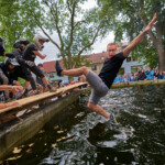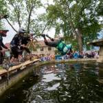 Vyhlášení proběhlo na dřevěném doskoku u kašny, takže je jasné, že kromě tradičního vhození spíkra Peci, ve vodě skončili i vítězové závodu.