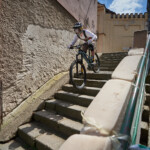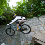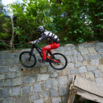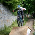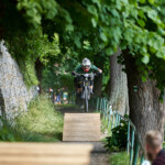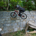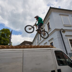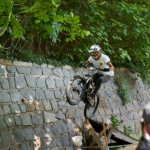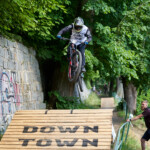 Jak se letos zvětšovaly překážky, tak i skok přes auto u kláštera narostl z osobáku na dodávku. Následoval známý a technický slalom. Kdo neuměl zatáčet, tady ztratil hodně času. Minulý rok tady před nájezdem kvůli dešti a kluzké dlažbě hodně borců padalo, ale letos bylo sucho, takže v pohodě. Za slalomem byl ještě menší gap a potom dlouhý šlapací úsek v uličkách Tábora. Kdo neměl fyzičku, tak si to pěkně odfuněl. Schody nebyly tentokrát v sadech, ale jely se boční ulicí, která se napojovala na prašnou vyhlídkovou pěšinu. Tady ještě přibyl wallride, který se sice dal objet, ale blbě. Občas tady někdo spadnul a jeden závodník skončil na šití v nemocnici. Potom už následoval myslím jenom jeden gap a drop v parku a dojezd k cíli u potoka, stejně jako v loňském roce.