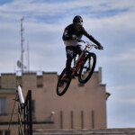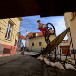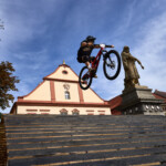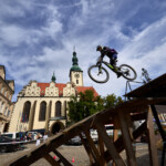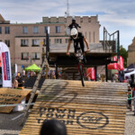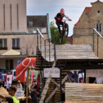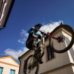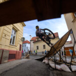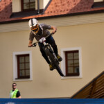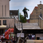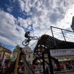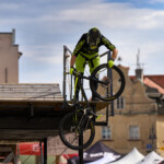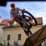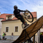 Start byl na Žižkově náměstí, na rampě, která byla tentokrát nižší, než ta vloni. Dál byla trať víceméně stejná, jako v minulém roce. Na náměstí Žižkův double, dřevěná klopenka, potom velký Step Up, Žaneda Van Jump… Tedy napadá mě jediná změna, přibyl Svatohorský Sharkfin. Potom už následovaly překážky jako v loňském roce, včetně Holečkova wallridu. Pozitivní bylo, že Filip ho letos projel naprosto suverénně a neskončil tentokrát na šití v nemocnici.