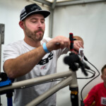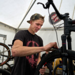 Jezdci a občas někteří s pomocí svých techniků tady ladili své biky. Zásadní bylo nastříkat pláště lepivou vrstvou, aby mělo kolo na naleštěných dlaždicích vůbec nějakou adhezi. Po riders meetingu začaly první tréninky. První půlhodinu vyhradili pořadatelé pro slopestyle. Potom, až do začátku závodu v jednu hodinu, byli na řadě závodníci ve sjezdu.