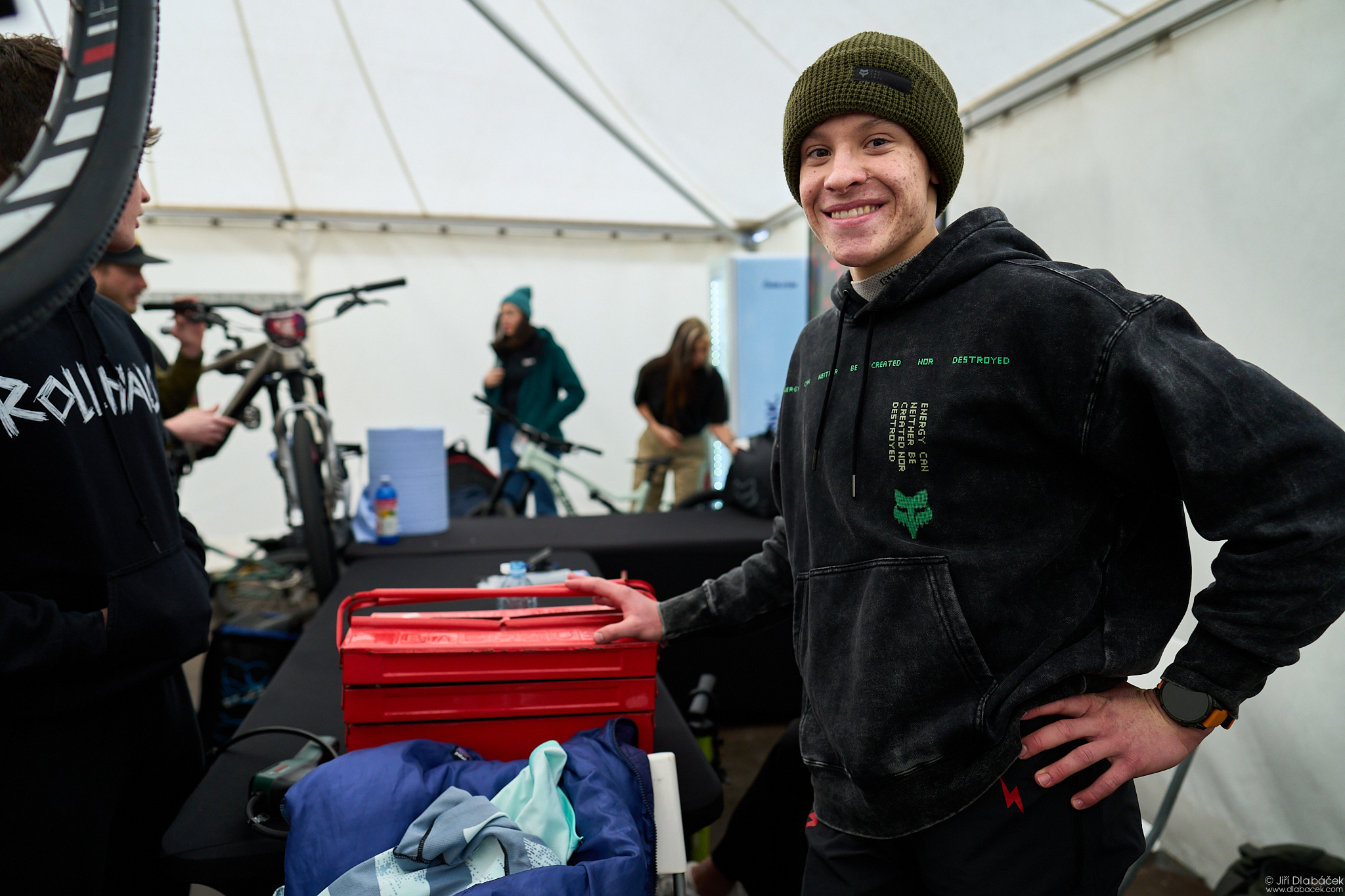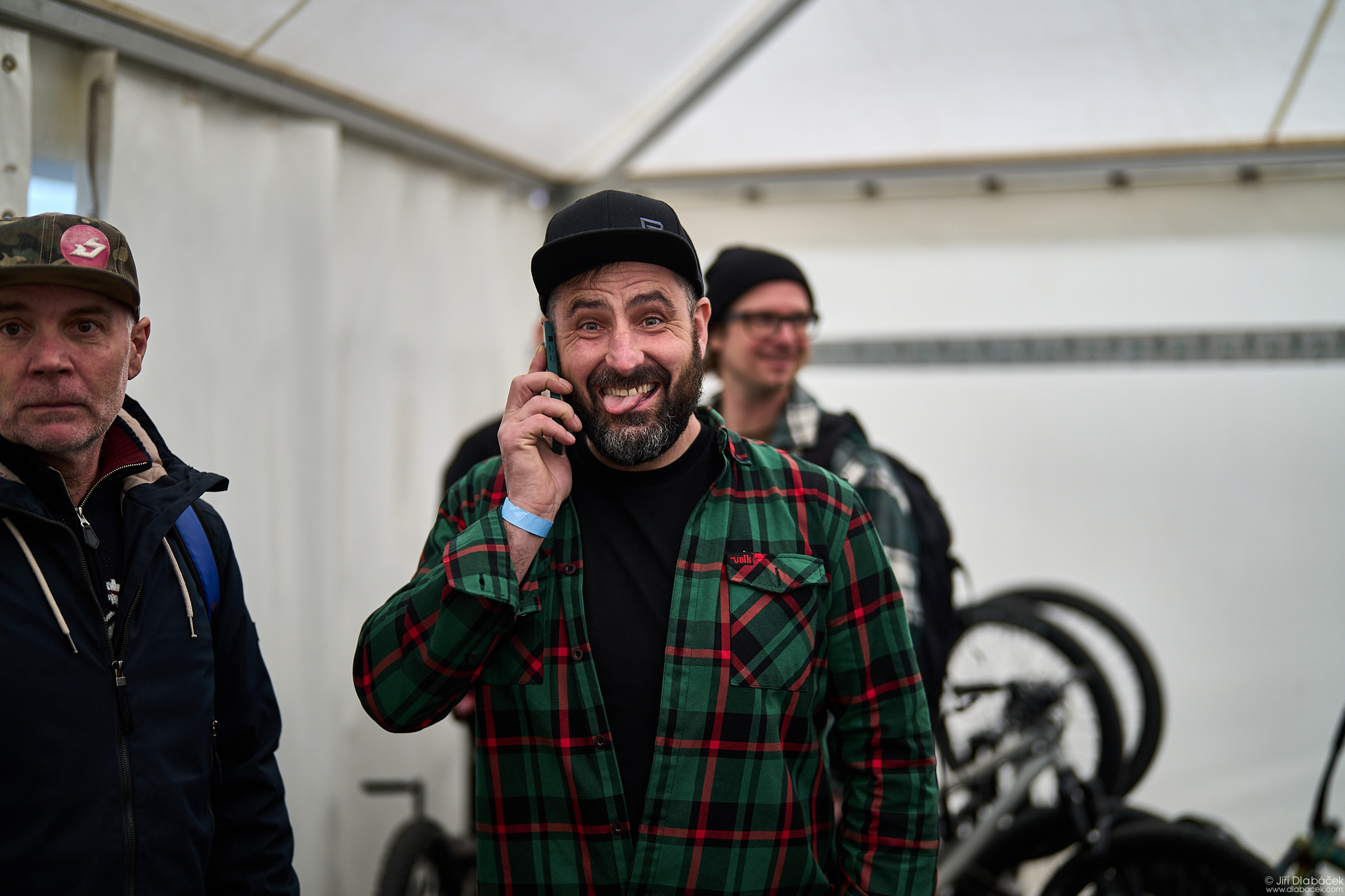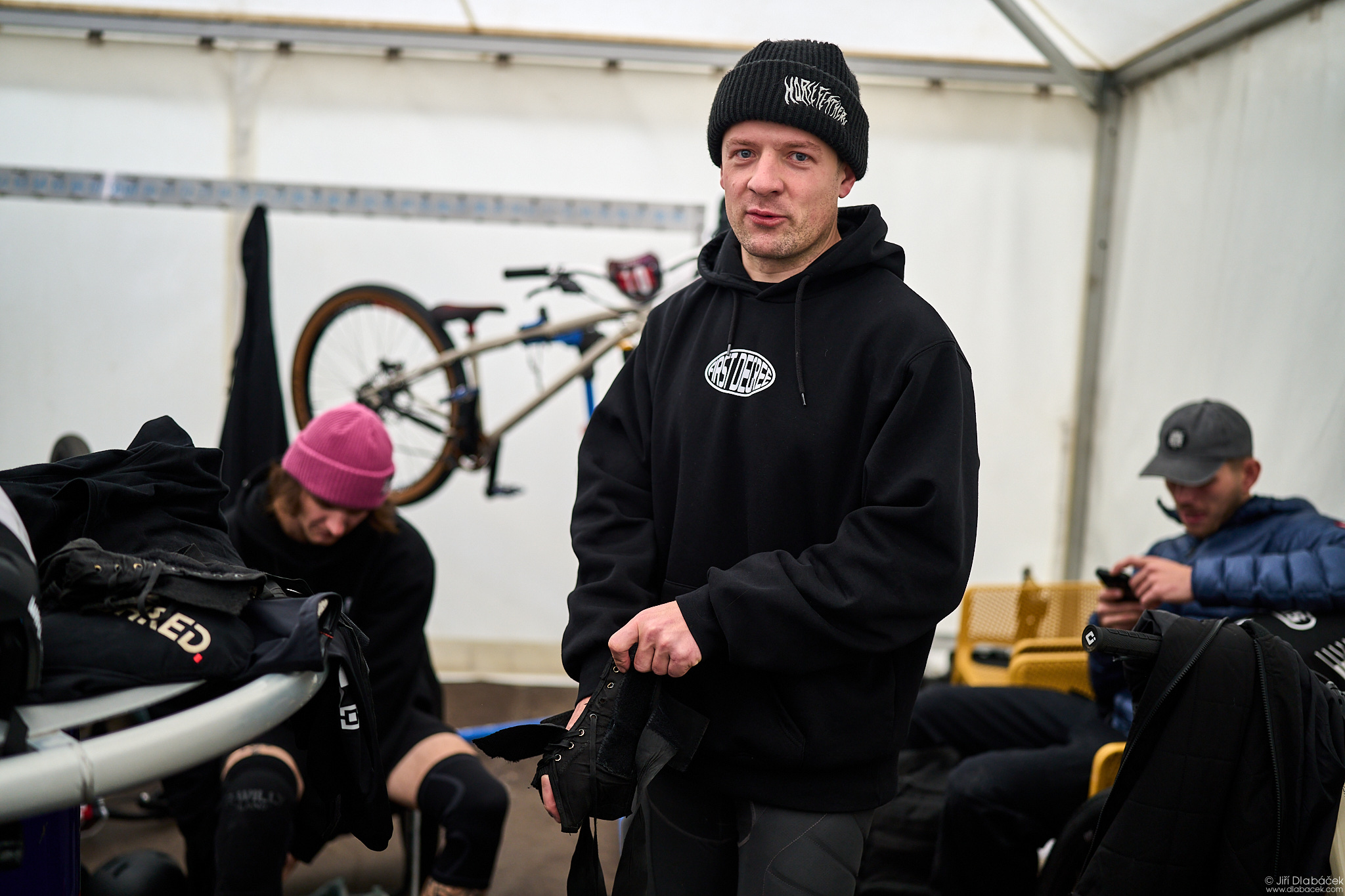 V sobotu 8. února nastal čas vyrazit směr obchoďák. Parkování v nejvyšším patře mělo výhodu, že odsud byla nejkratší cesta do zázemí závodníků. Hned u vchodu jsem potkal známé tváře: závodníka Jáchyma Vaňka s fotografem Jürgenem Westermeyerem. Společně jsme vyrazili do stanu se zázemím, který byl postavený na střeše obchodního centra. Potěšilo mě, kolik dalších známých lidí jsem tady po zimní pauze znovu uviděl.
