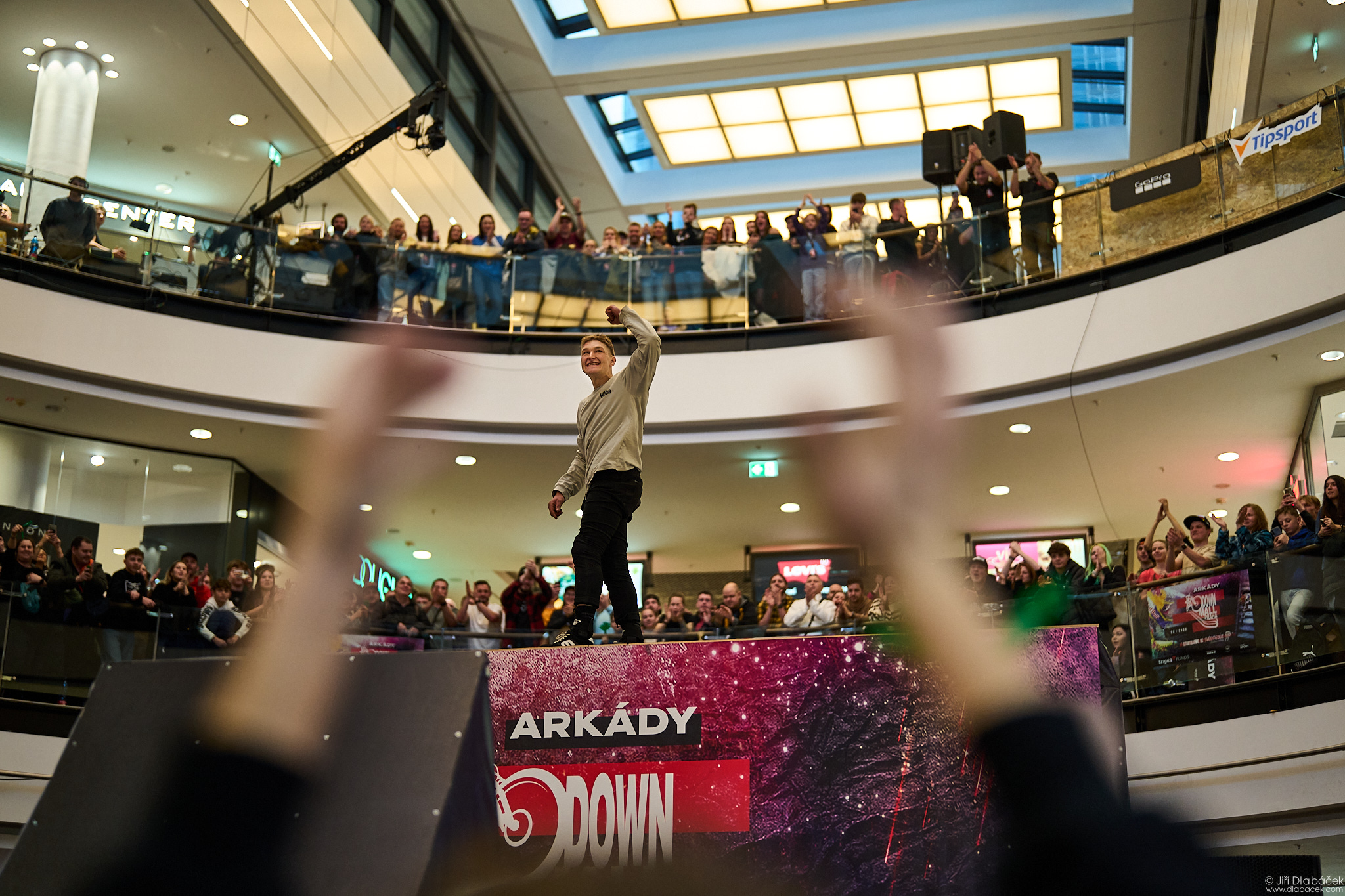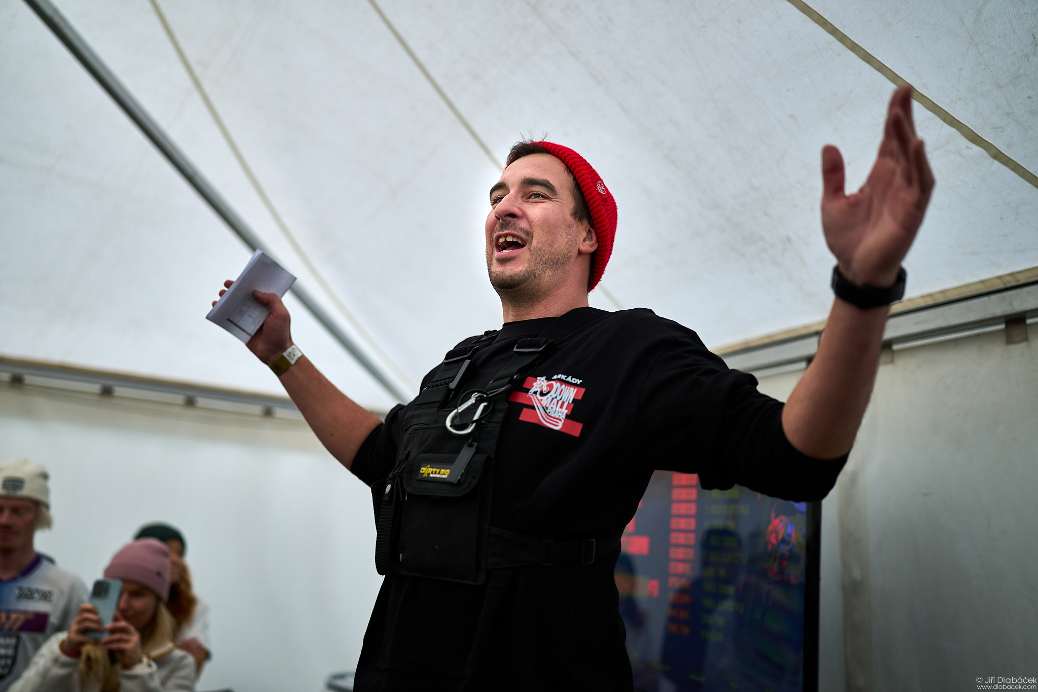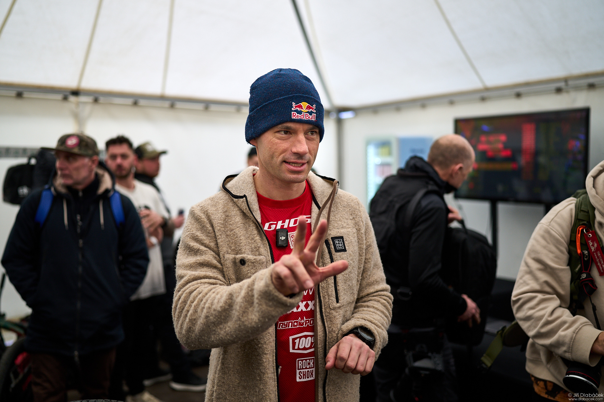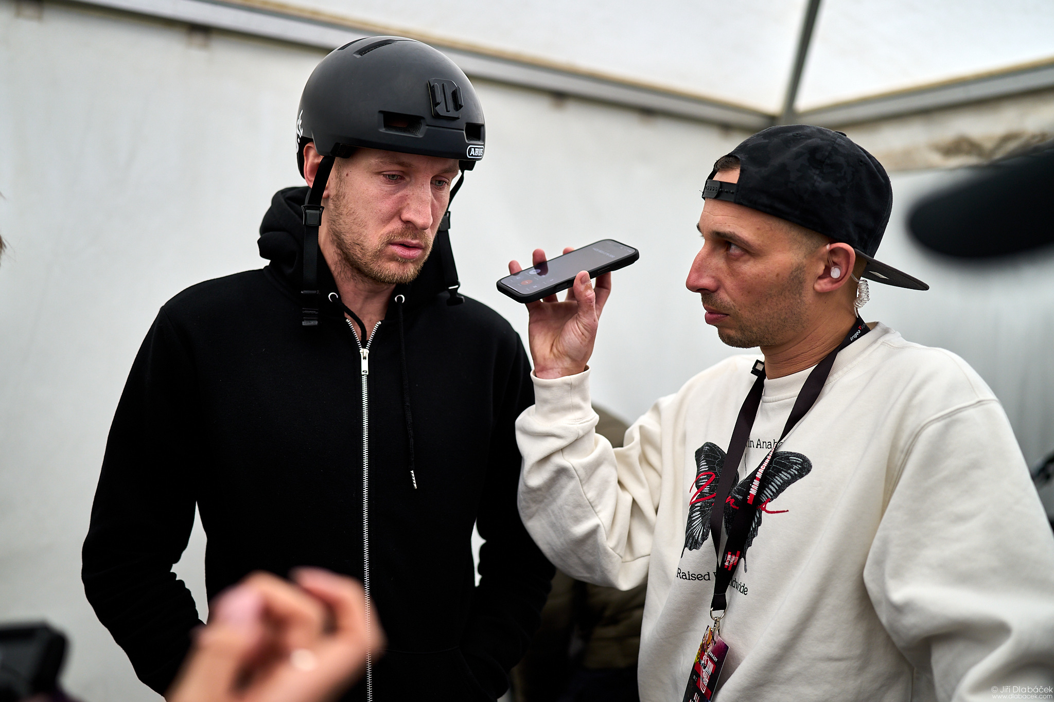 V sobotu 8. února nastal čas vyrazit směr obchoďák. Parkování v nejvyšším patře mělo výhodu, že odsud byla nejkratší cesta do zázemí závodníků. Hned u vchodu jsem potkal známé tváře: závodníka Jáchyma Vaňka s fotografem Jürgenem Westermeyerem. Společně jsme vyrazili do stanu se zázemím, který byl postavený na střeše obchodního centra. Potěšilo mě, kolik dalších známých lidí jsem tady po zimní pauze znovu uviděl.