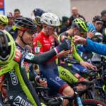 Jedna z nejzajímavějších částí na cyklokrosových závodech bývají schody. Změna ze šlapání na běh, k tomu velké převýšení a fyzické a emoční vypětí. Tohle všechno se odráží v obličejích závodníků., kteří je vybíhají. Prošel jsem skoro celou trať, ale nikde jsem žádné schody neobjevil. Pro jistotu jsem se ještě zeptal kluků z týmu ČEZ Tábor, kteří po odjetí svojí kategorie zůstali jako diváci. Ti mi potvrdili, že tady opravdu žádné nejsou. Jediné, co mi doporučili, byl prudký výběh v prostoru startu. Tady jsem narazil na nejstylovější fanoušky z celého závodu, které jsem viděl už v Táboře na Světovém poháru. Kvůli svému oblečení se nedali přehlédnou. Měli stylové oblečení a ještě stylovější pokrývky hlavy. Když se přiblížil závodník a spustili na nejstylovější řehtačky, musel ten randál probudit každého, včetně těch před kolapsem.