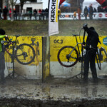 Na programu jsou jako první junioři, potom ženy a na závěr muži. Jelikož byla část trati za řekou, vzal jsem to opačným směrem, po jediném použitelném mostě. Na druhém břehu bylo depo. Závodníci tady měnili svoje kola obalená bahnem za čistá, aby na nich po pár set metrech jízdy byla nová vrstva bahna a trávy. Rčení o Sisyfovské práci tady bylo krásně viděl v praxi.