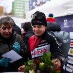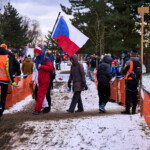 První startovala kategorie juniorů. Asi nikoho nepřekvapilo, že ji vyhrál Kryštof Bažant. Po odjetí prvního kategorie jsem si všimnul celého zájezdu fanoušků Emila Hekeleho. Zachránili mě od zmrznutí čajem se slivovicí. Já jsem jim na oplátku udělal pár společných fotek. Je ale čas se přemístit ke startu, kde budou za chvíli startovat další kategorie závodníků, nebo spíš závodnic.