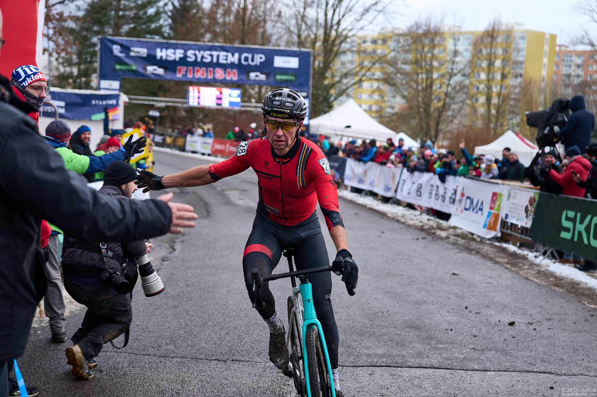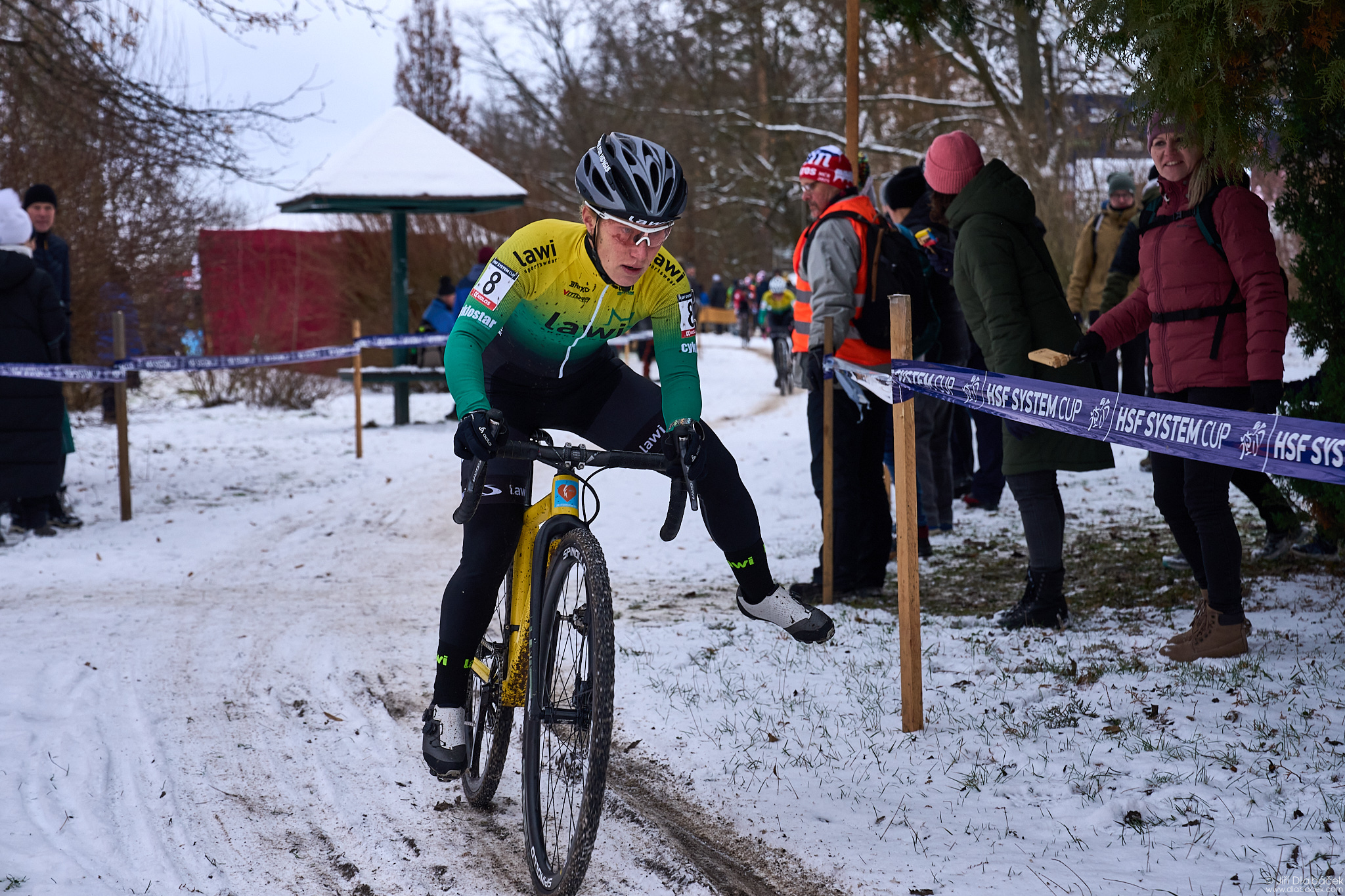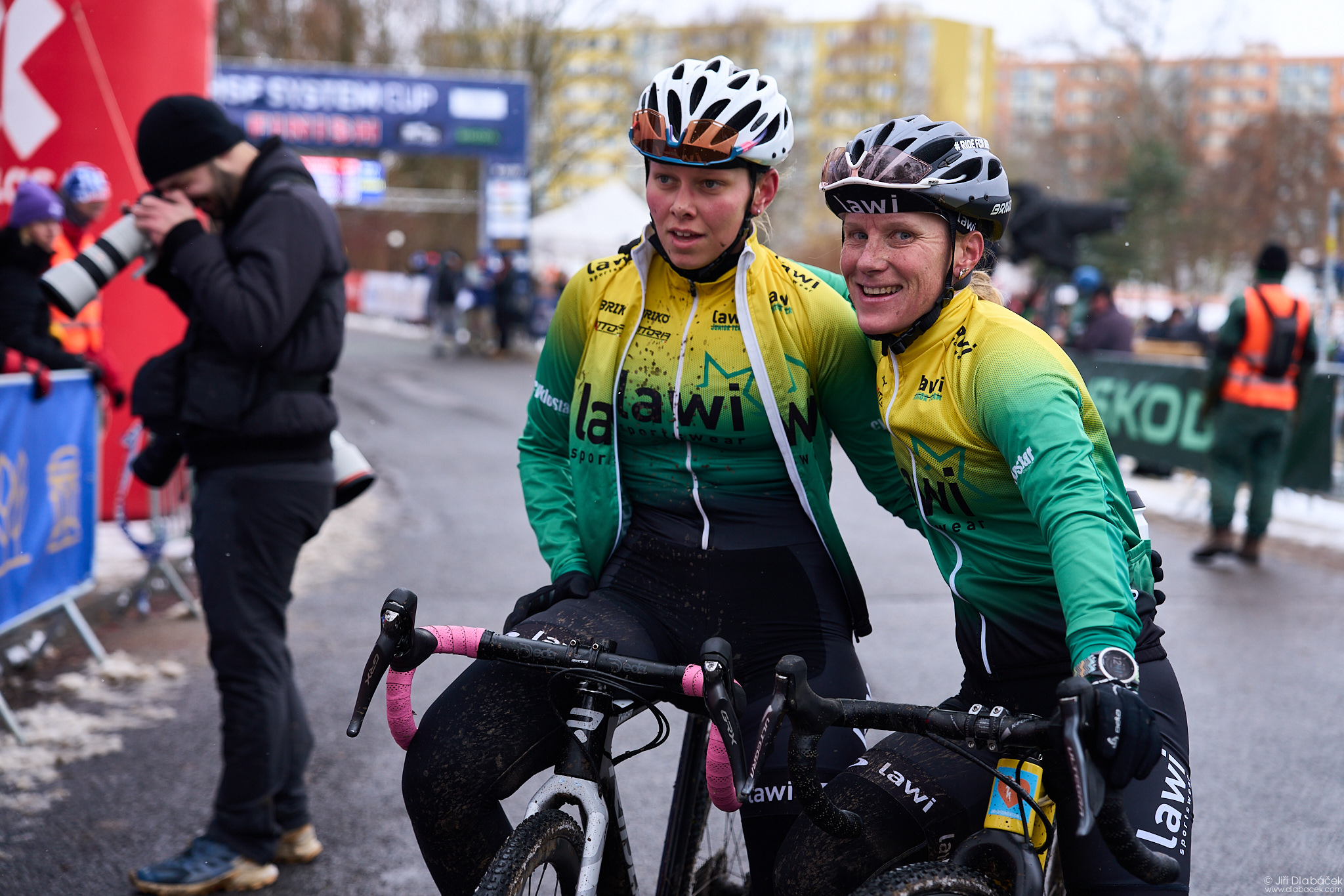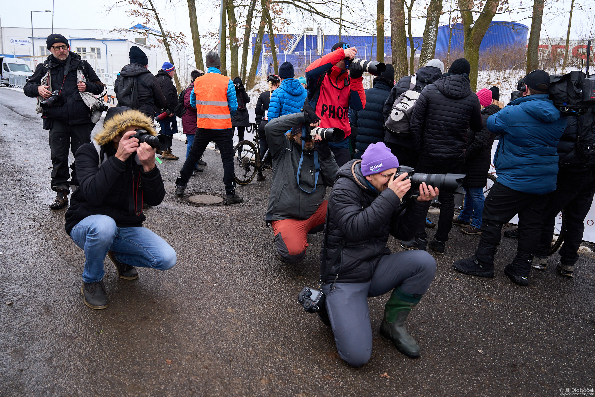 První startovala kategorie juniorů. Asi nikoho nepřekvapilo, že ji vyhrál Kryštof Bažant. Po odjetí prvního kategorie jsem si všimnul celého zájezdu fanoušků Emila Hekeleho. Zachránili mě od zmrznutí čajem se slivovicí. Já jsem jim na oplátku udělal pár společných fotek. Je ale čas se přemístit ke startu, kde budou za chvíli startovat další kategorie závodníků, nebo spíš závodnic.