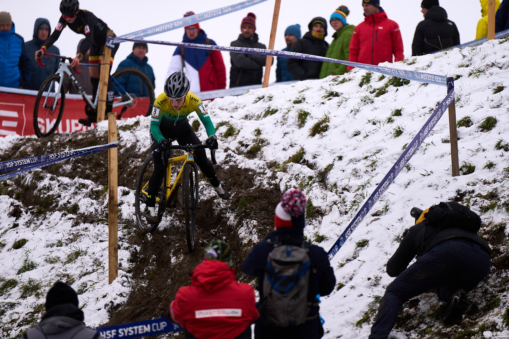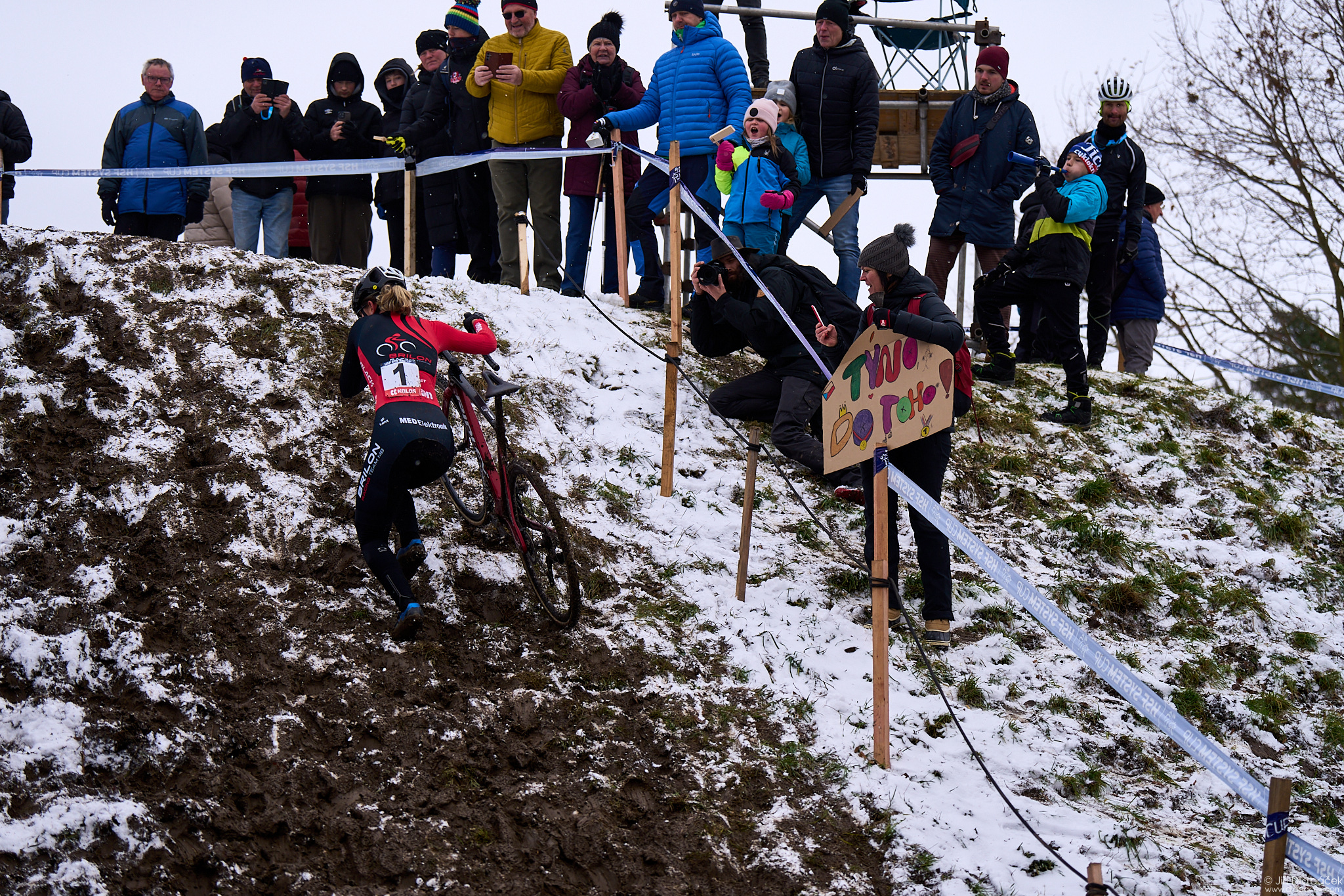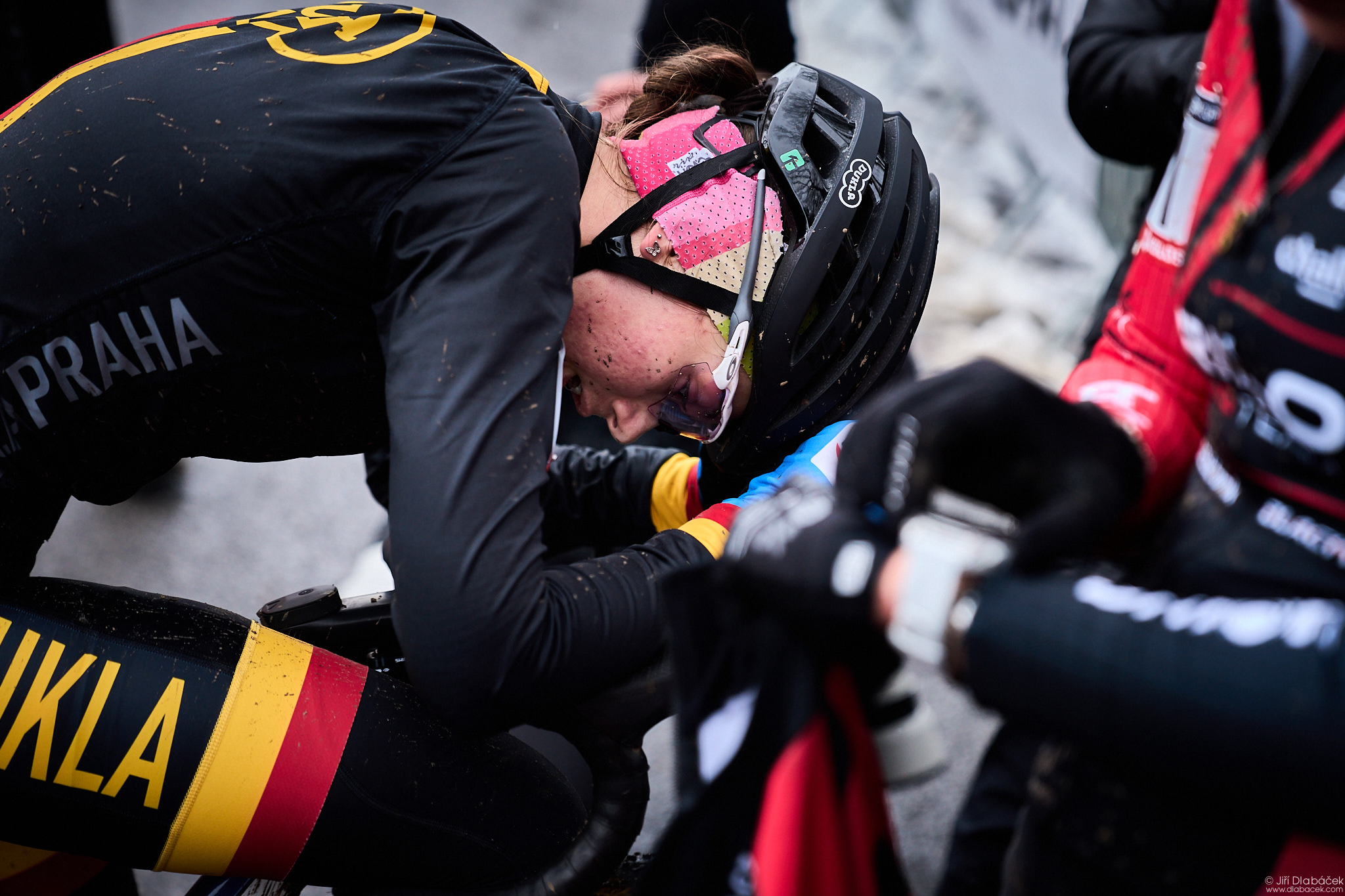 Nejdříve se na start postavily ženy a s časovým odstupem za nimi vyrazily juniorky. Ženskou kategorii vyhrála favoritka Kristýna Zemanová. A je opět čas se přesunout ke startu. Na závěr dne tady společně startují kategorie mužů a U23.