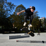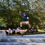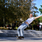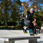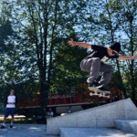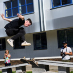 Po třech týdnech od poslední návštěvy na závodech Downtown série jsem se opět vypravil do Tábora. Slavnostní otevření bylo v sobotu 21.9.2024 od 12:00 hodin. Radši jsem na cestu vyrazil s lehkým předstihem, kdyby se vyskytla nějaká komplikace, nebo byl třeba problém s parkováním. Problém žádný nebyl a okolo zimního stadionu, kde se skatepark nachází bylo místa na parkování dost. Po žulové ploše se už proháněli skejťáci a ještě před slavnostním otevřením testovali překážky. Dost těžko se mi odhaduje, kterou překážku a na jakou stranu skejťák pojede. Před začátkem oficiálního programu jsem se proto domluvil s Kubou, že ještě uděláme nějaké fotky jak jezdí.