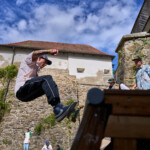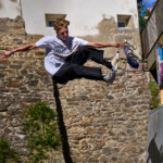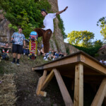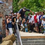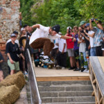 Poslední zastavení Wehrgang, bylo velice stísněné a část diváků se rozesadila na prudkých svazích okolo spotu. Najít tady rozumné místo na focení abych nepřekážel závodníků a ani divákům nebylo vůbec jednoduché. Místo pod mečem, který byl využitý jako rail vypadal jako super místo pro focení. Krátce potom jsem tady zalehnul a čekal na super záběry mě závodníci varovali, že to tady není úplně bezpečné. Sice nic nezakazovali, ale rozhodně doporučili se stáhnout do větší vzdálenosti.