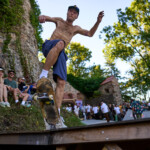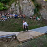 Teď už zbývalo jenom vyběhnout na nádvoří s hvězdárnou, kde byla postavena mini rampa, pro každého, kdo si to chtěl vyzkoušet. Po zahřívacím kole focení jsem zjistil, že všichni někam zmizeli. Závod začal. Závodníci a diváci se přemístili na prvním spot v Bärengraben. kde byla instalovaná rampa pro první závod. Nebyl jsem tady jediný fotograf. Překvapil mě majitel Leicy, nebo třeba kluk, který fotil středoformátem Zenza Bronica na film.