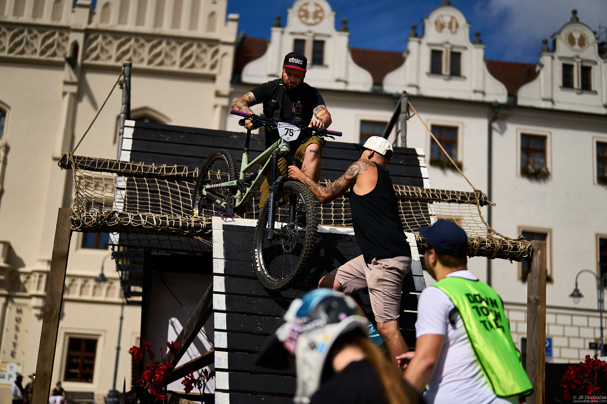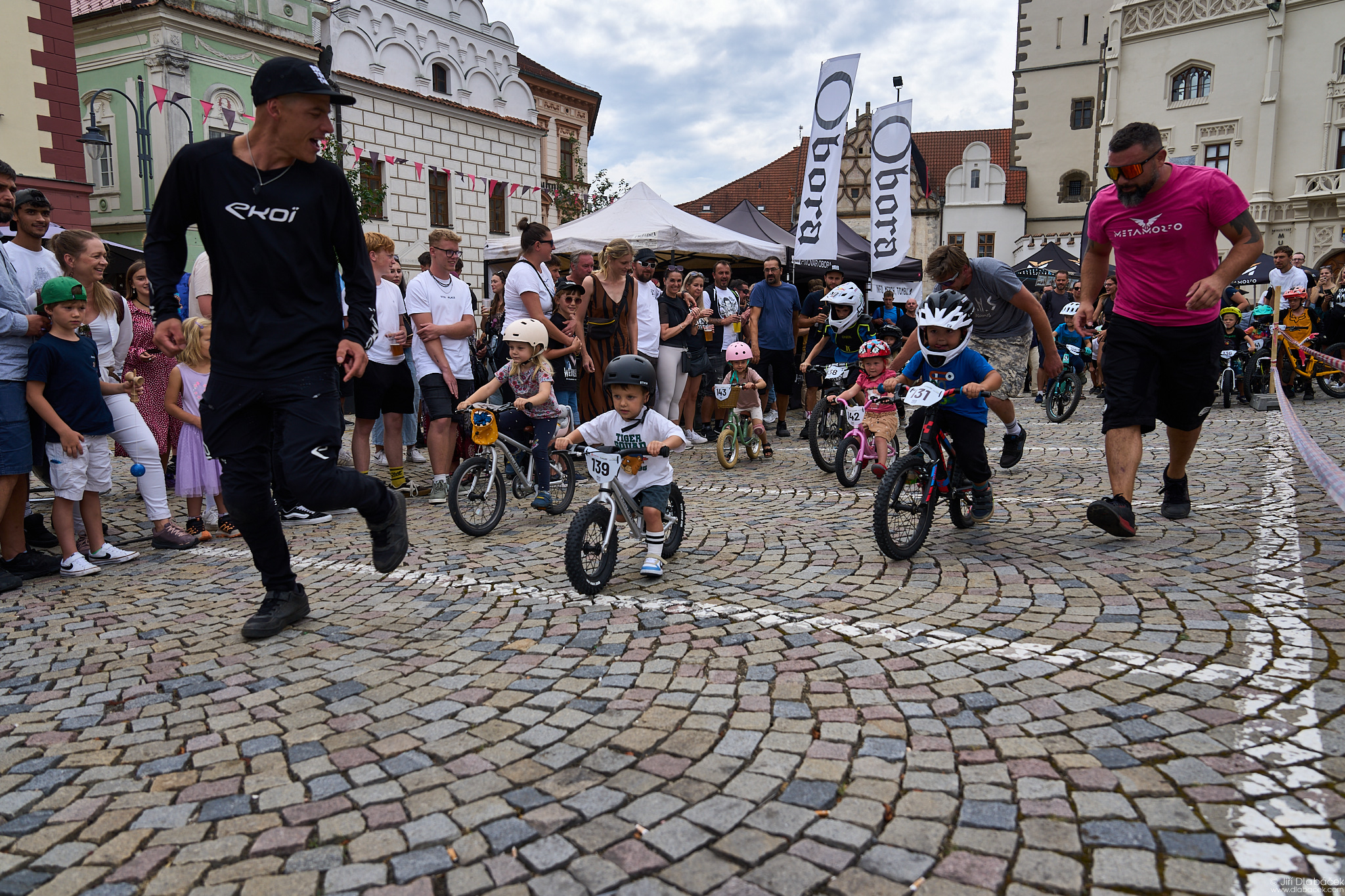 První kolo závodu je u konce. Vracím se zpět na hlavní náměstí. Tady za chvíli začne dětský závod. Podle návalu dětí a jejich rodičů na startu je o budoucnost české bajkové scény postaráno. Někteří z prcků snad začali dřív jezdit na kole než chodit. Po rozdání cen nejmenším závodníkům pořadatelé zahajují druhé kolo závodu. Jezdci se teď budou snažit vylepšit své časy z předchozího kola. Tentokrát začínají závodníci s nejpomalejším časem jako první. Procházím si znovu trať a hledám nejlepší záběry. Znovu zkouším Big Air. Tentokrát z nadhledu, z hradeb. Ale ani odsud to není úplně ono. Jako poslední projíždí Michal Prokop. Teď je závod definitivně u konce.
