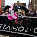 Brzo ráno bylo náměstí v Táboře téměř poloprázdné. Pomalu se začínají scházet závodníci k registraci, pořadatelé dávají poslední instrukce pískačům. Na náměstí jsem potkal Pavlu Balíkovou, jak si zrovna čistí kolo od vyšlápnutého ho..a. Odskočila si na otočku z Morávky, kde najížděla erzety a večer se tam musí vrátit na závod. Docela náročný víkend. V devět začíná povinná pěší prohlídka tratě a vzápětí trénink, který je také povinný. Lehké komplikace se objevují jenom na velkém step upu na náměstí. Někteří závodníci nemají dostatečnou rychlost po výjezdu z wallridu a místo na vrcholu překážky končí v síti před překážkou. Pořadatelé jsou ve střehu a každému, kdo skončil v síti pomáhají dolů.