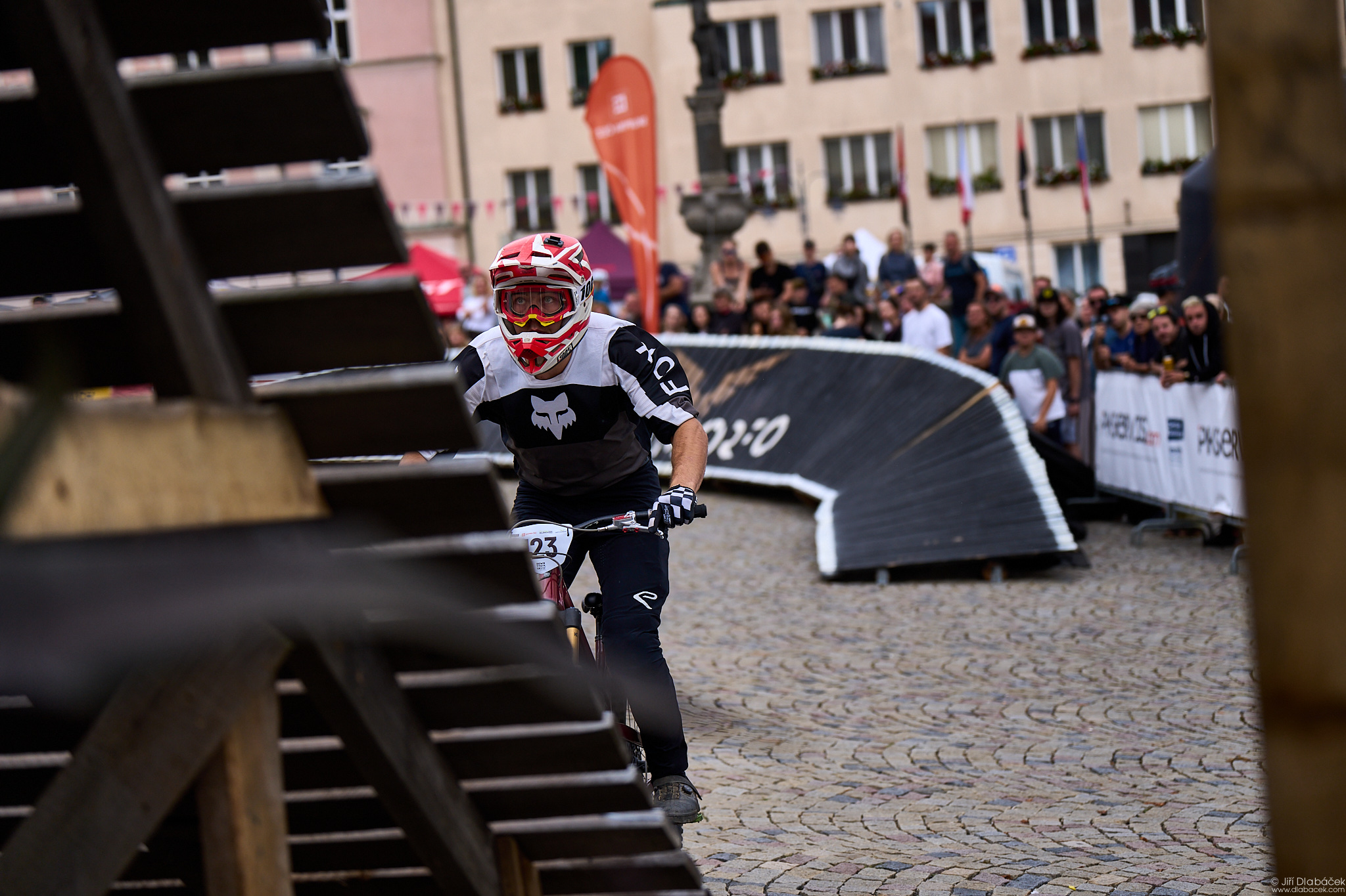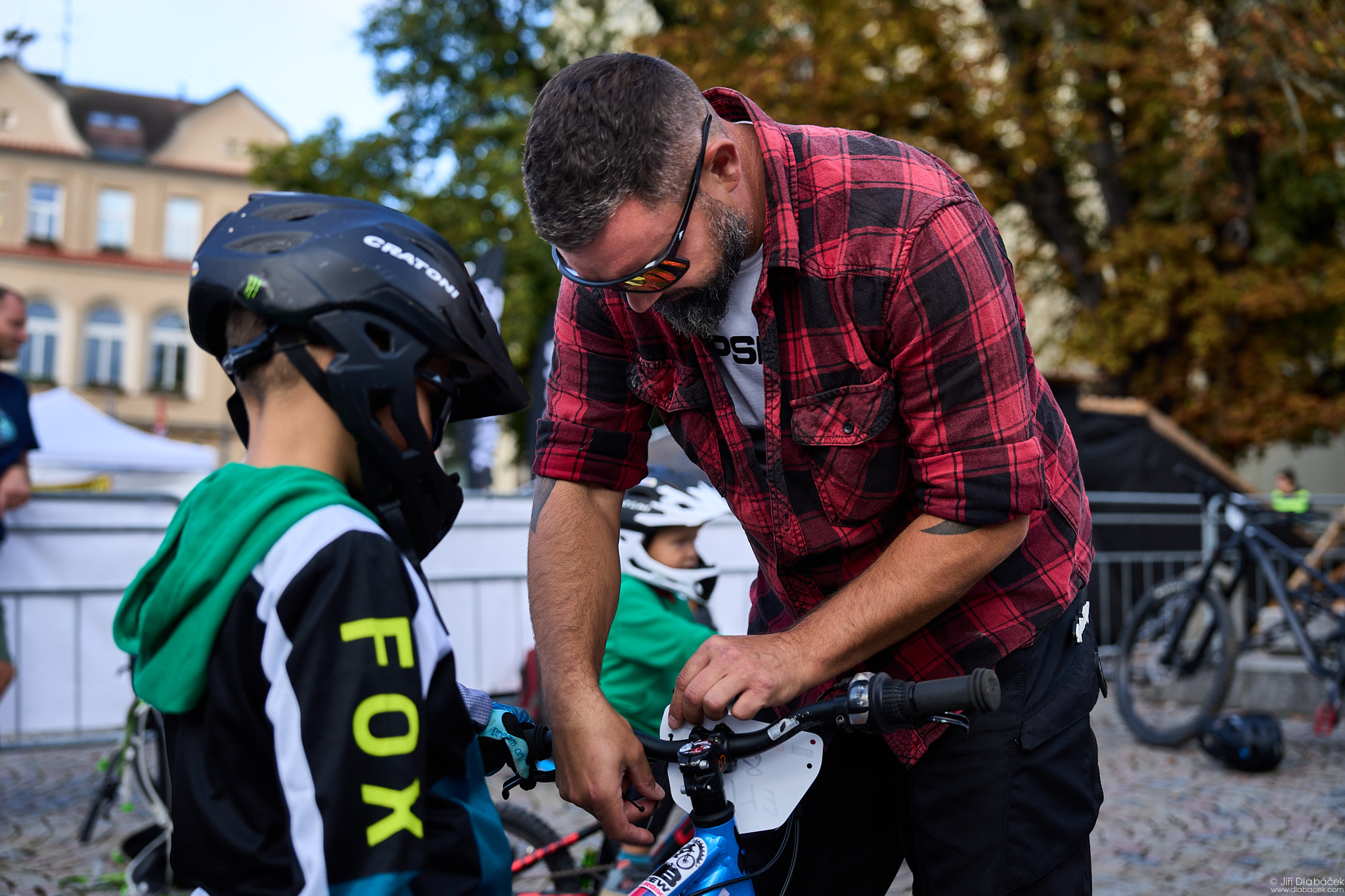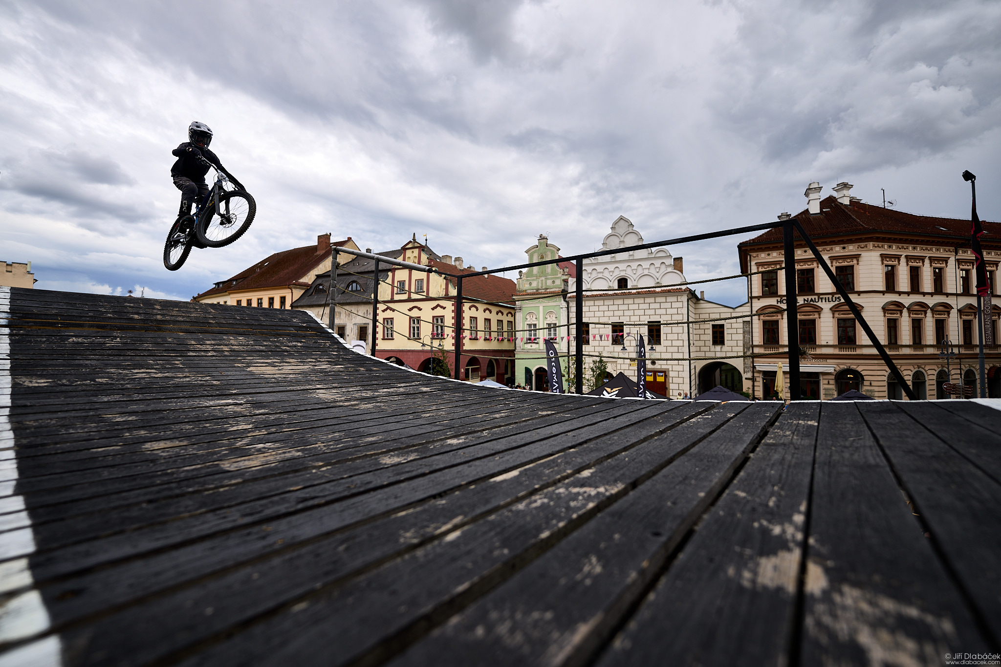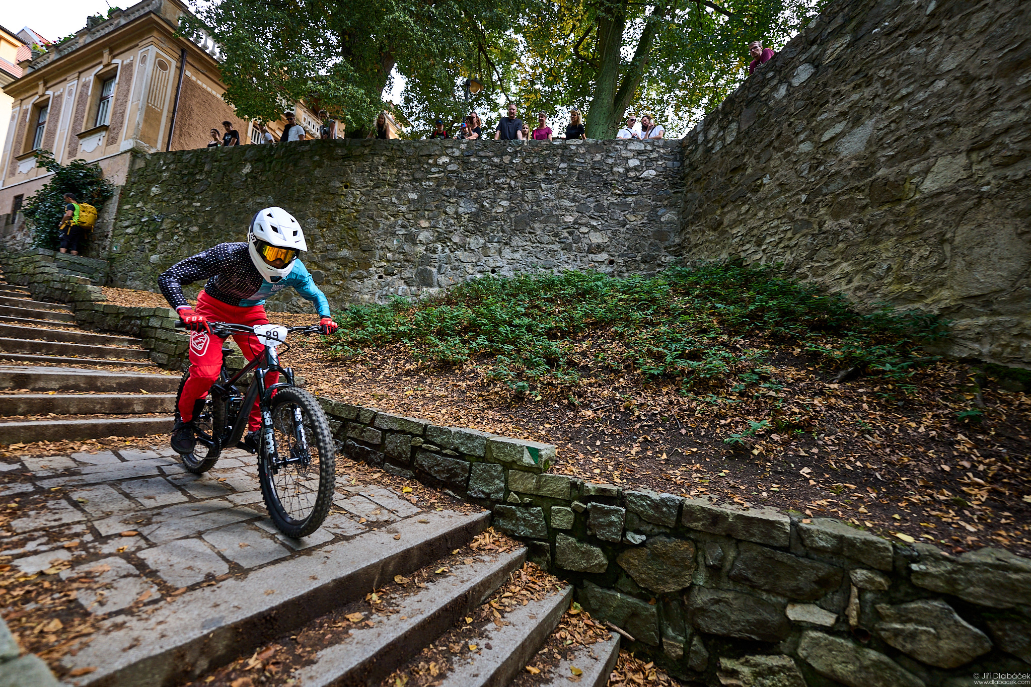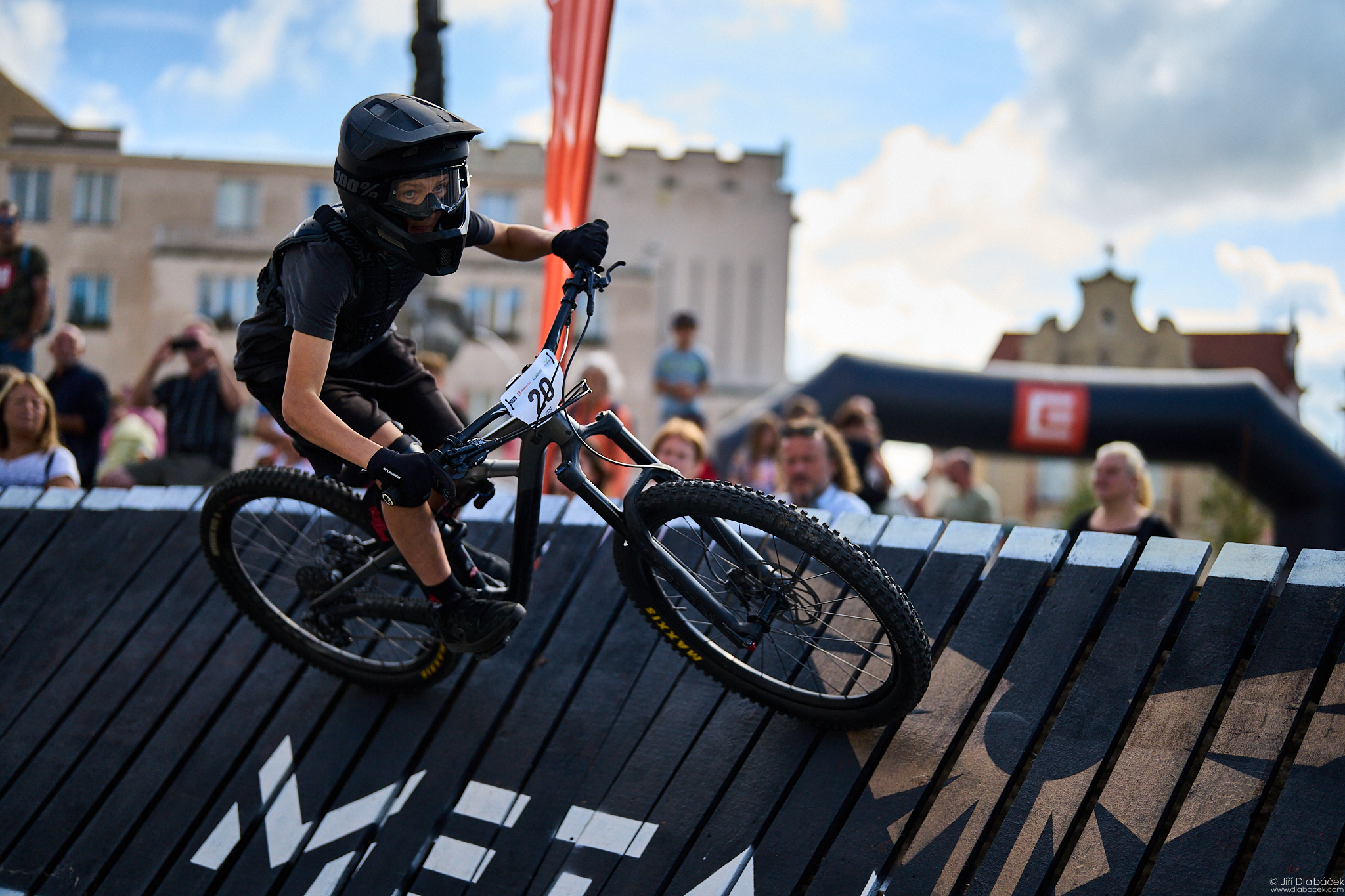 První kolo závodu je u konce. Vracím se zpět na hlavní náměstí. Tady za chvíli začne dětský závod. Podle návalu dětí a jejich rodičů na startu je o budoucnost české bajkové scény postaráno. Někteří z prcků snad začali dřív jezdit na kole než chodit. Po rozdání cen nejmenším závodníkům pořadatelé zahajují druhé kolo závodu. Jezdci se teď budou snažit vylepšit své časy z předchozího kola. Tentokrát začínají závodníci s nejpomalejším časem jako první. Procházím si znovu trať a hledám nejlepší záběry. Znovu zkouším Big Air. Tentokrát z nadhledu, z hradeb. Ale ani odsud to není úplně ono. Jako poslední projíždí Michal Prokop. Teď je závod definitivně u konce.