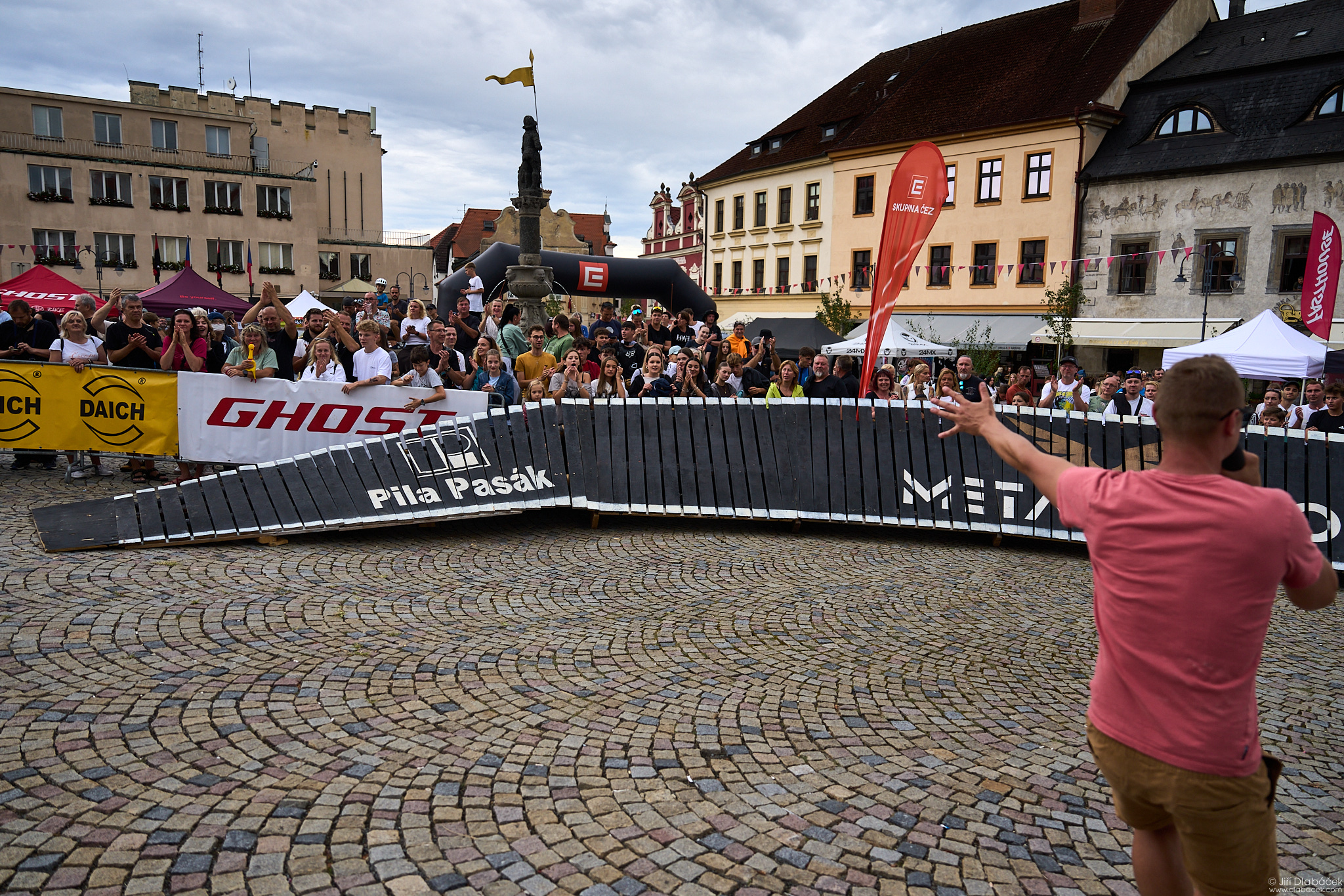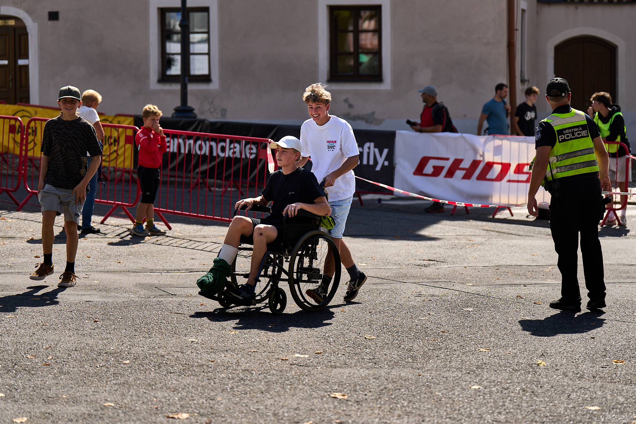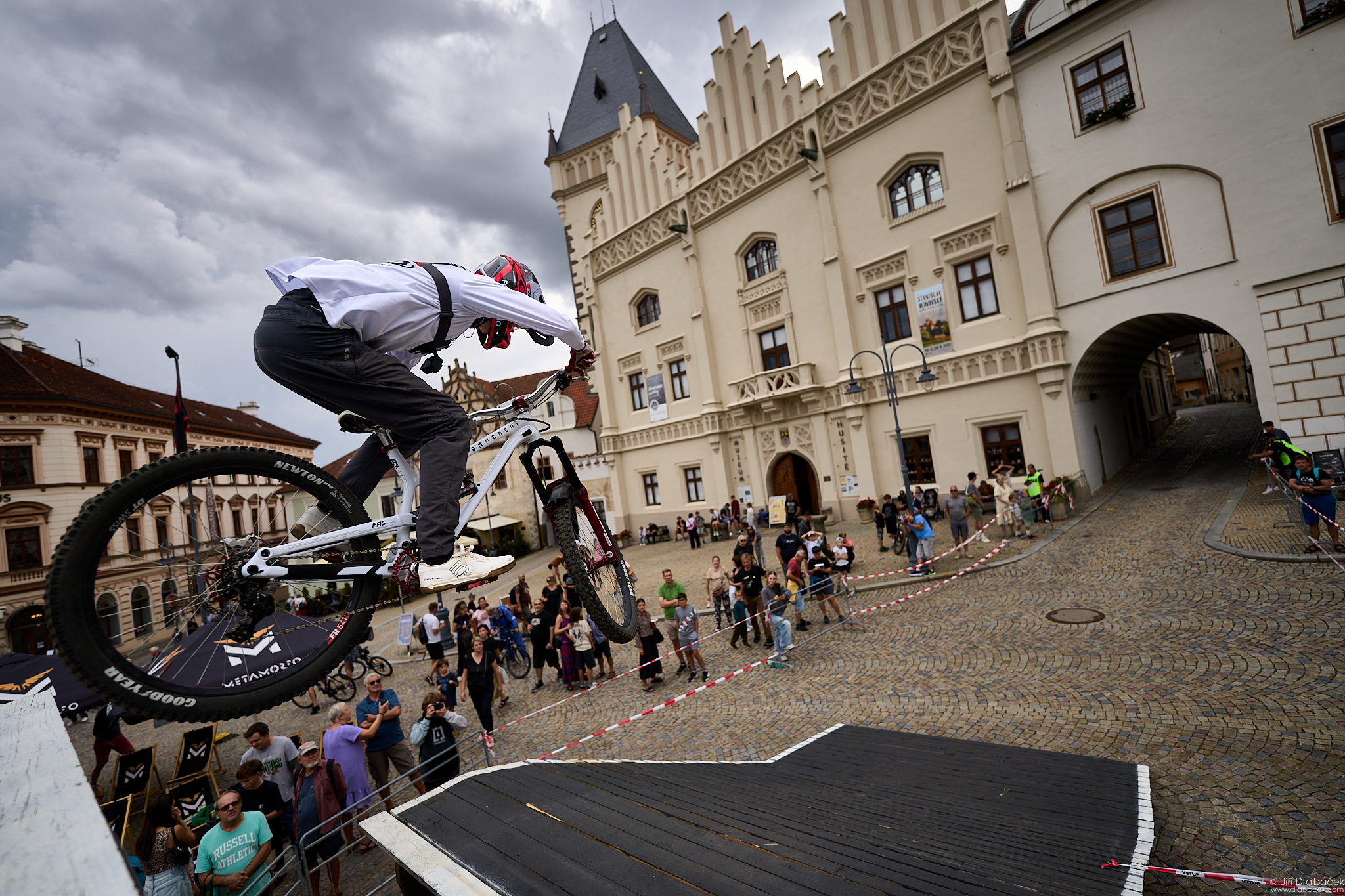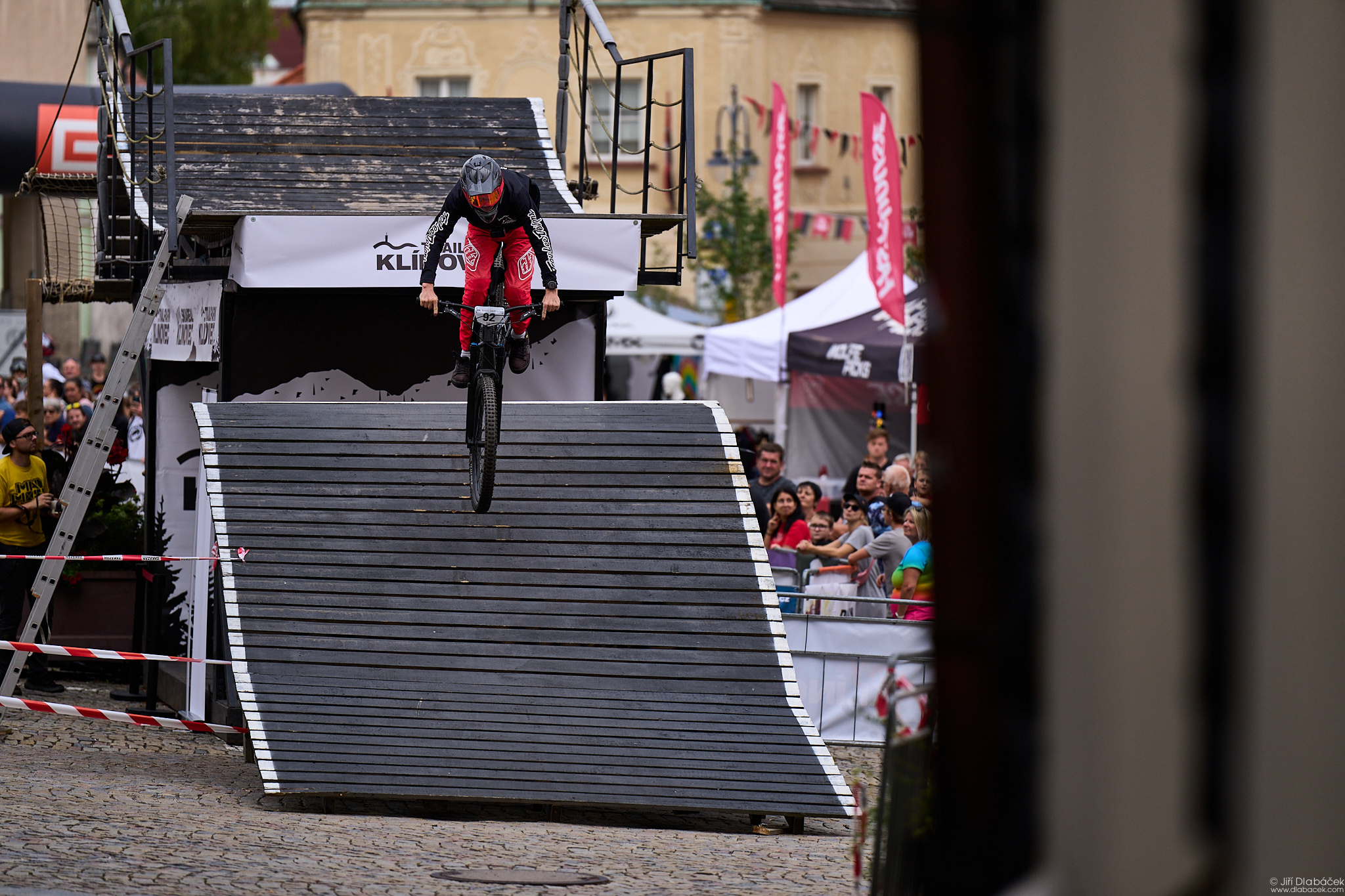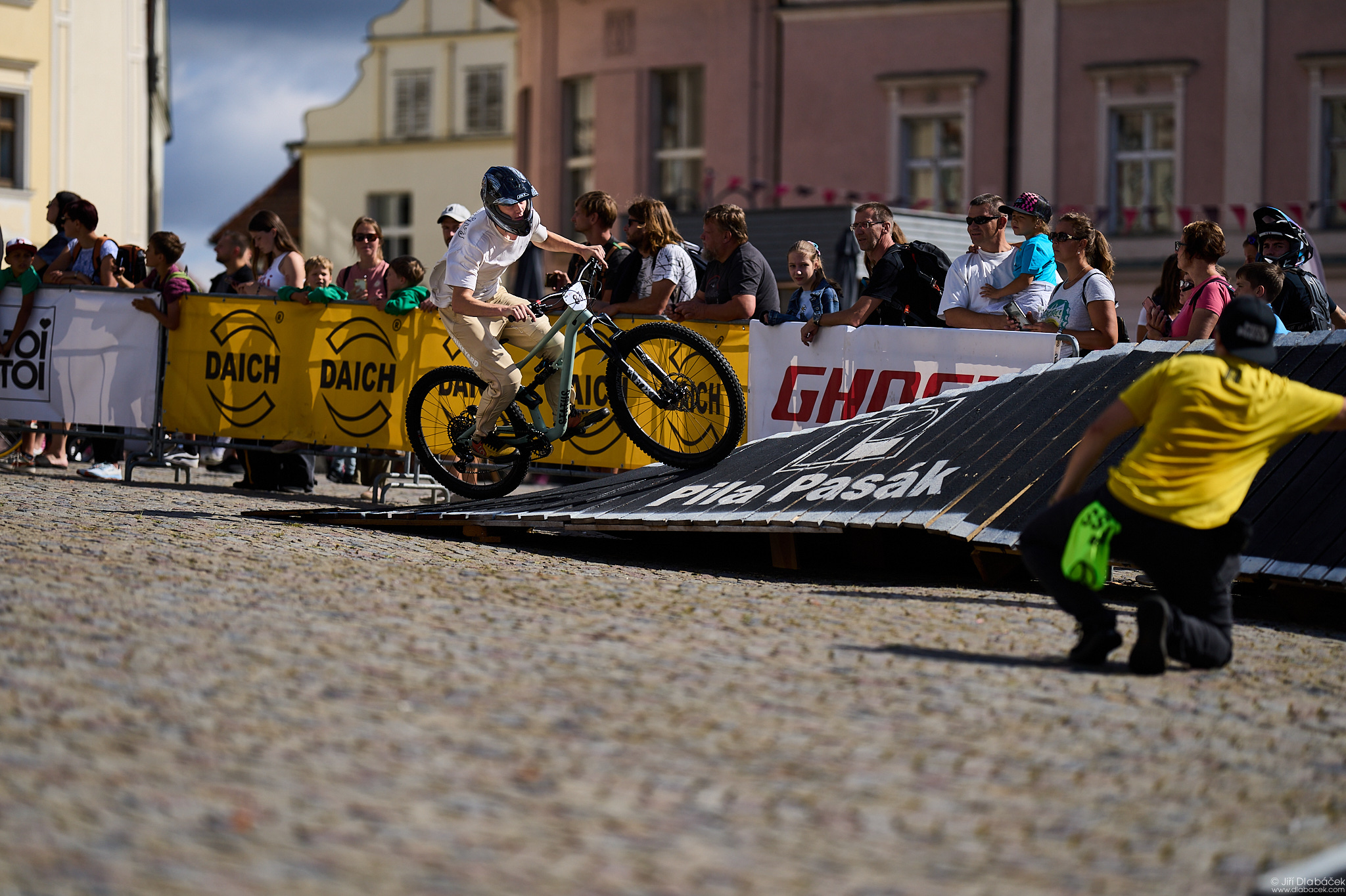 První kolo závodu je u konce. Vracím se zpět na hlavní náměstí. Tady za chvíli začne dětský závod. Podle návalu dětí a jejich rodičů na startu je o budoucnost české bajkové scény postaráno. Někteří z prcků snad začali dřív jezdit na kole než chodit. Po rozdání cen nejmenším závodníkům pořadatelé zahajují druhé kolo závodu. Jezdci se teď budou snažit vylepšit své časy z předchozího kola. Tentokrát začínají závodníci s nejpomalejším časem jako první. Procházím si znovu trať a hledám nejlepší záběry. Znovu zkouším Big Air. Tentokrát z nadhledu, z hradeb. Ale ani odsud to není úplně ono. Jako poslední projíždí Michal Prokop. Teď je závod definitivně u konce.