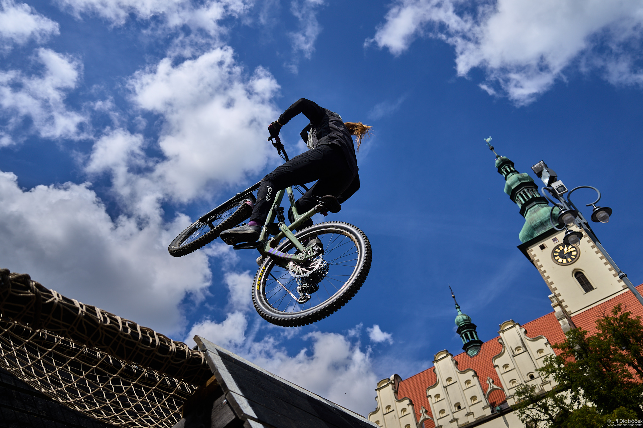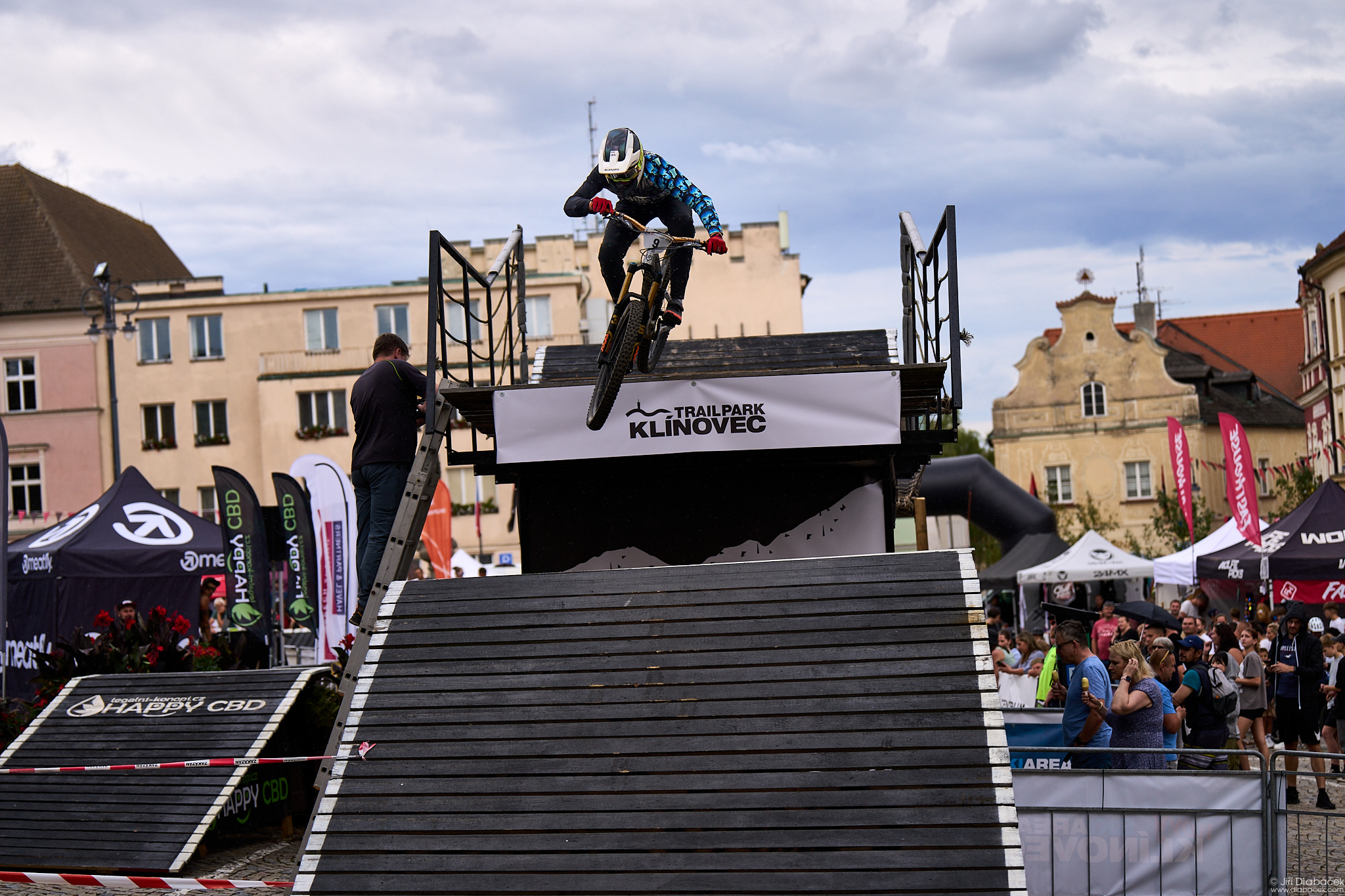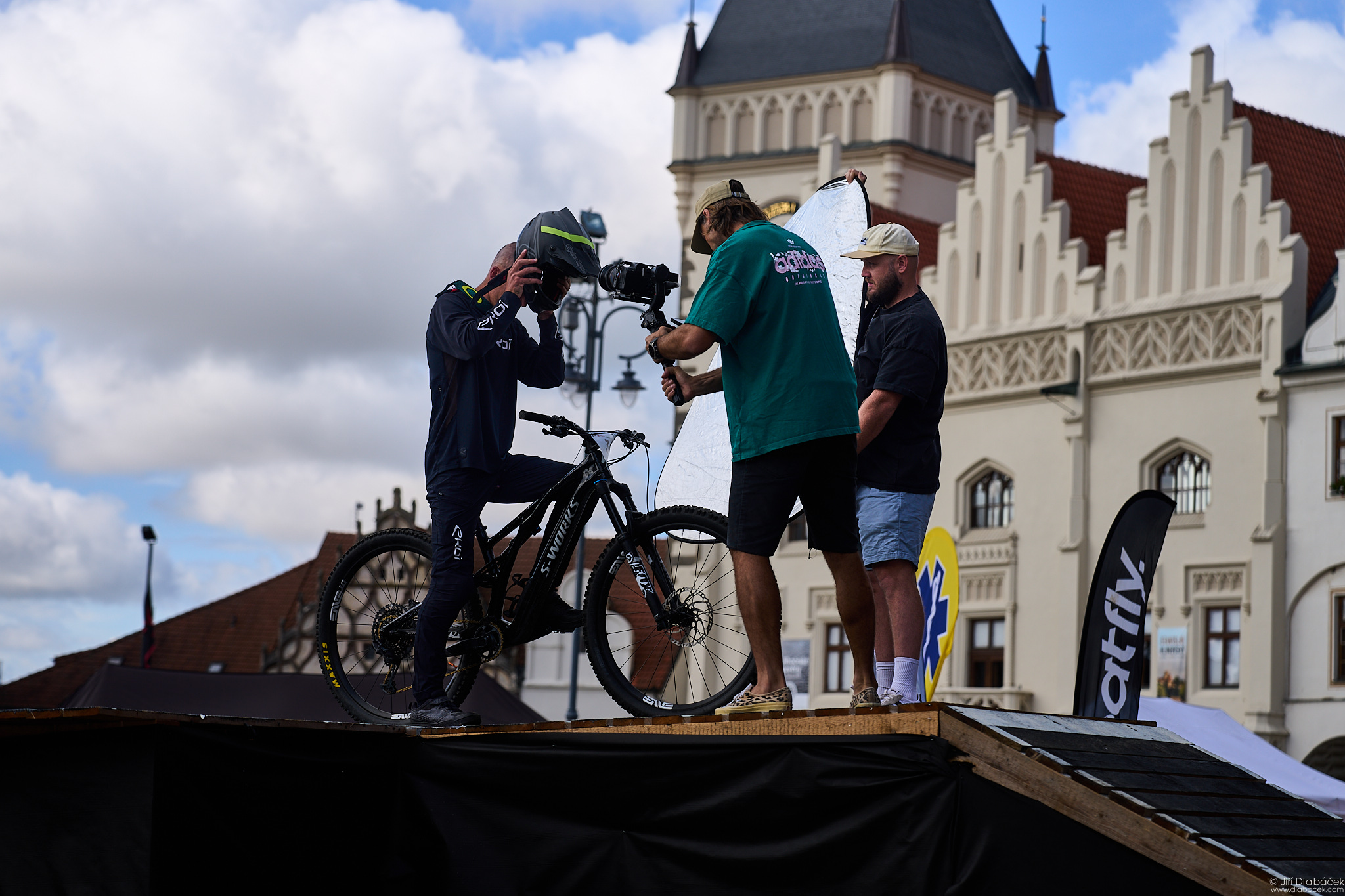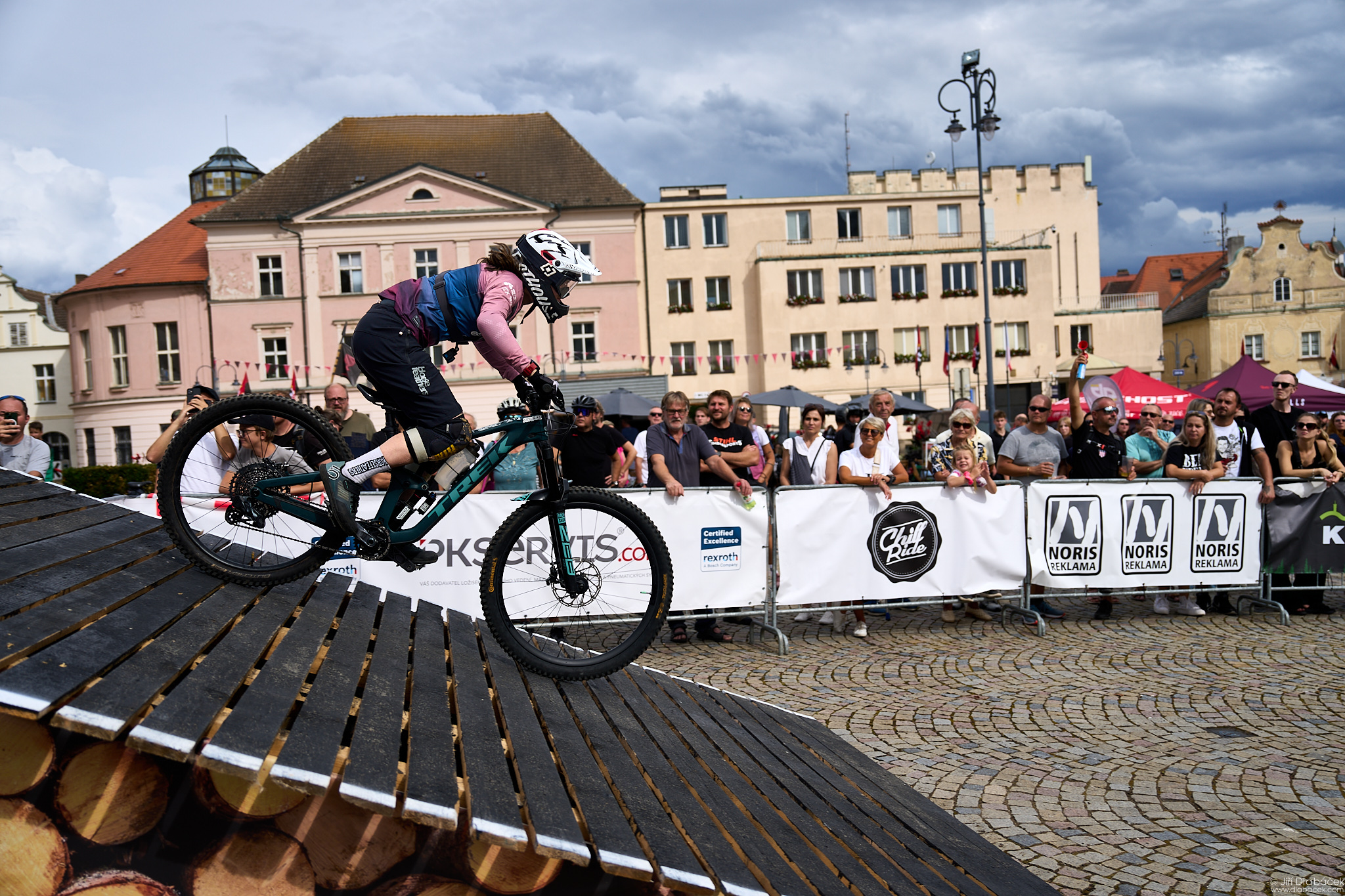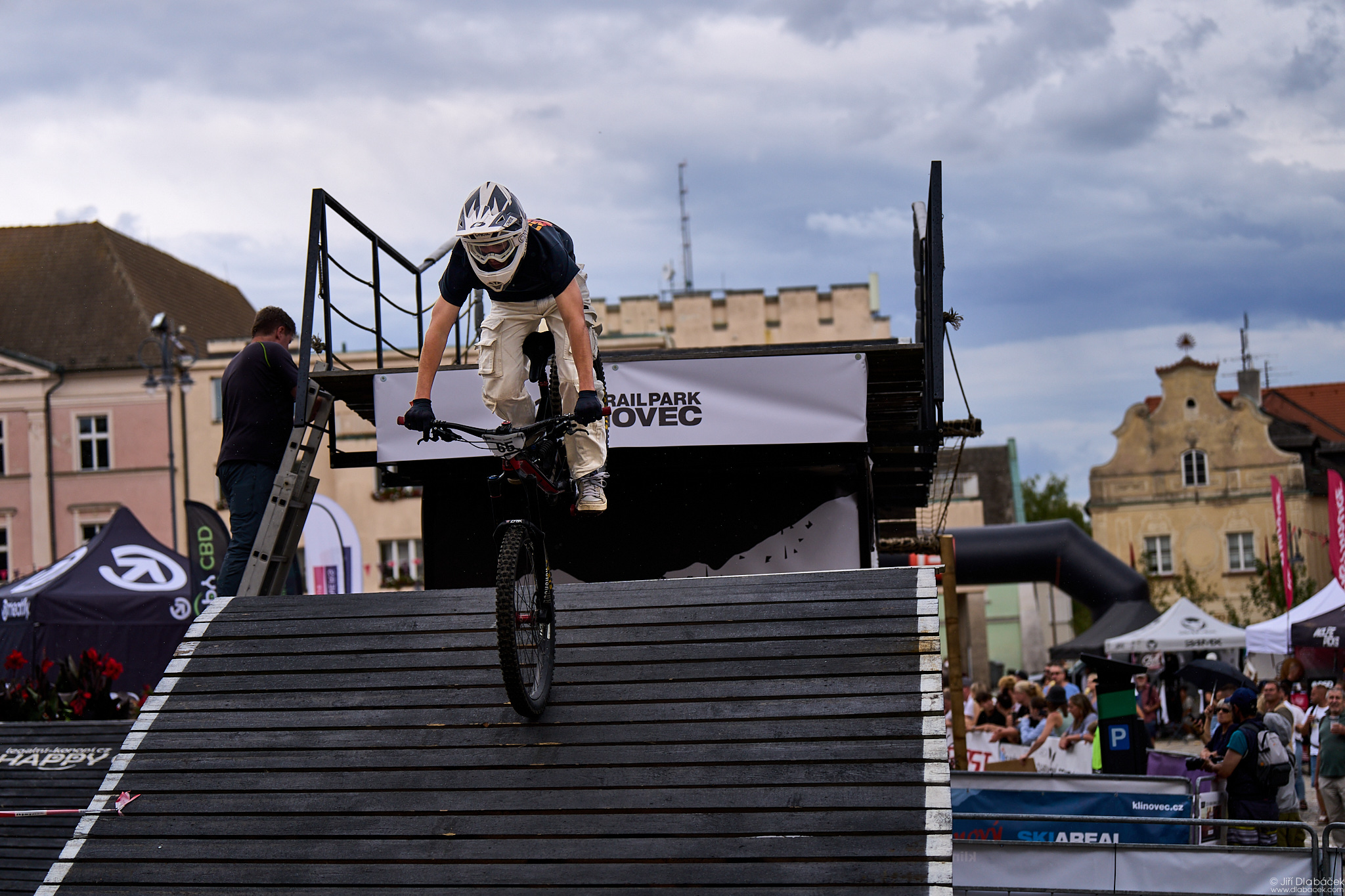 První kolo závodu je u konce. Vracím se zpět na hlavní náměstí. Tady za chvíli začne dětský závod. Podle návalu dětí a jejich rodičů na startu je o budoucnost české bajkové scény postaráno. Někteří z prcků snad začali dřív jezdit na kole než chodit. Po rozdání cen nejmenším závodníkům pořadatelé zahajují druhé kolo závodu. Jezdci se teď budou snažit vylepšit své časy z předchozího kola. Tentokrát začínají závodníci s nejpomalejším časem jako první. Procházím si znovu trať a hledám nejlepší záběry. Znovu zkouším Big Air. Tentokrát z nadhledu, z hradeb. Ale ani odsud to není úplně ono. Jako poslední projíždí Michal Prokop. Teď je závod definitivně u konce.