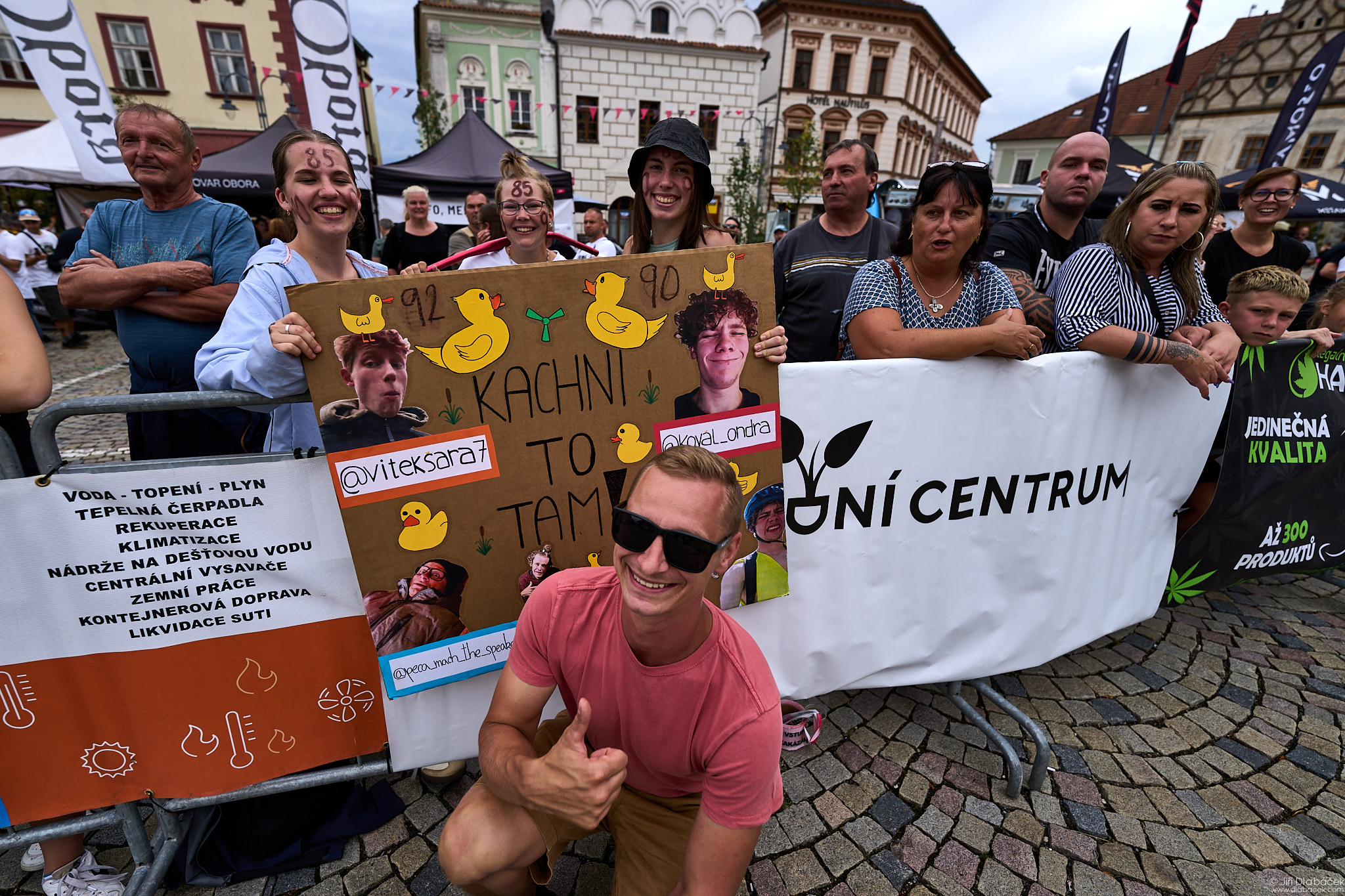 Pospíchám zpátky na hlavní náměstí. Za chvíli tady závodníci pojedou vláček. Vláček nejeli jenom jednou, ale pro velký úspěch si ho jezdci ještě zopakovali. Někteří byli k nezastavení, takže by v Táboře jezdili nejspíš až do rána.