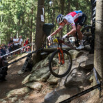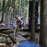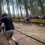Konečně se blíží start mužské kategorie. Běžím rovnou do lesa, abych zaujal lepší pozice u pásky. Když mi přišel předchozí závod žen sakra rychlý, tak tahle kategorie byla ještě neskutečně rychlejší. Do kopce dupou závodníci jako na silničce. Jízda dolů mi rychlostí a náročností připomíná spíš downhill. Atmosféra od nadšených diváků úžasná. Kdykoliv projede náš Ondřej Cink. tak je nadšení fanoušků skoro nekonečné.