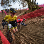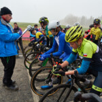 Po sobotním dešti je tady rozmáčený terén a trať bude pro závodníky hodně náročná. Startování probíhá podobným stylem jako v Adamově. Nejdřív po skupinách všechny ženy a junioři a potom obdobně zbytek mužů. Hned při startu první skupiny jsem pozapomněl, že další věková kategorie odstartuje vzápětí, takže mě startér odhání pryč ze závodní dráhy.
