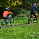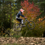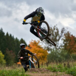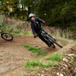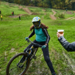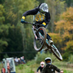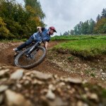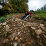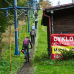 Pro vývoz nahoru je tady pro závodníky poma. Necyklisti musí na start pěšky. Dolů vede několik různě se klikatících se lajn a jsem kvůli tomu ze začátku dost zmatený. Špatně odhaduji trasu, kterou se závodník vydá. Když si nasadím objektiv pro focení zblízka, jezdec to vezme jinudy než předpokládám a mine mě o několik metrů. Naštěstí mi Kryštof Kamenský, který se objevil nahoře ukázal, kudy povede závod. Na zbývajících tratích řádí ti, co už mají odjeto, nebo teprve čekají na start..