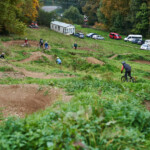 Nevím jak ostatním, ale mě se změna termínu závodu kvůli špatnému počasí hodila. Na stejný víkend, jako Velhartický Bike Jam totiž připadla i soukromá akce v Holýšově, na kterou se taky chystám. Bikepark mám skoro po cestě. Odbočka k areálu je tak nenápadná, že jsem ji trefil až napodruhé. Na doporučení pořadatelů nechávám kvůli rozmáčenému terénu auto hned u silnice a dál pokračuju po svých. Až na několik notoricky známých závodníků, které bych spočítal na prstech jedné ruky tady nikoho neznám. Jdu se tedy pozdravit s hrstkou co znám a vyrážím na kopec.