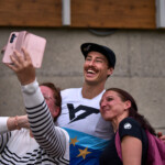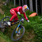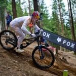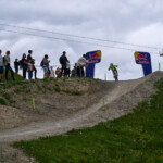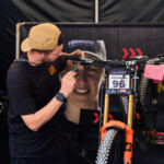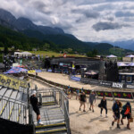 Nejdřív jsem si na pokladně vyzvedl lístek na lanovku (který jsem nakonec nevyužil) a vstupenku do areálu závodu. Teď už jsem mohl vyrazit na obhlídku zázemí týmů. Potkal jsem tam v jednom ze stanů i fotografa Robina Nevřalu. Byl zrovna zaneprázdněný focením jedné závodnice, takže jsem se dlouho nezdržel. Za chvíli měl stejně začít trénink na DH závod a byl nejvyšší čas vyrazit do kopce na obhlídku terénu. Cestou jsem ještě zahlédl při natáčení videa Fabiena Barela – jednu z klíčových postav vývoje horských kol u značky Canyon.