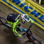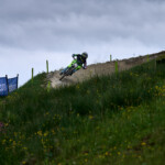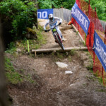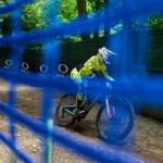 První zastávku na focení jsem si udělal na dropu. Pořád probíhaly tréninky, takže to tady nikdo ze závodníků nehnal na maximum. Nejvíc fanoušků bylo asi v lesní pasáži. Všechno ale bylo oplocené, takže dostat se blíž k trati bylo prakticky nemožné. Pořadatelé návštěvníky, kteří chtěli přelézt plot, nekompromisně vraceli zpátky.